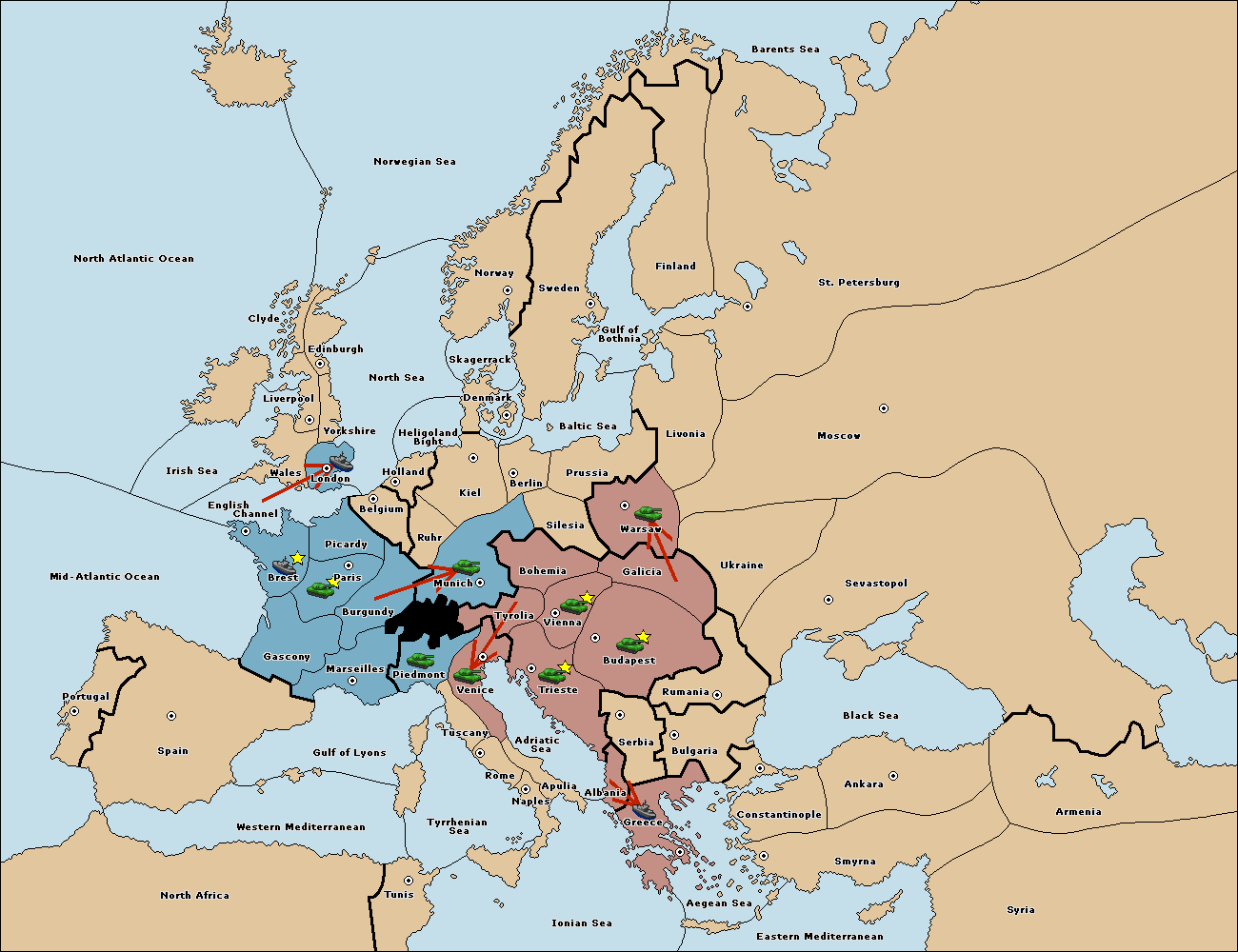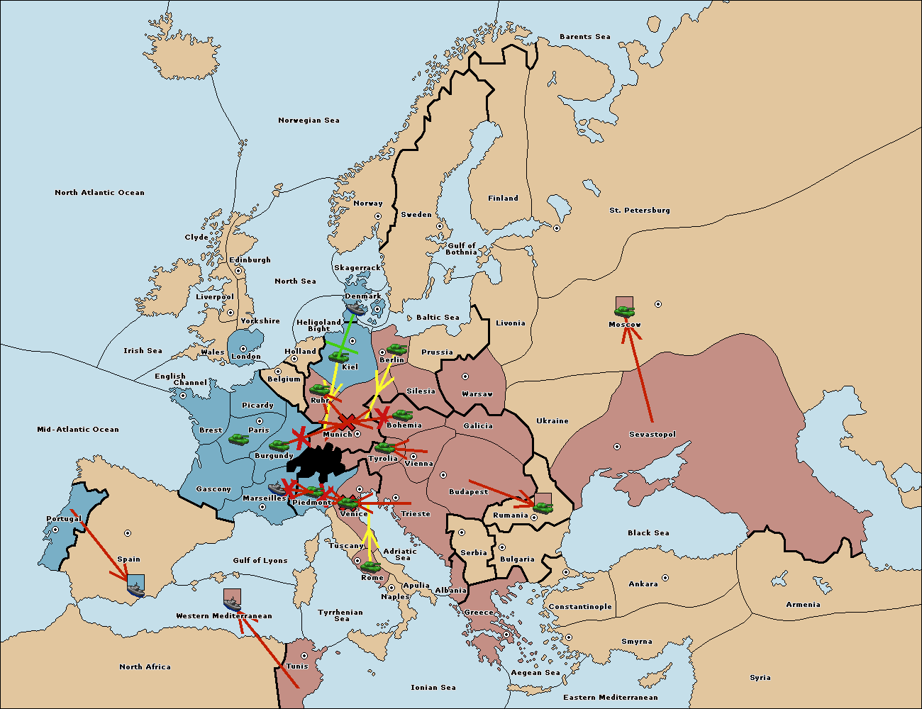 The army at Tyrolia move to Munich.