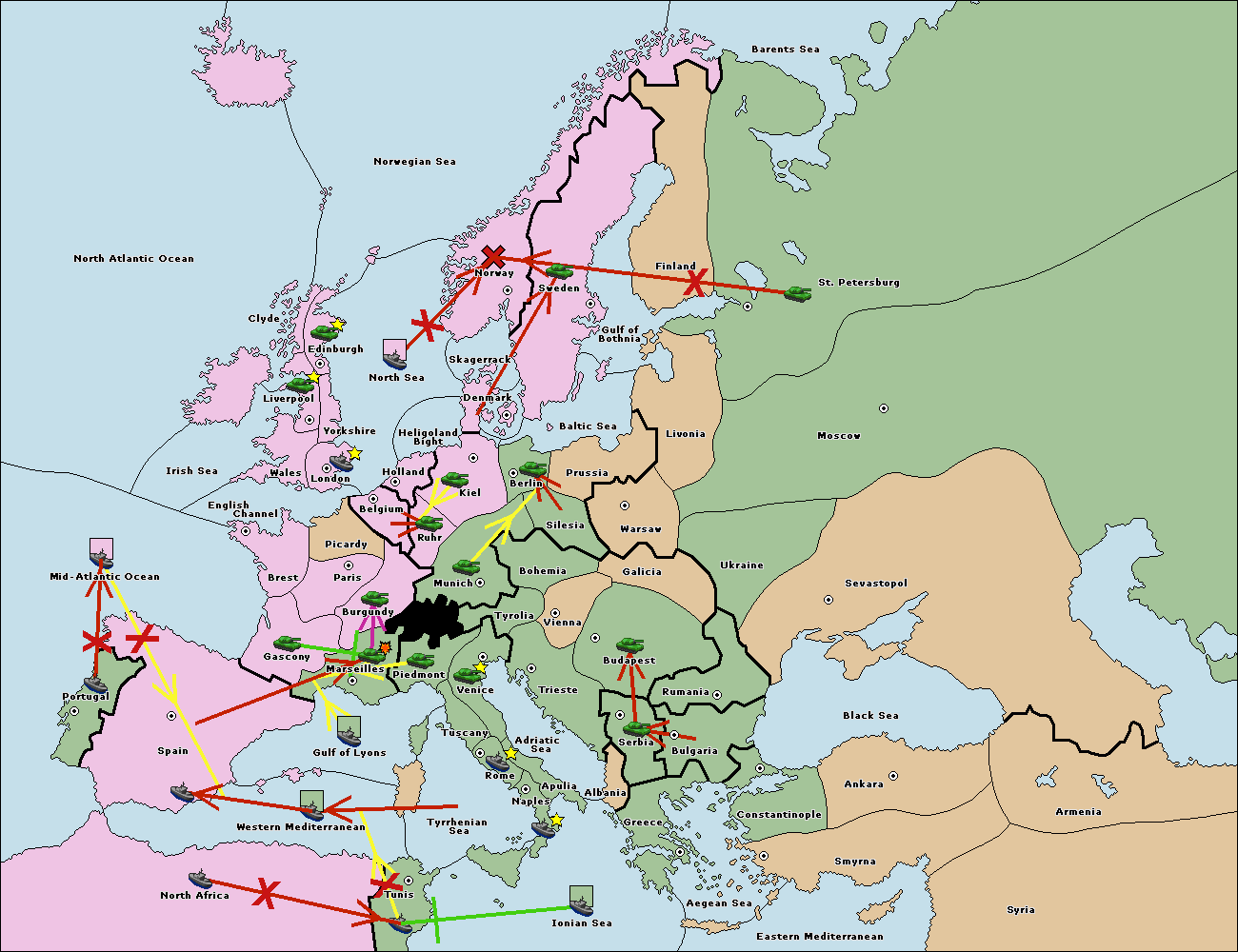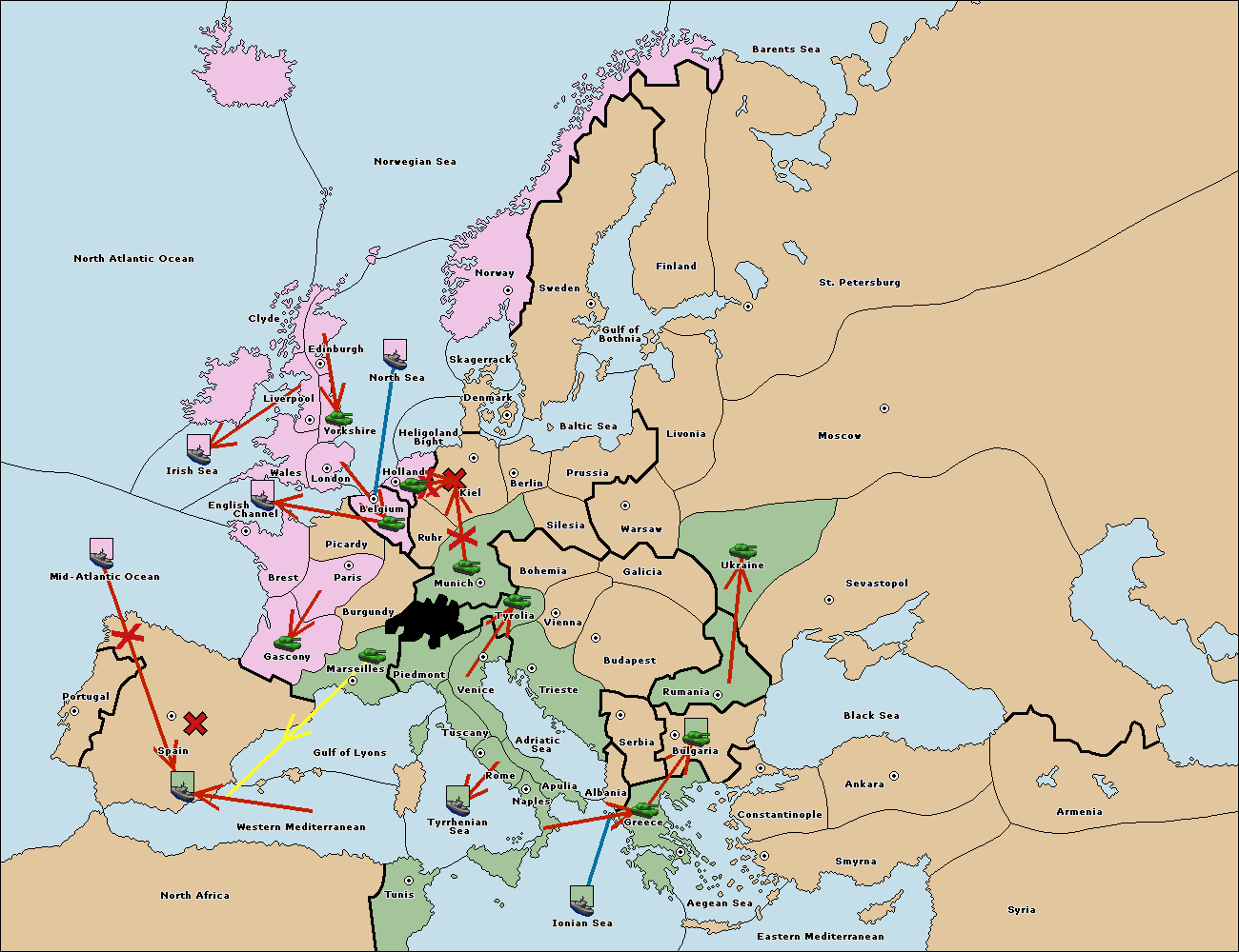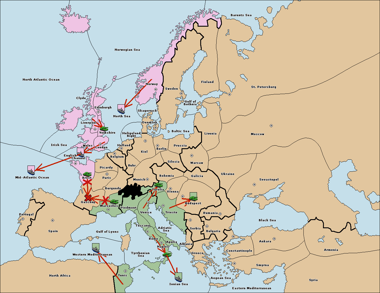 The fleet at Mid-Atlantic Ocean move to Western Mediterranean.