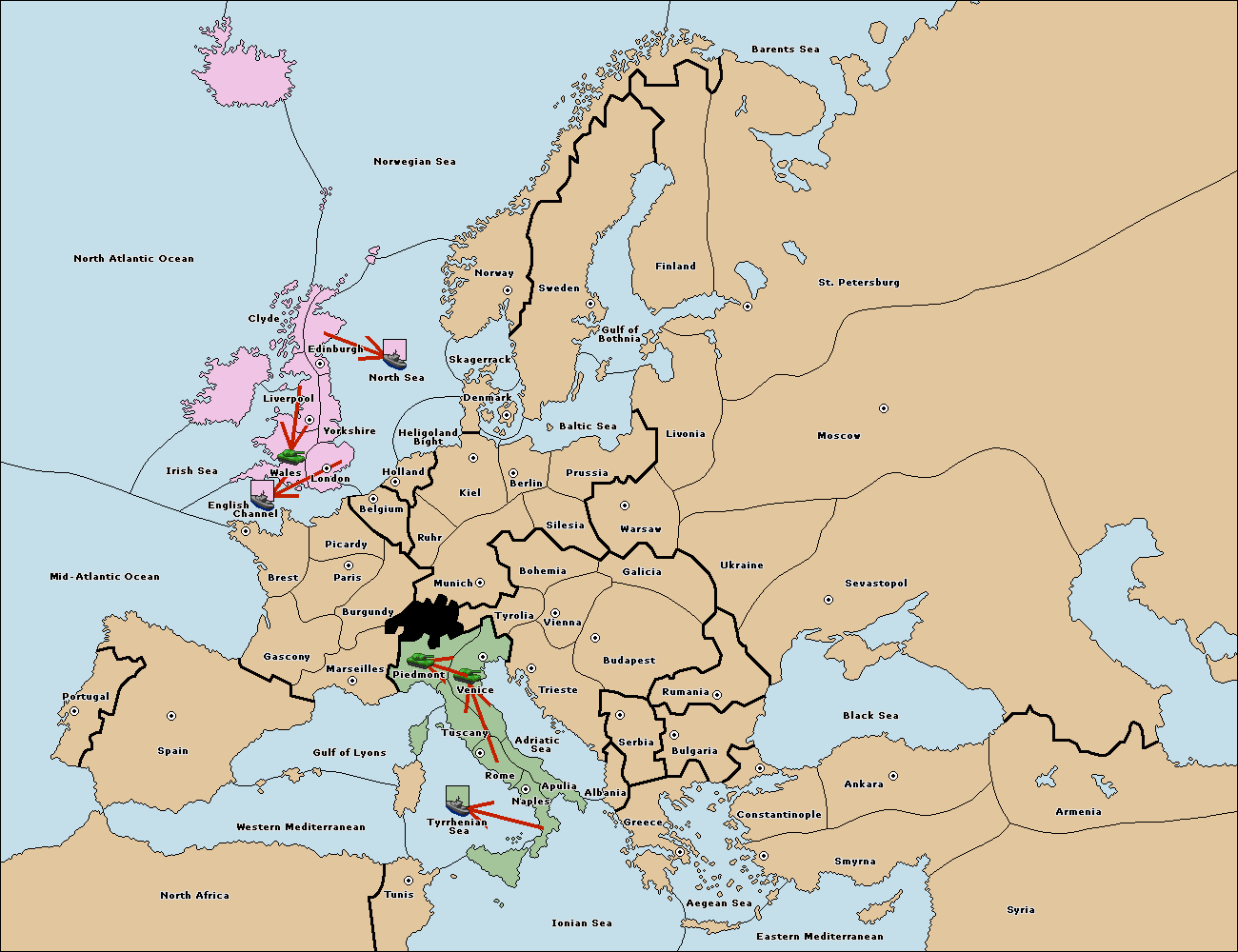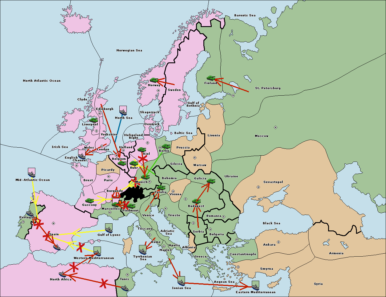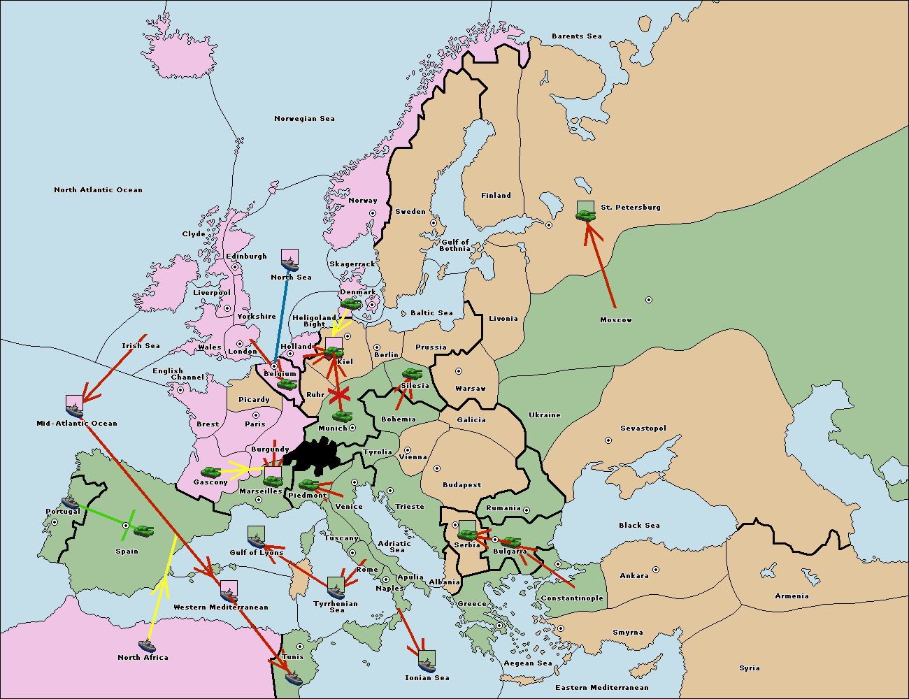 The fleet at Mid-Atlantic Ocean move to Western Mediterranean.