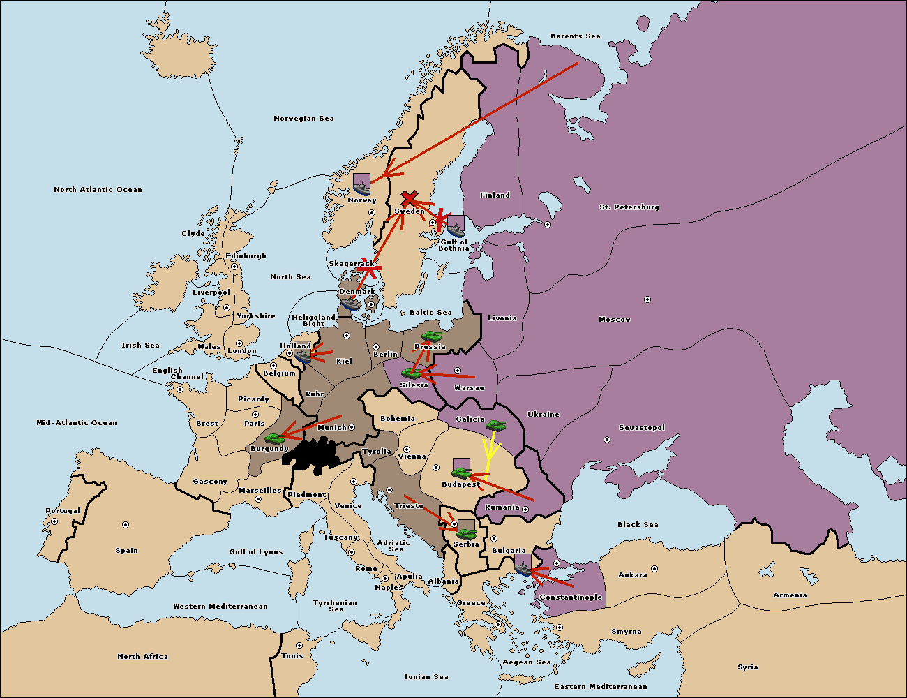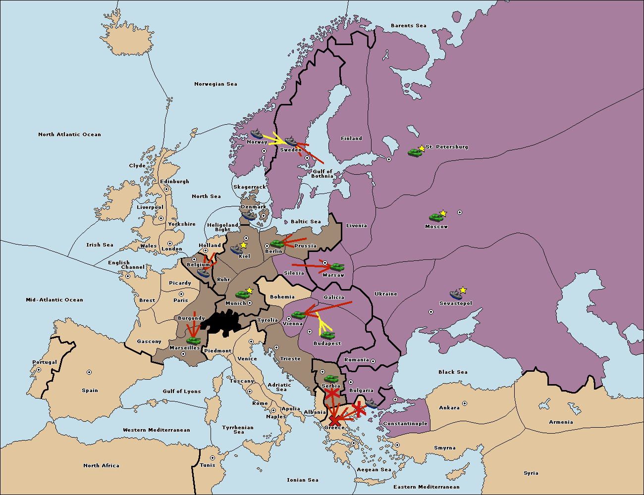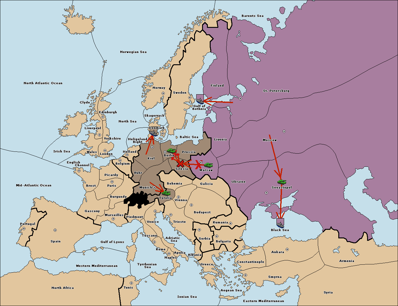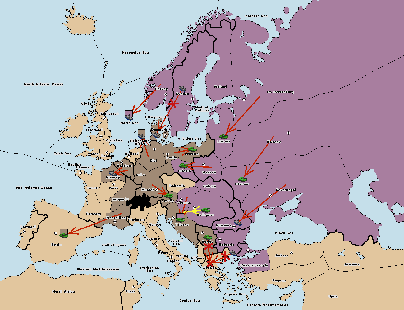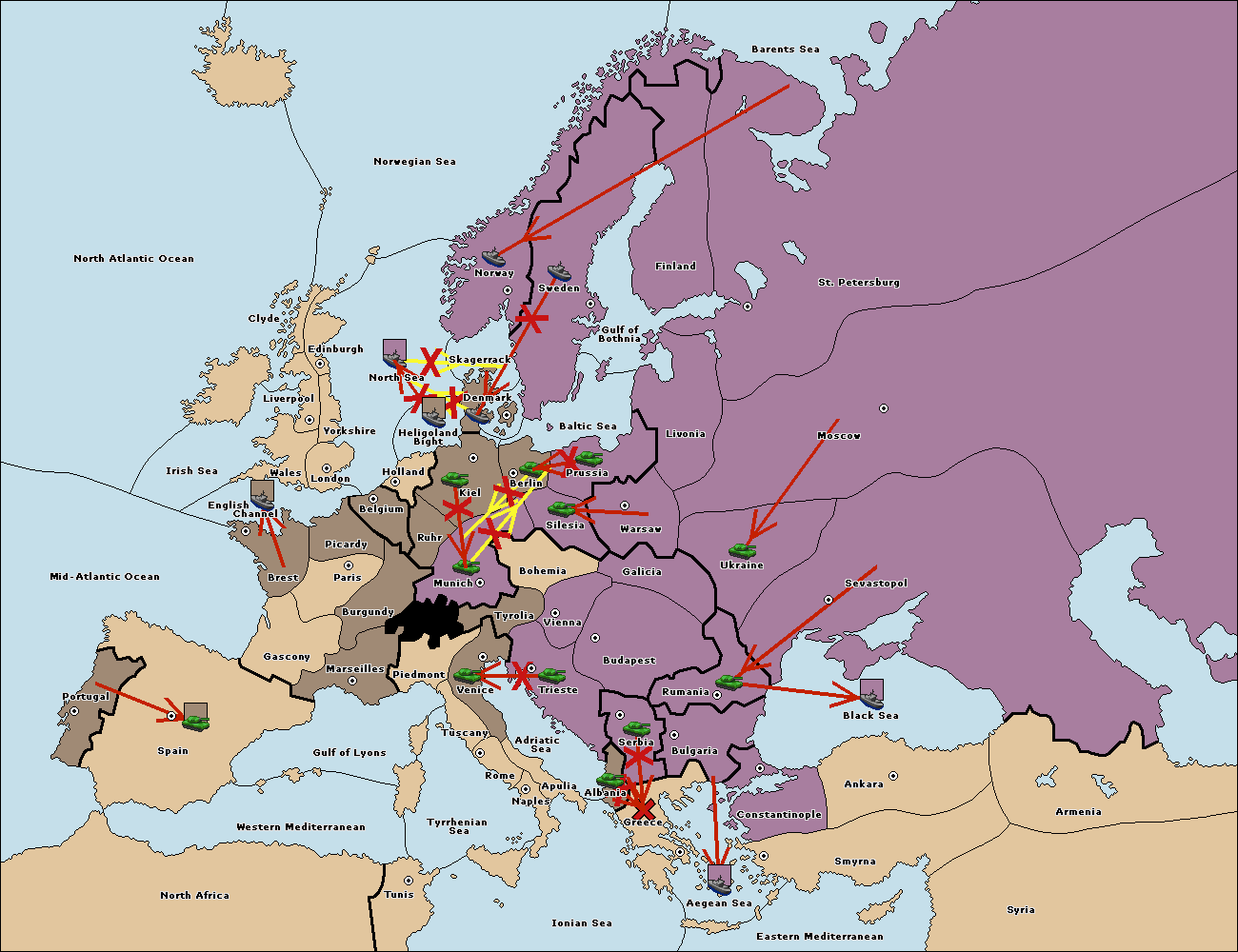The fleet at Bulgaria (South Coast) move to Aegean Sea.