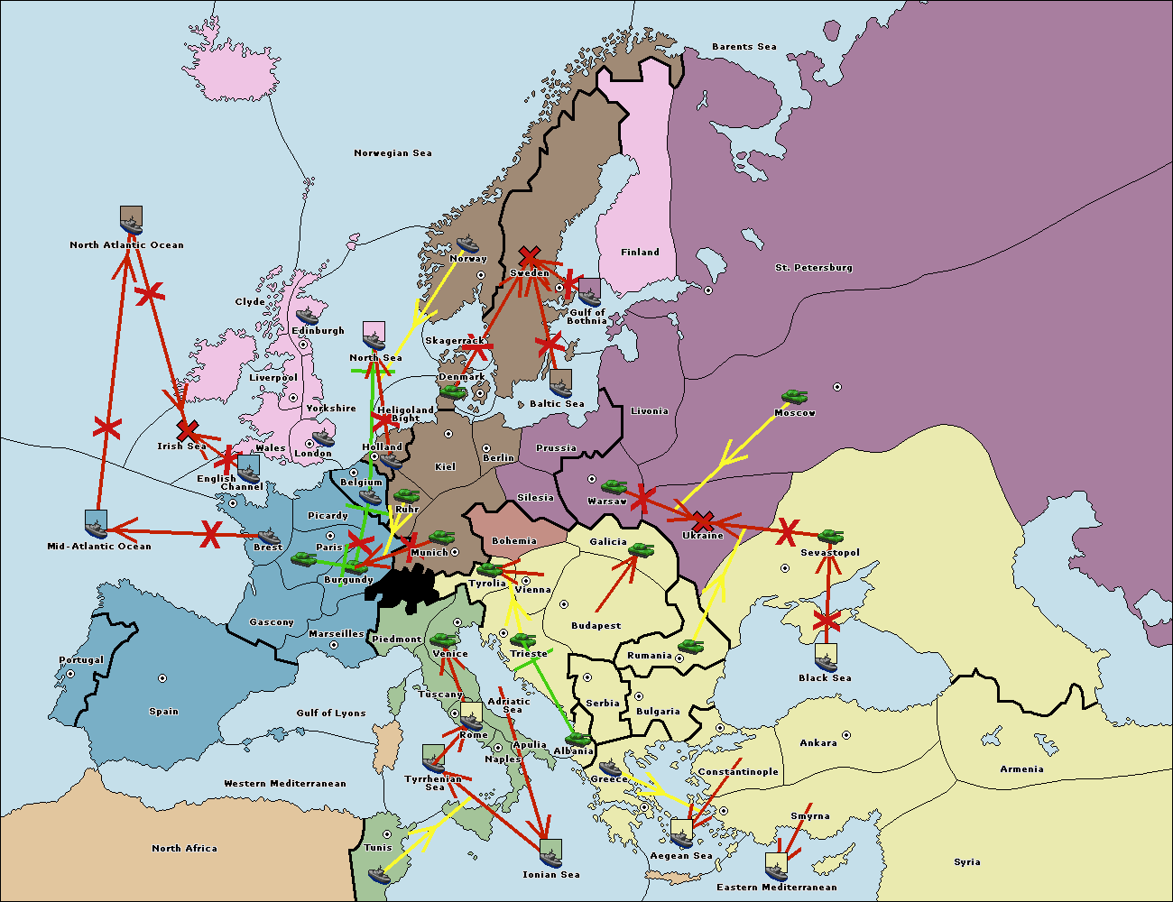 The fleet at Bulgaria (North Coast) move to Rumania.