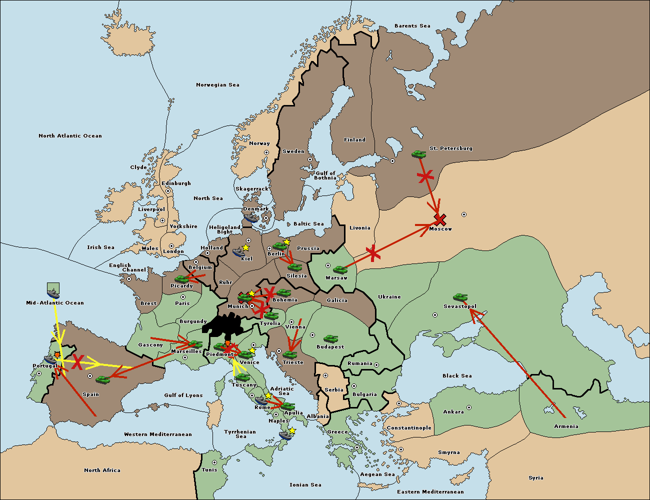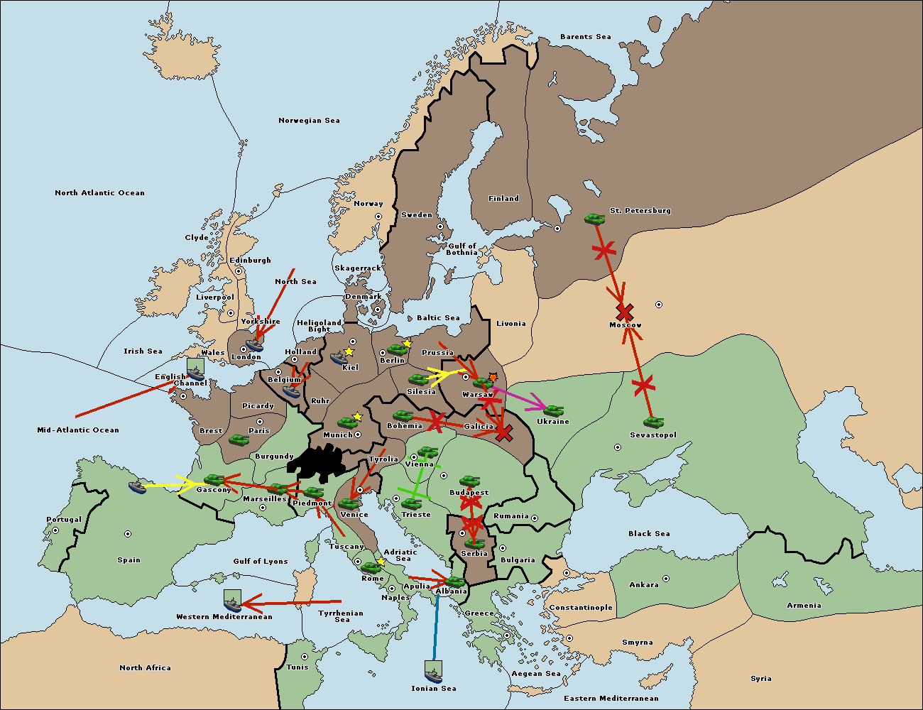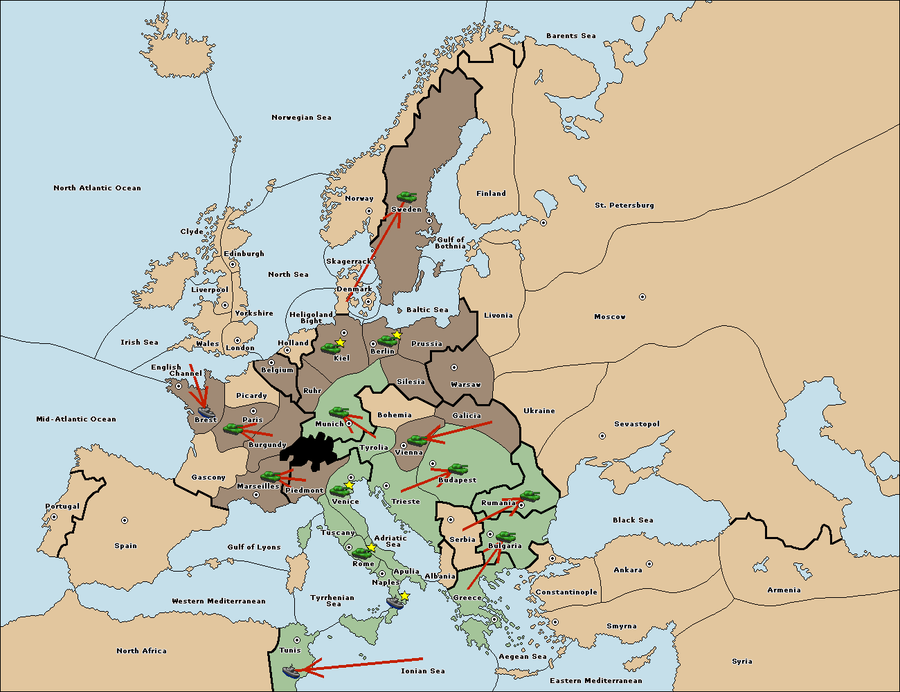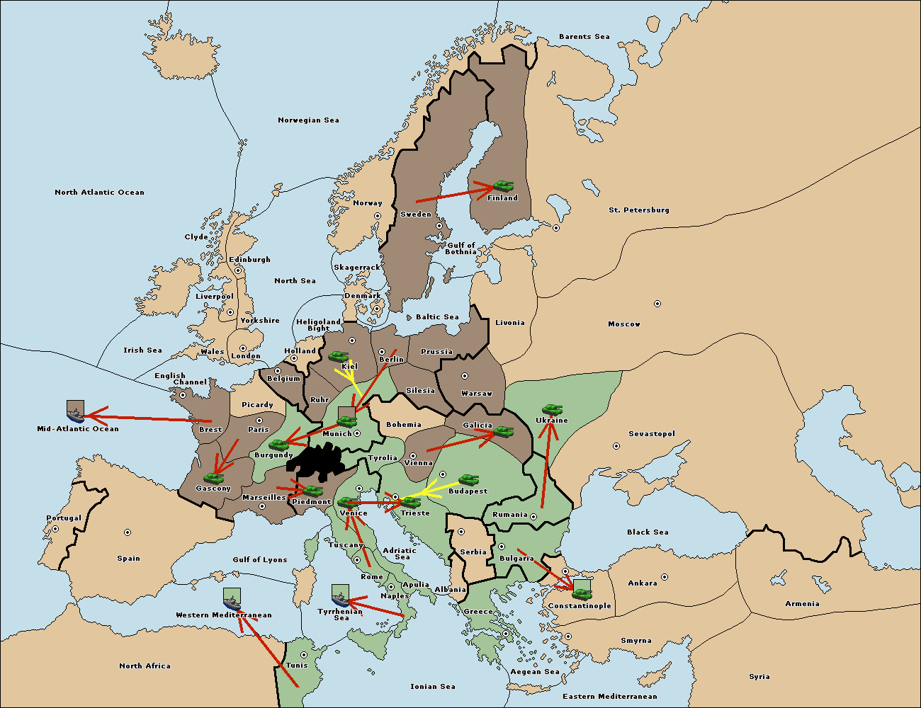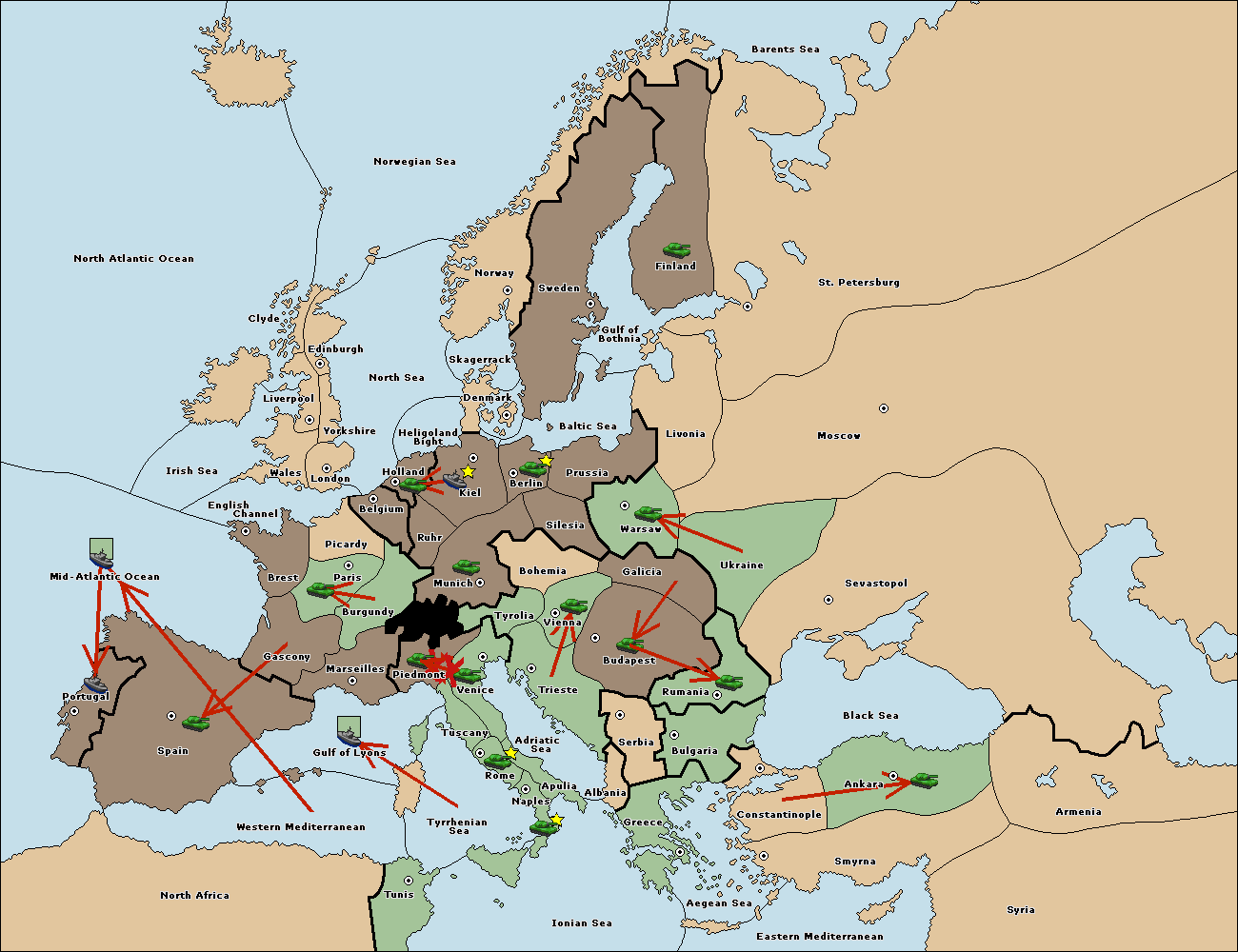 The fleet at Greece move to Bulgaria (South Coast).
