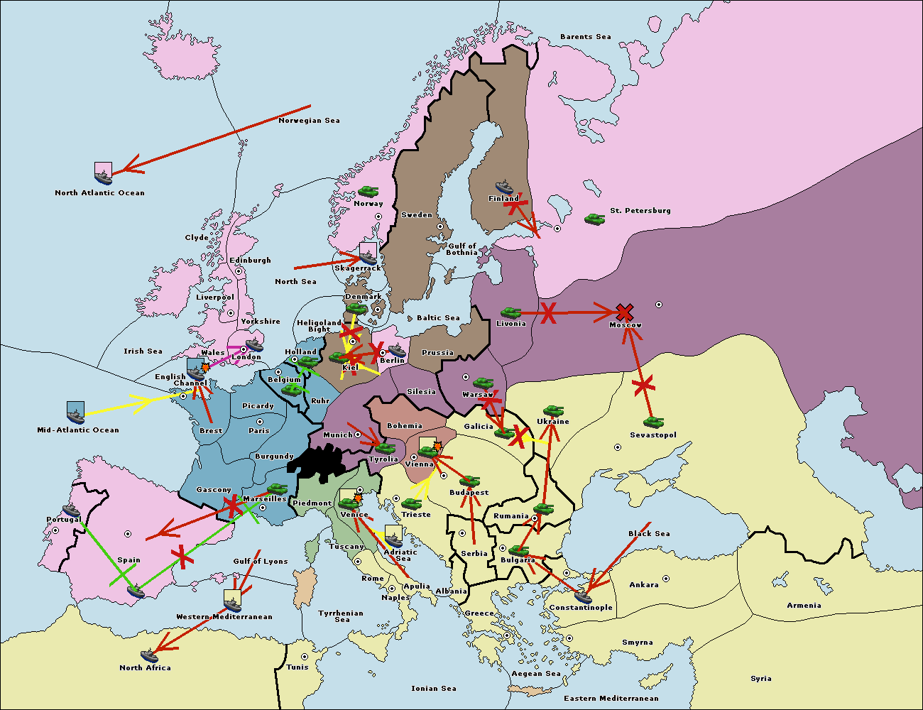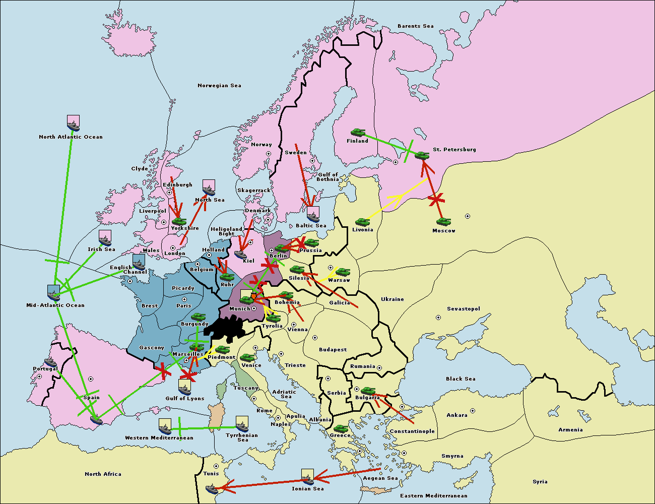 The fleet at Spain (South Coast) support hold to Marseilles.