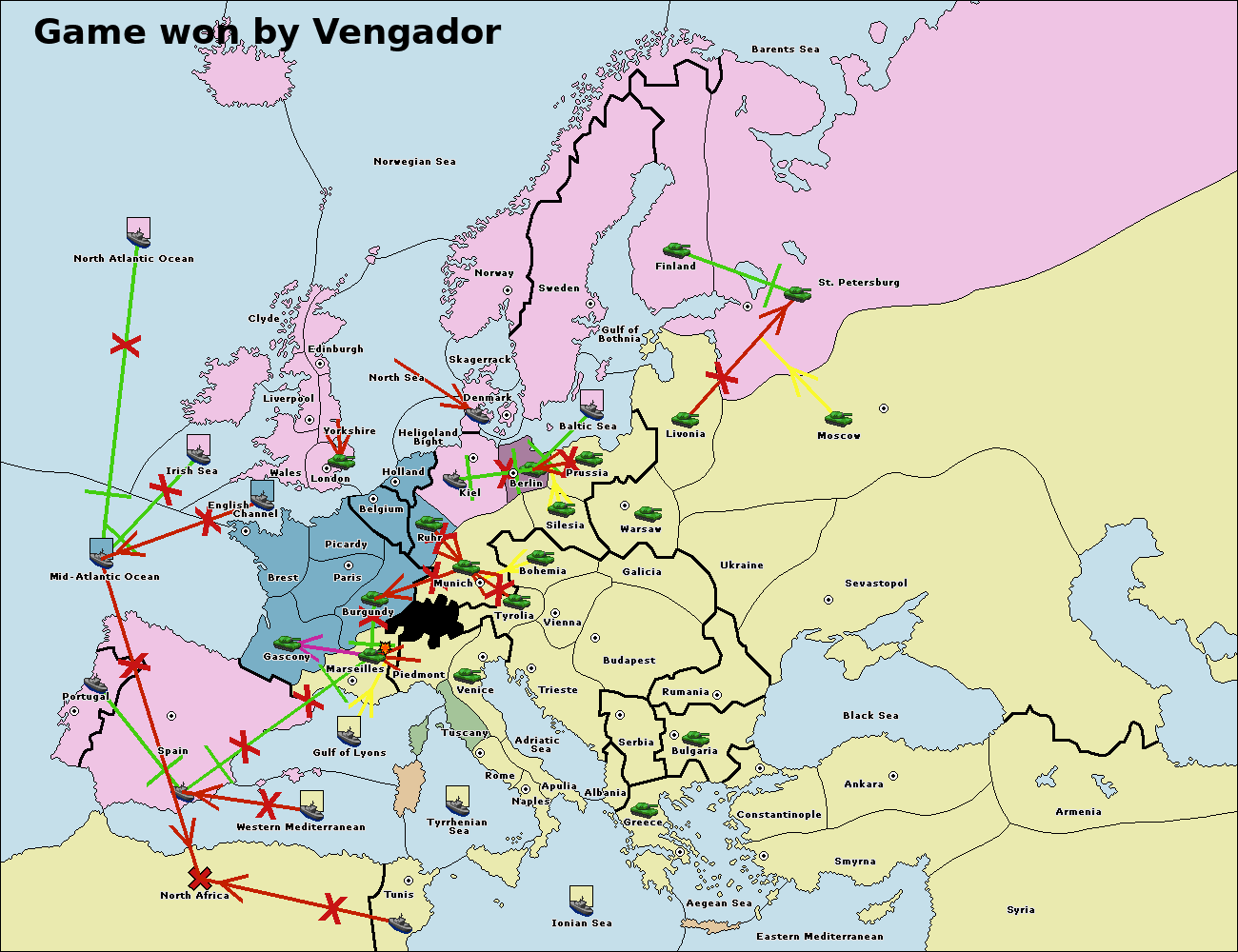 The fleet at Mid-Atlantic Ocean move to North Africa.