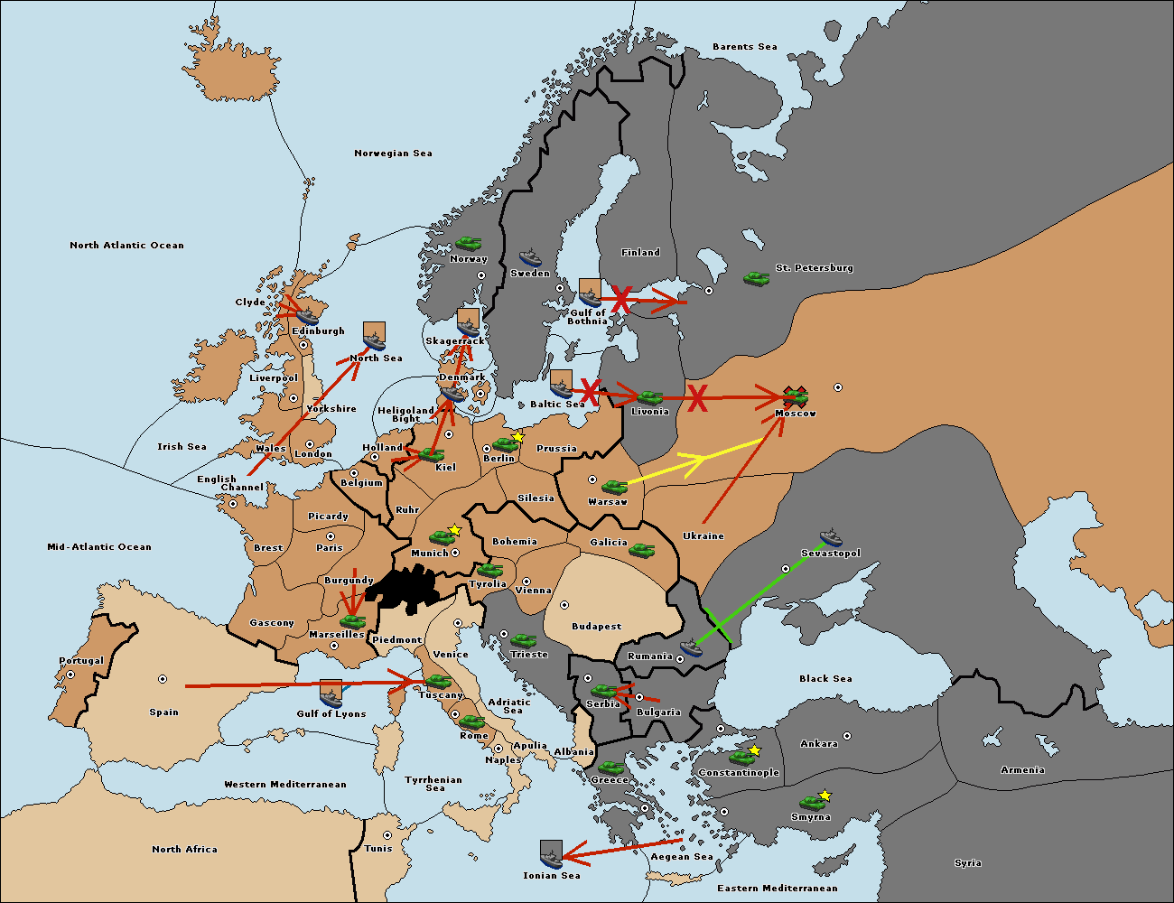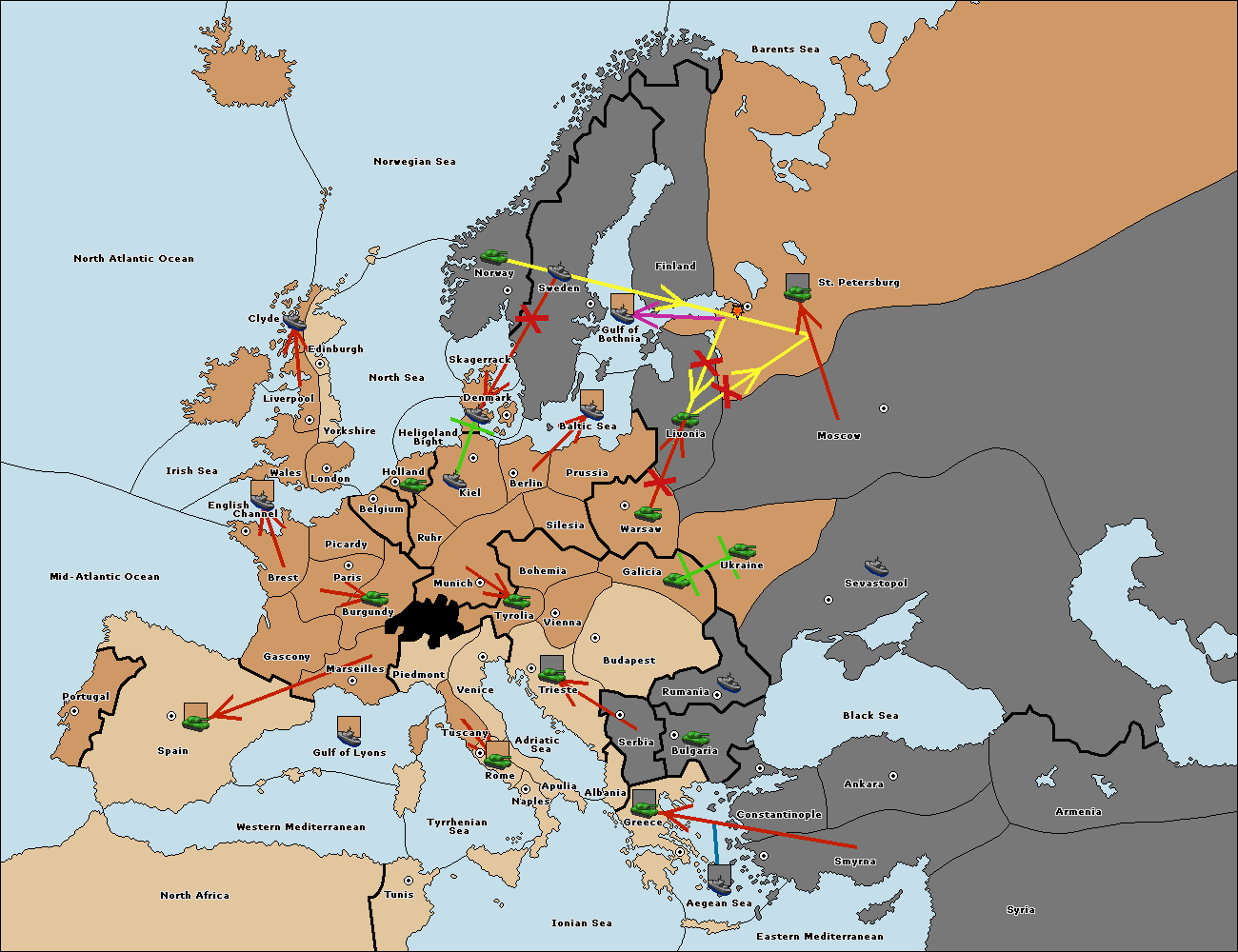 The fleet at Gulf of Bothnia move to St. Petersburg (South Coast).