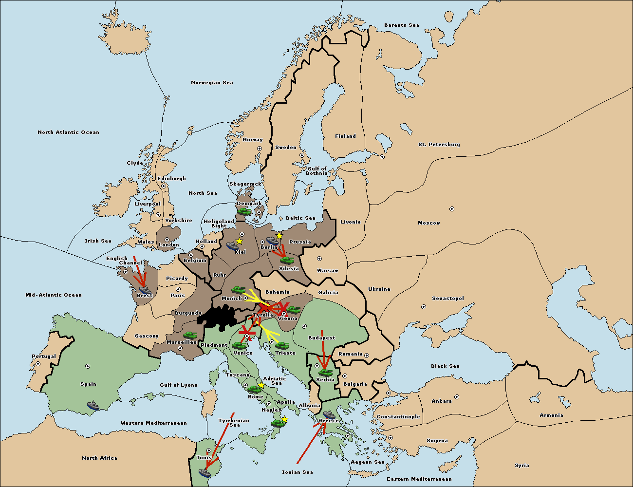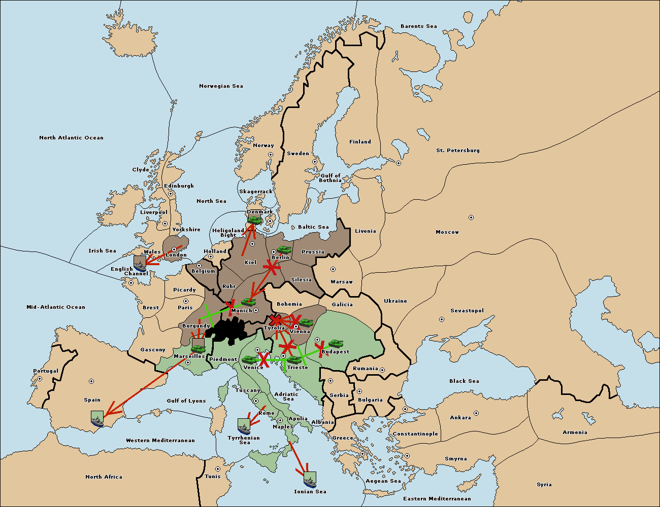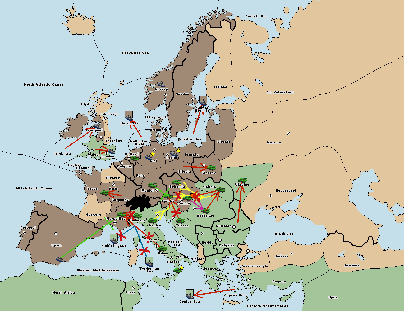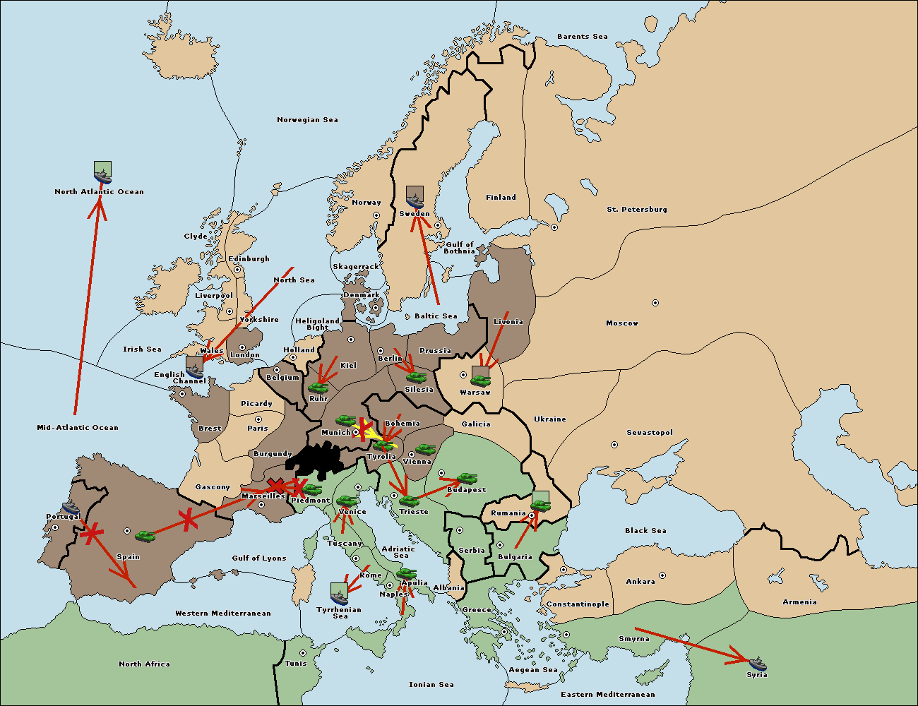 The fleet at Spain (South Coast) support hold to Marseilles.