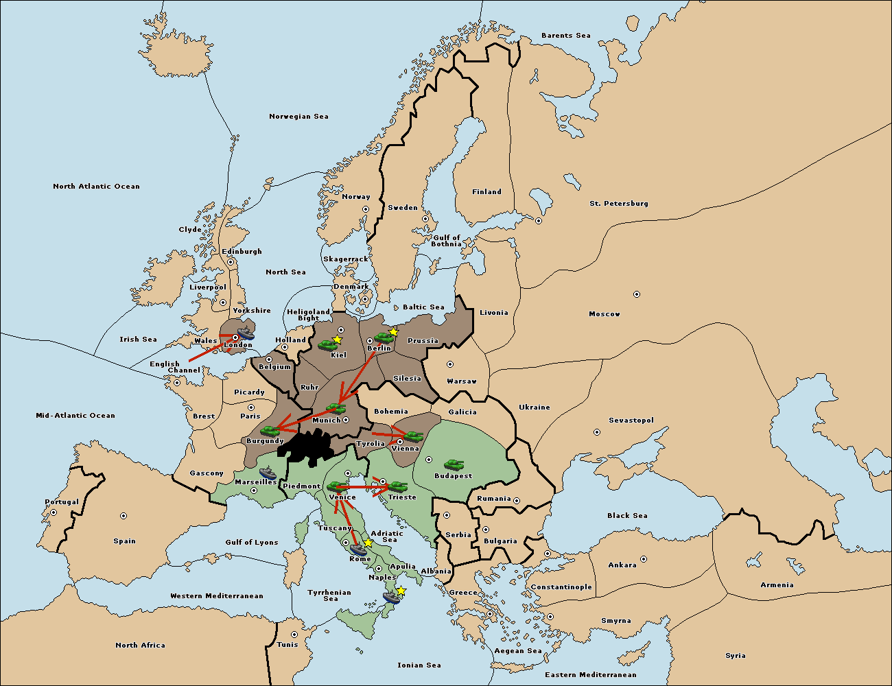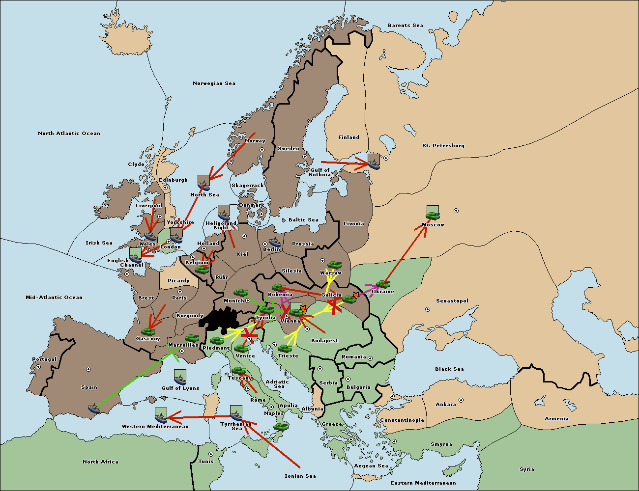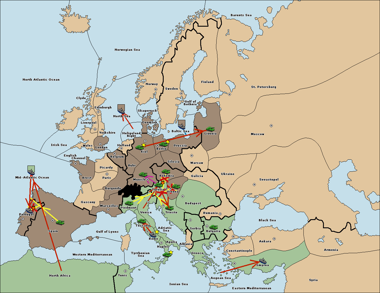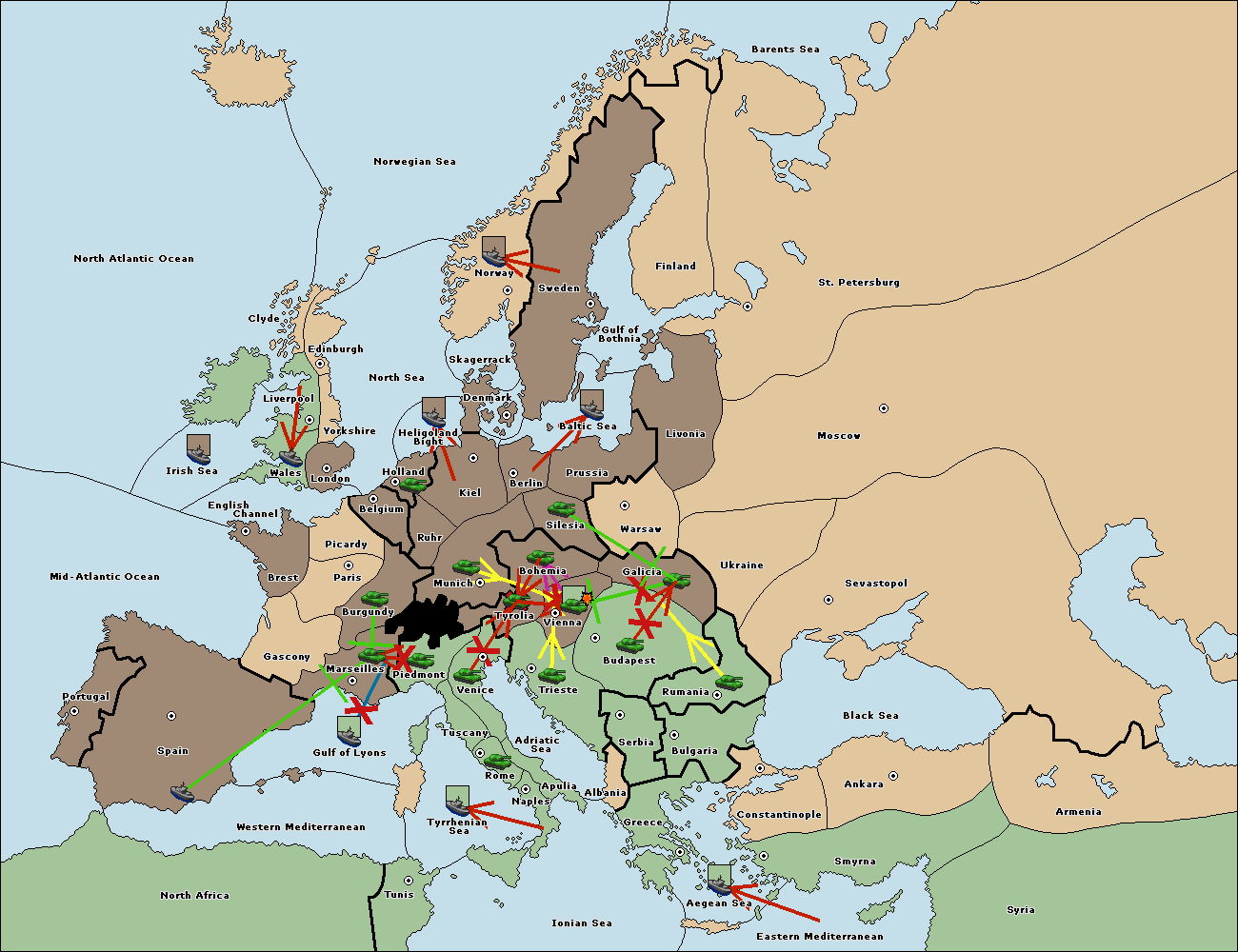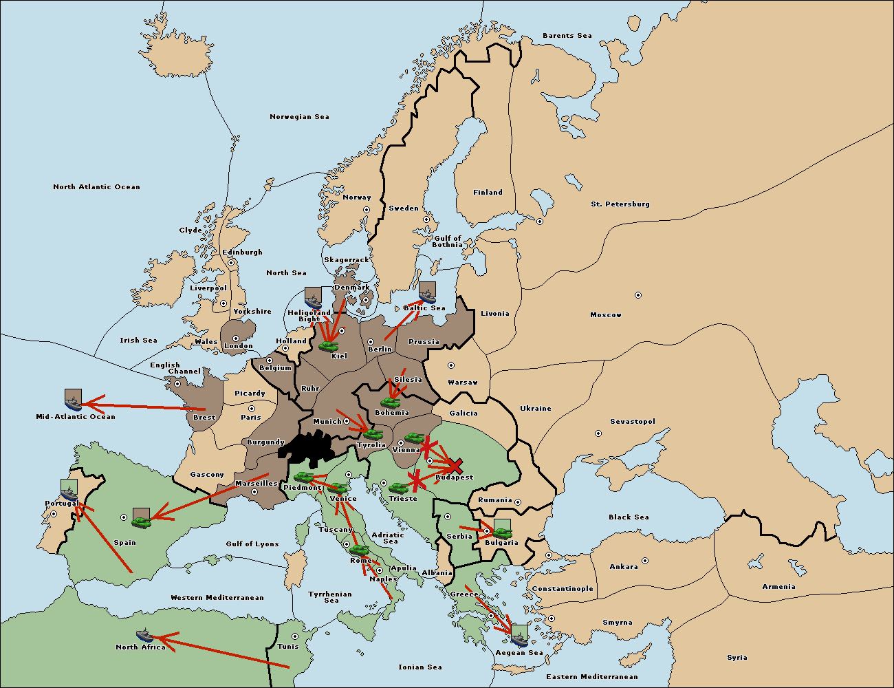 The fleet at Spain (South Coast) support hold to Marseilles.