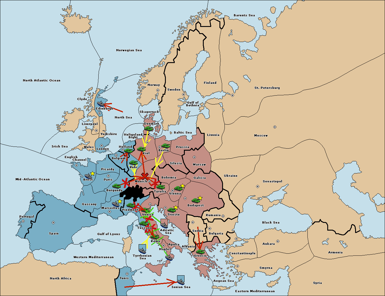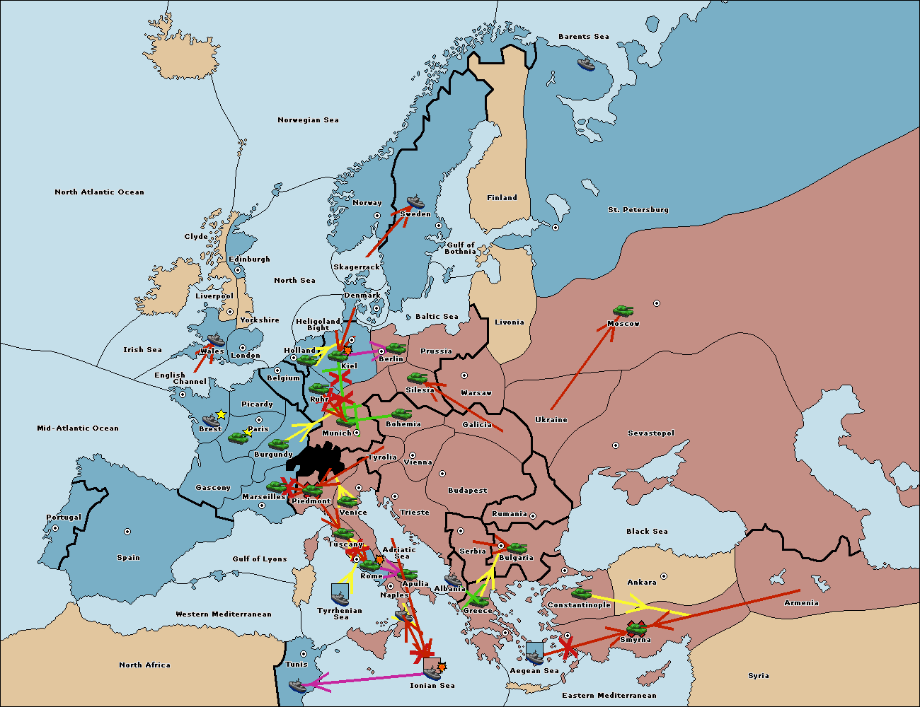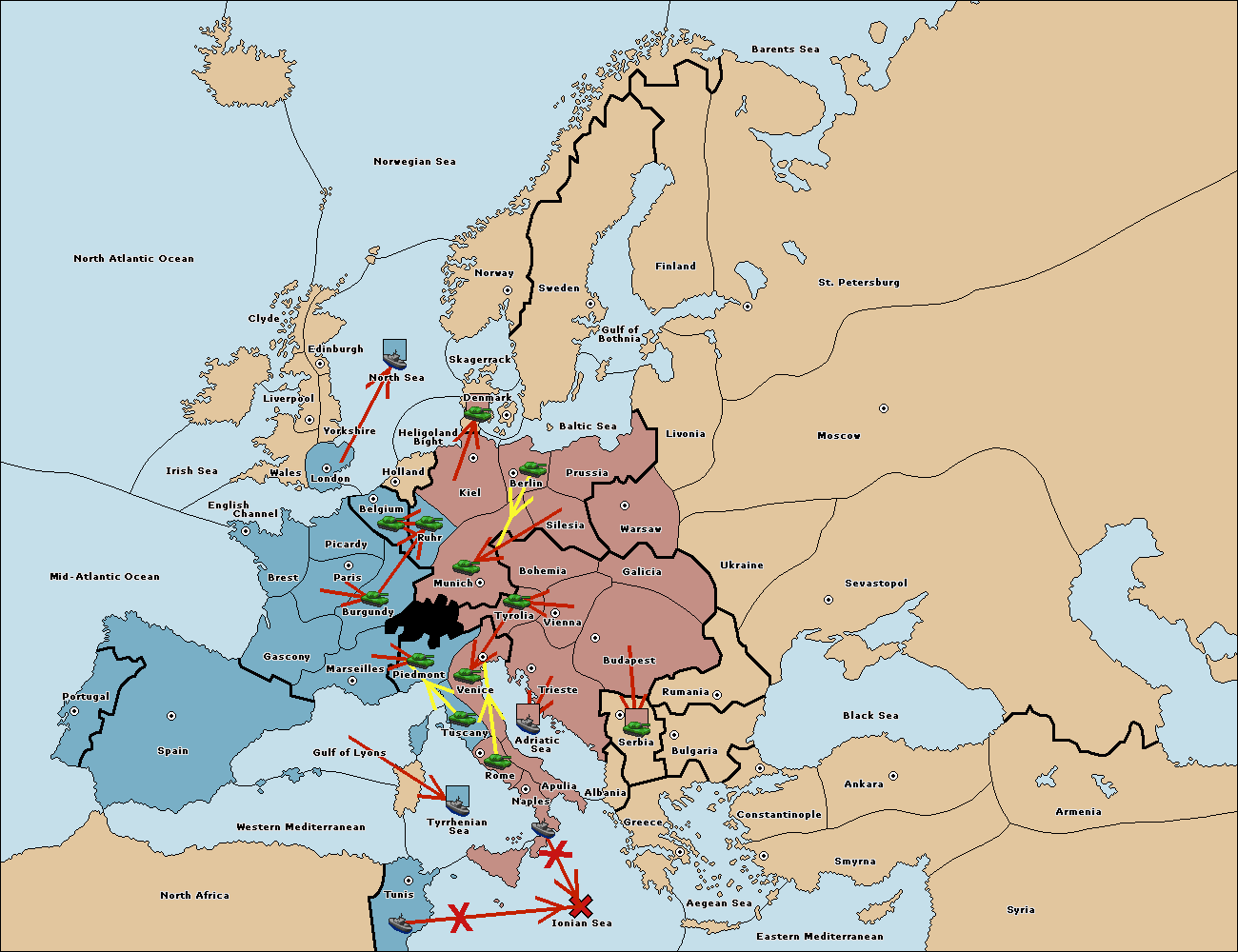 The fleet at Aegean Sea support move to Ionian Sea from Tunis.