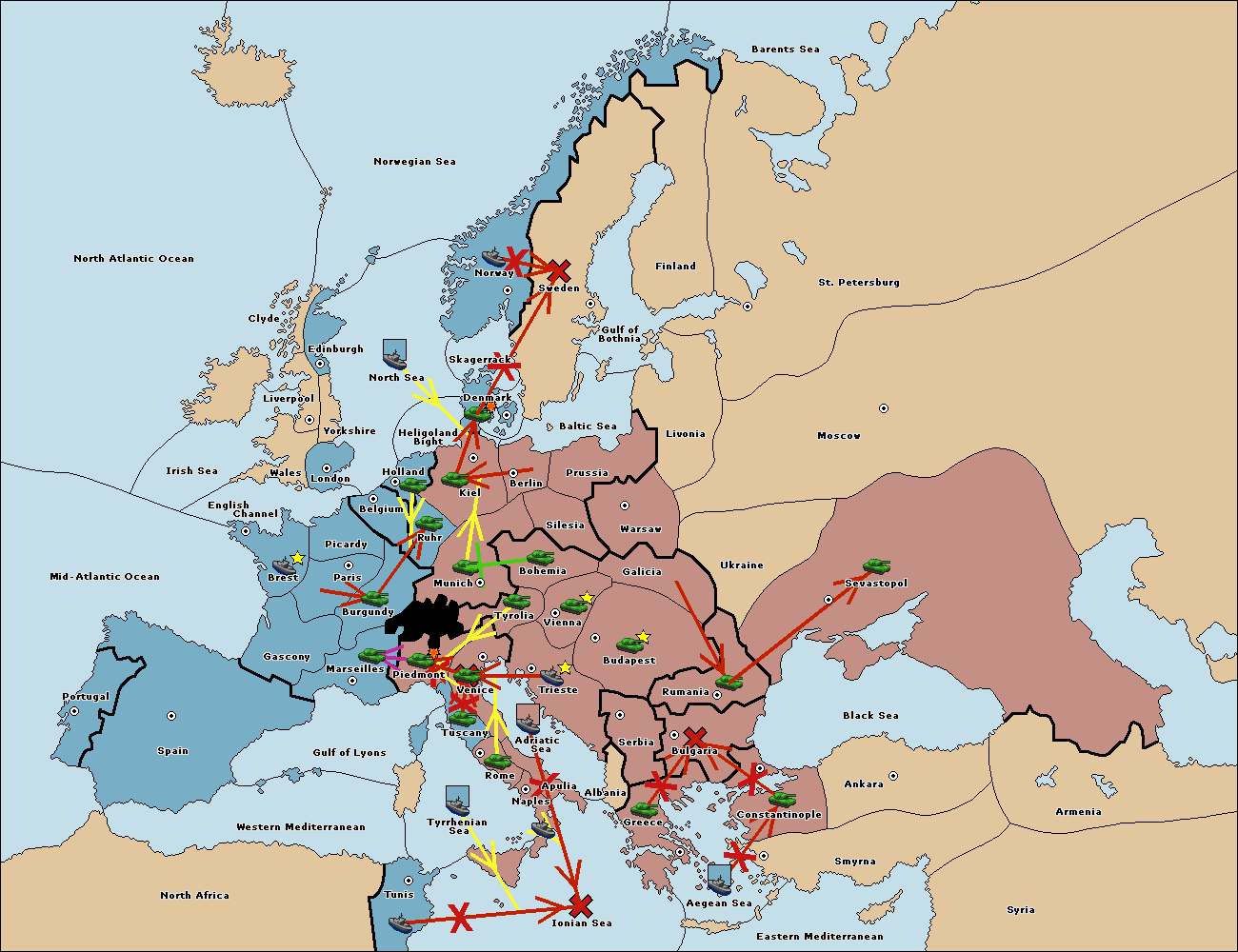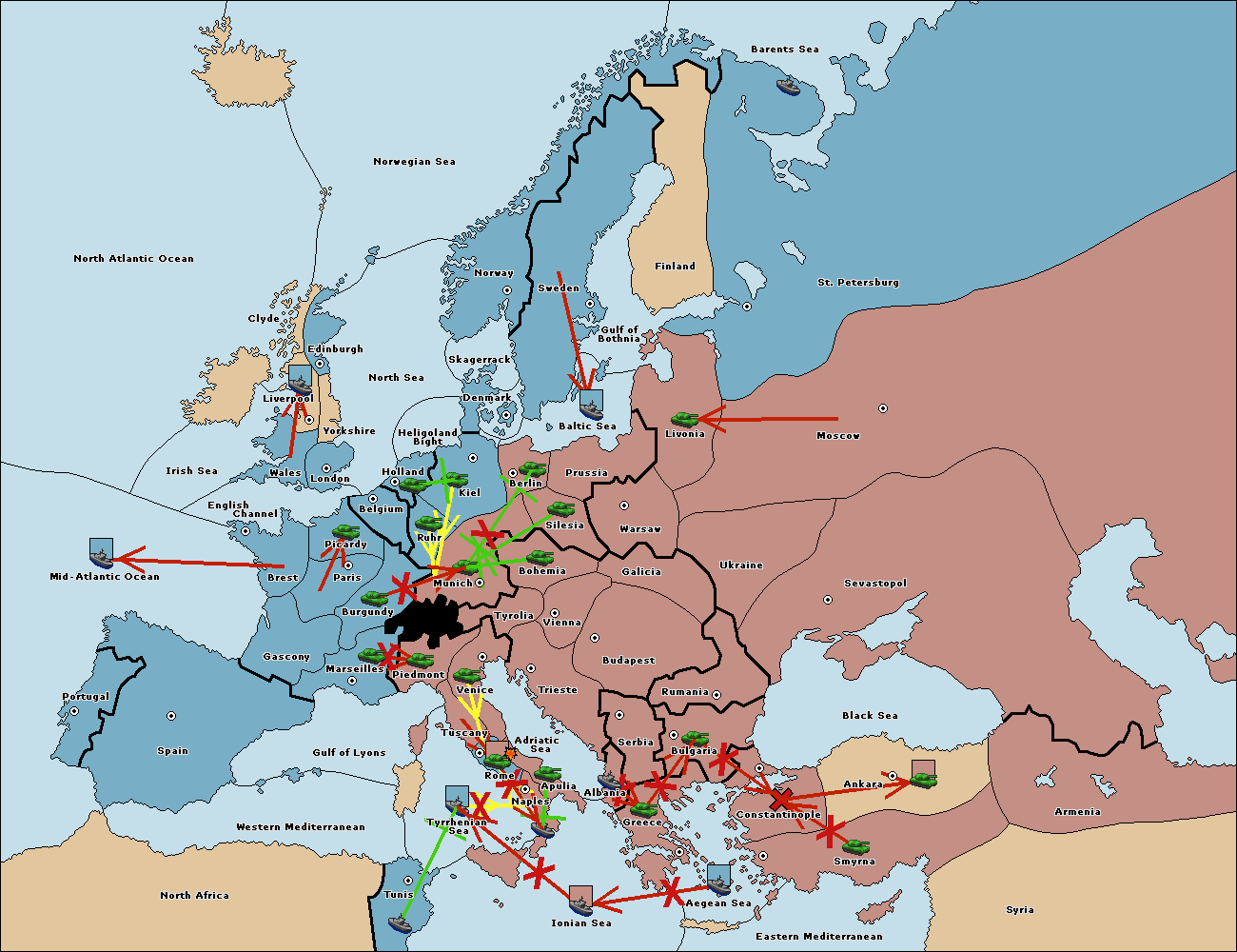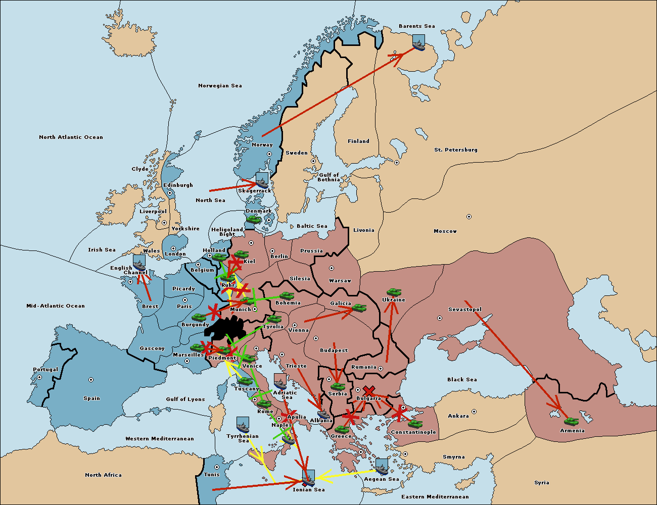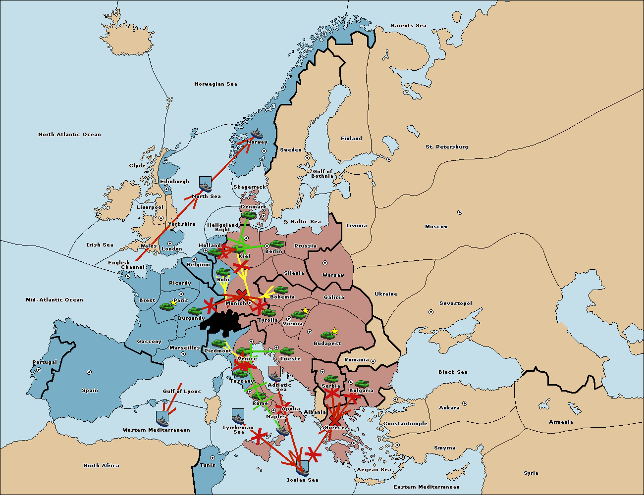 The fleet at Aegean Sea support move to Ionian Sea from Tunis.