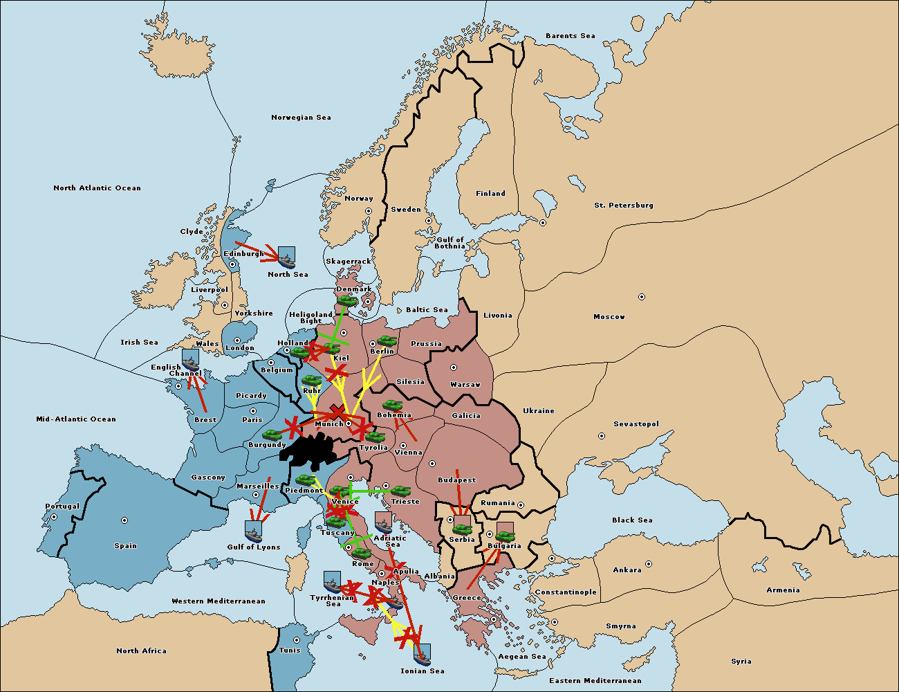 The fleet at Ionian Sea support move to Naples from Tyrrhenian Sea.