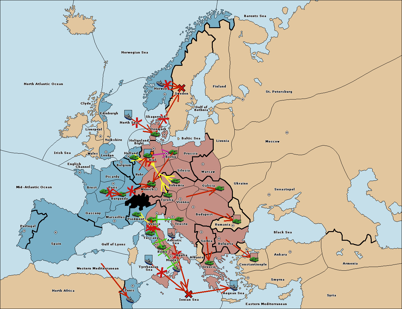The fleet at Tyrrhenian Sea support move to Ionian Sea from Tunis.