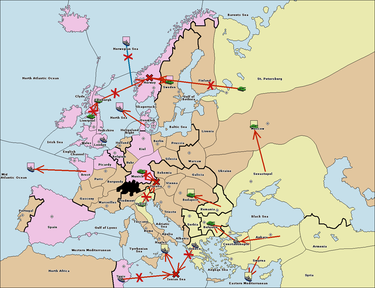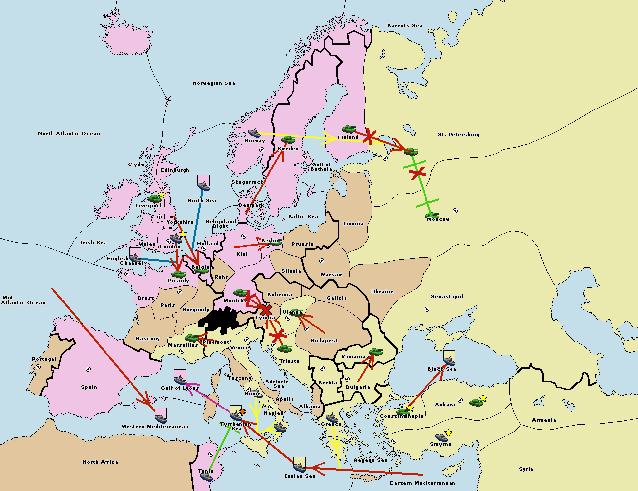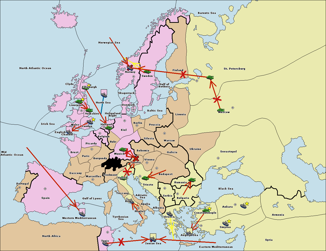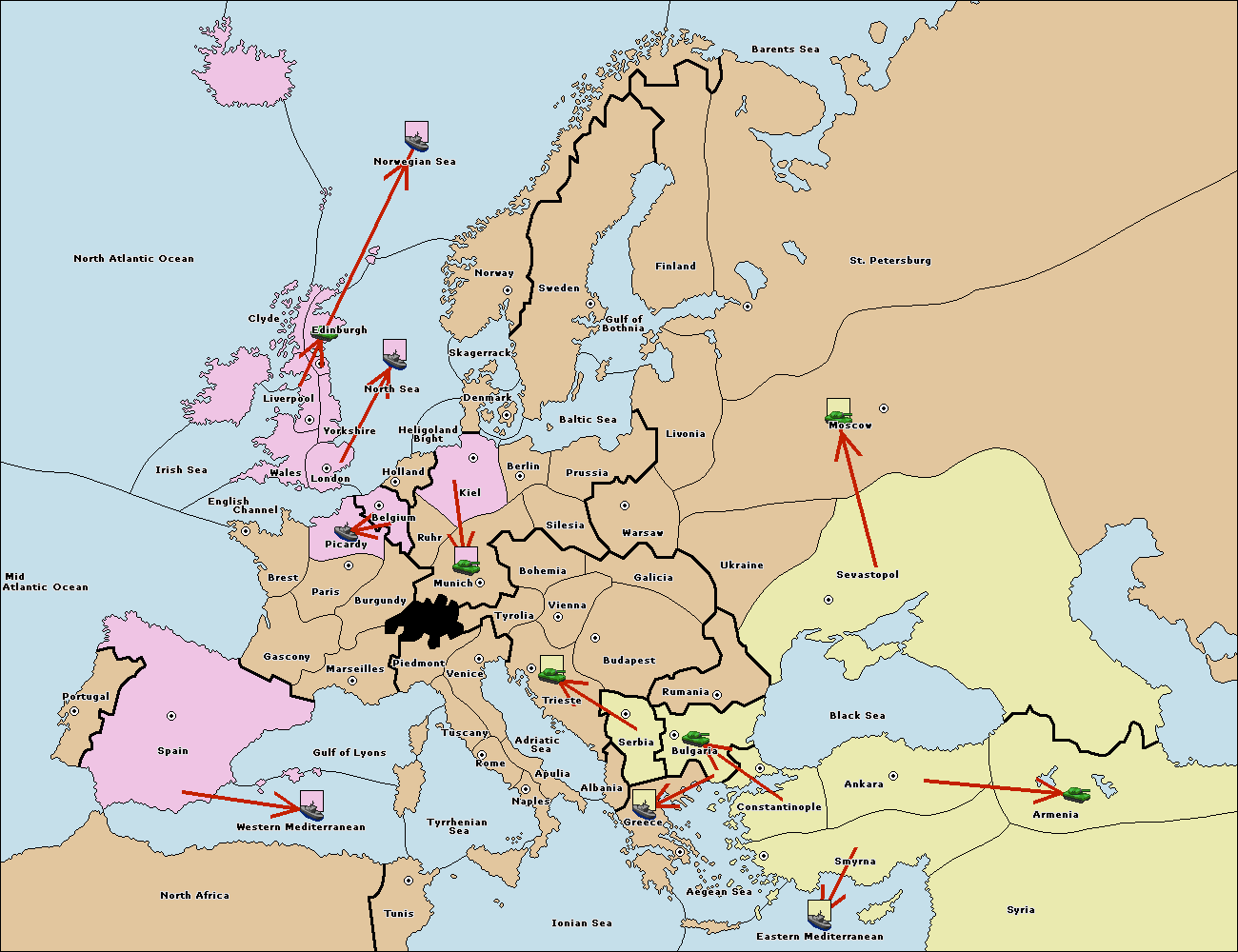 The fleet at Mid-Atlantic Ocean move to Western Mediterranean.