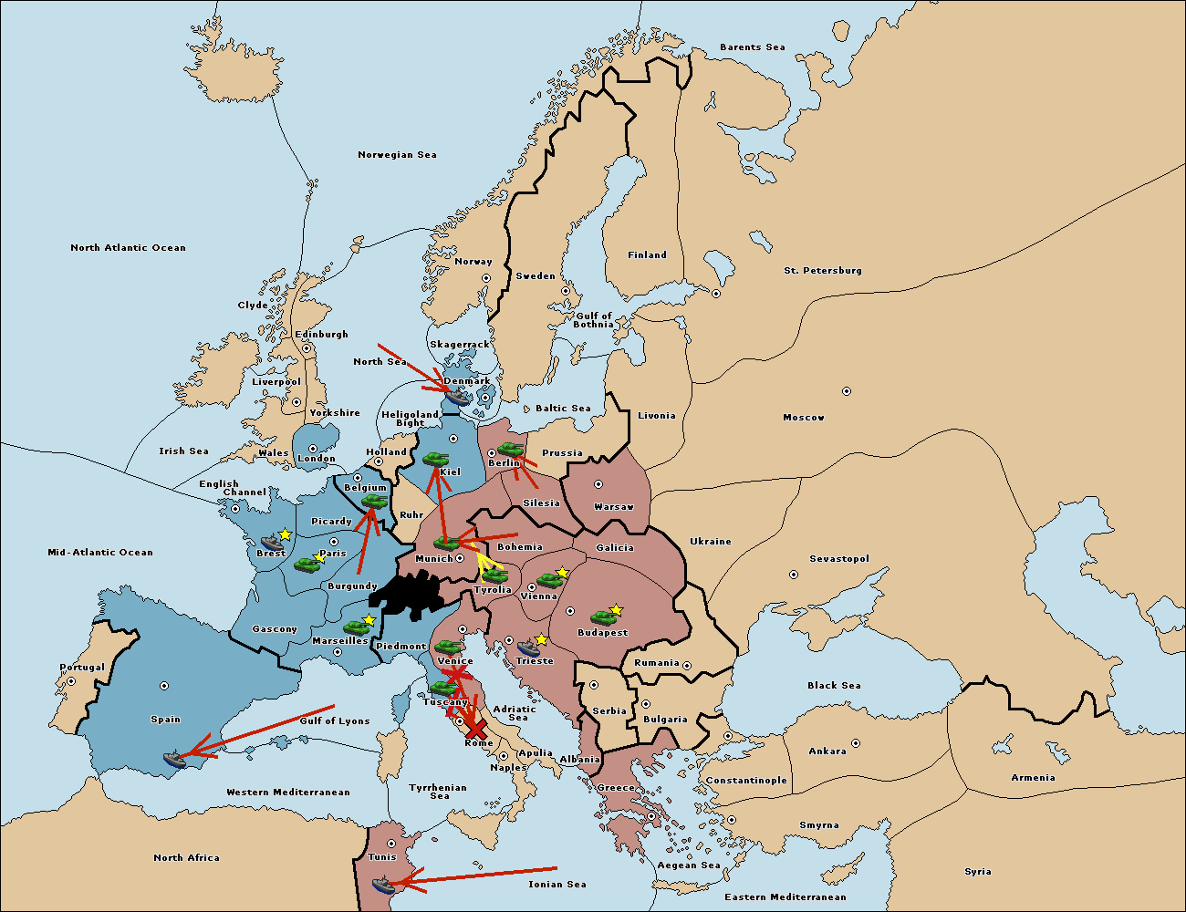 The fleet at Adriatic Sea support move to Venice from Tyrolia.