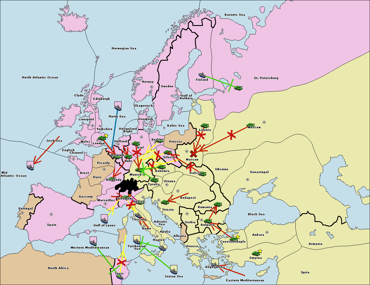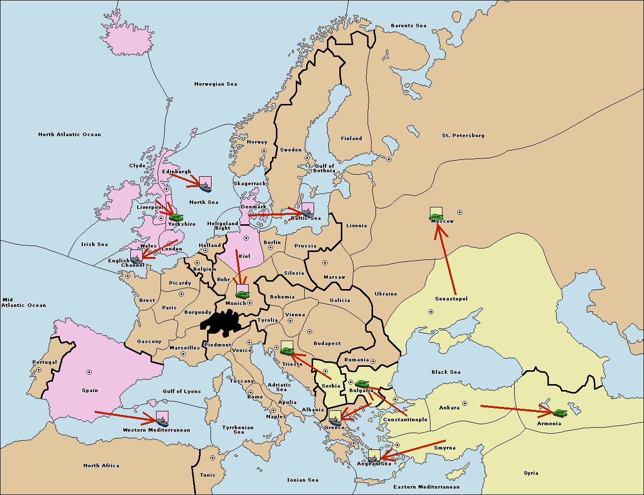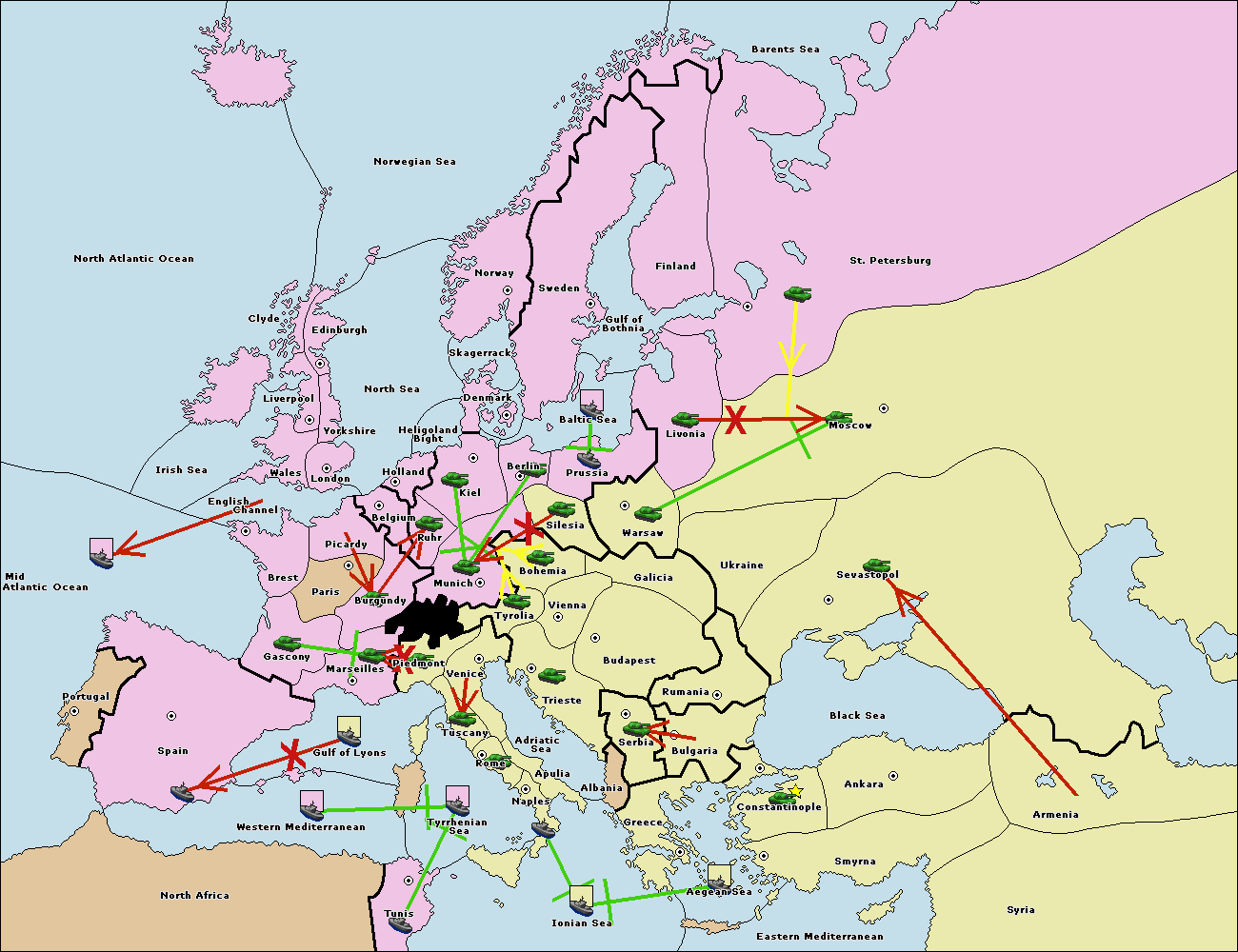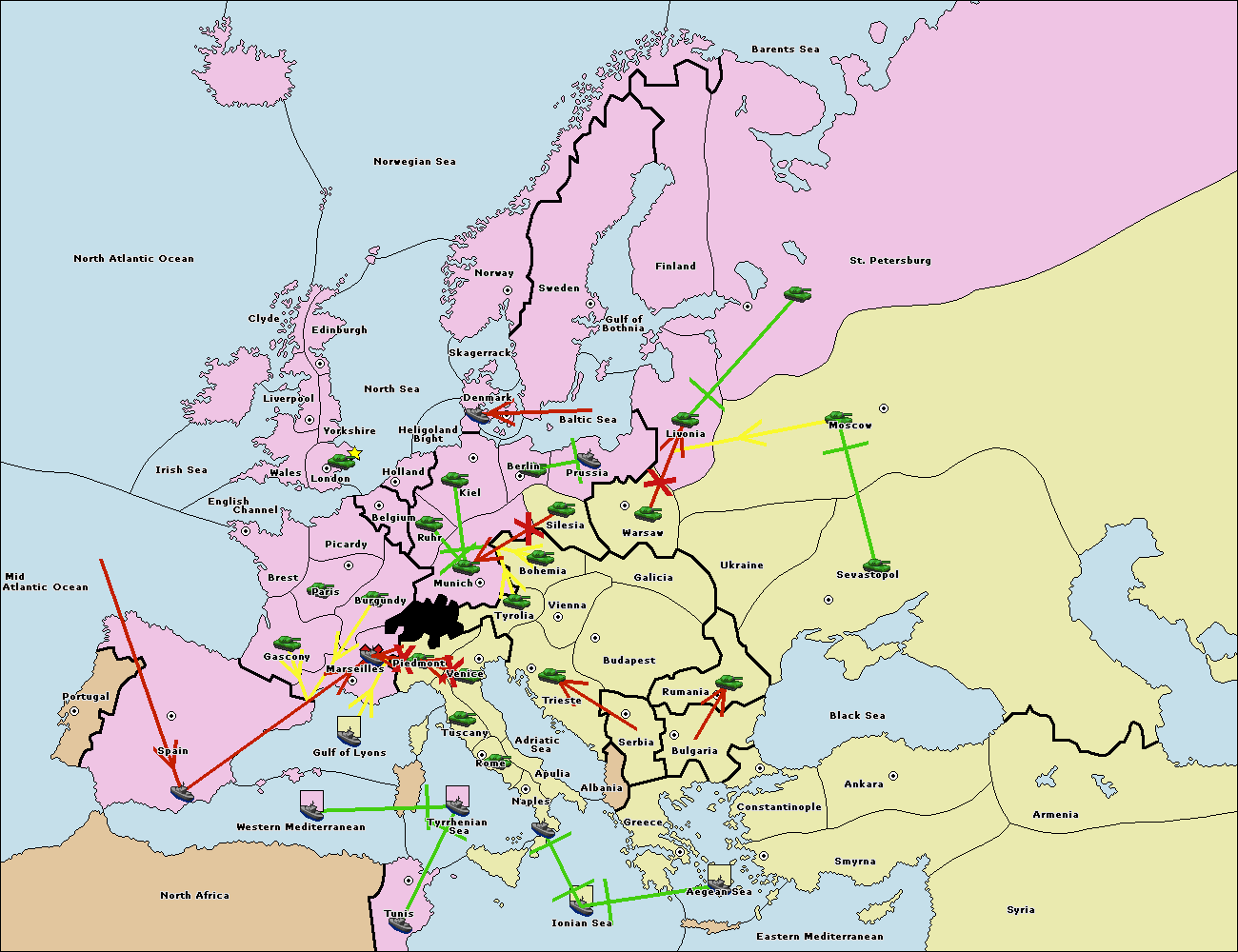 The fleet at Mid-Atlantic Ocean move to Western Mediterranean.