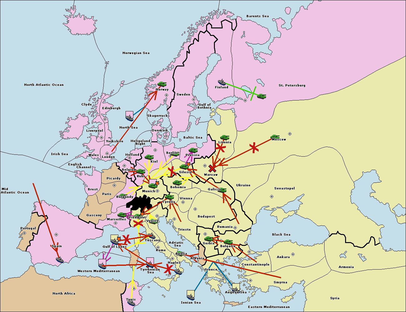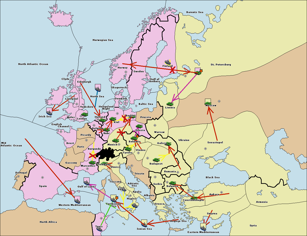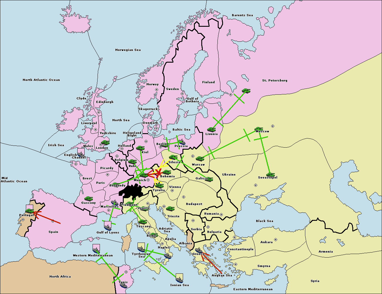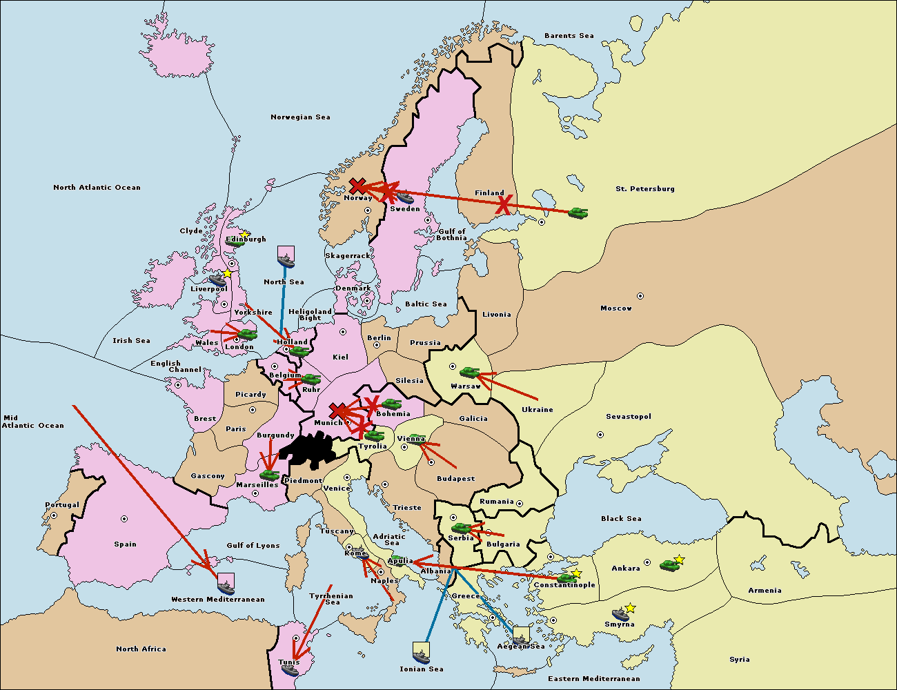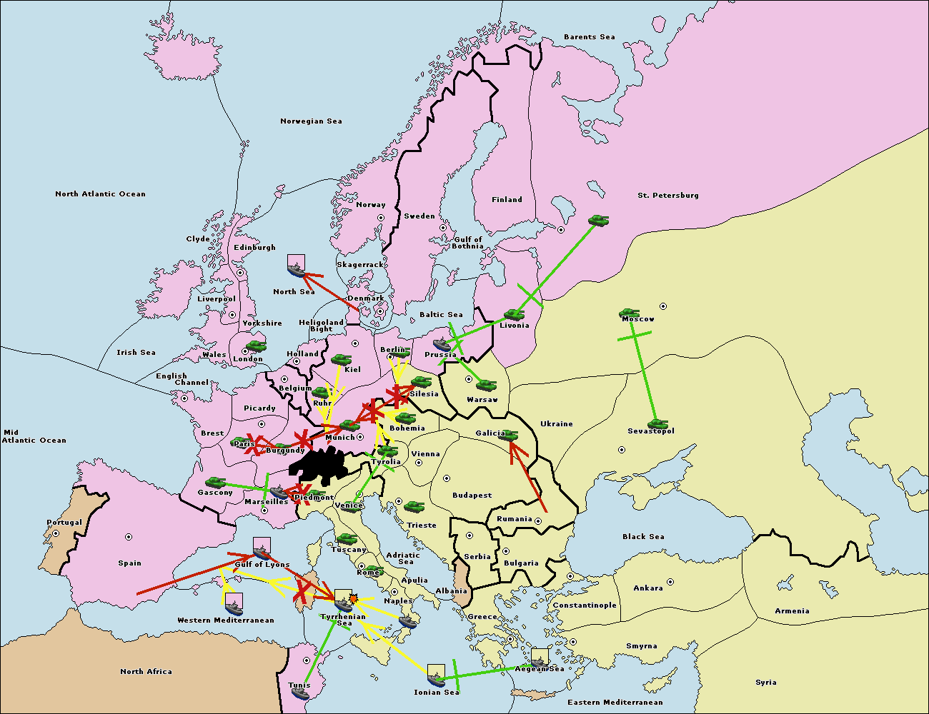 The fleet at Mid-Atlantic Ocean move to Western Mediterranean.