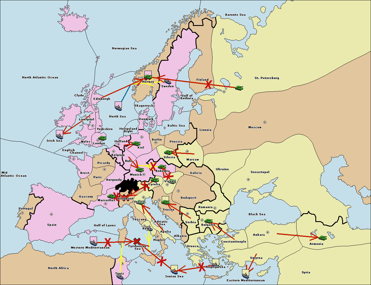 The fleet at Ionian Sea support hold to Tyrrhenian Sea.