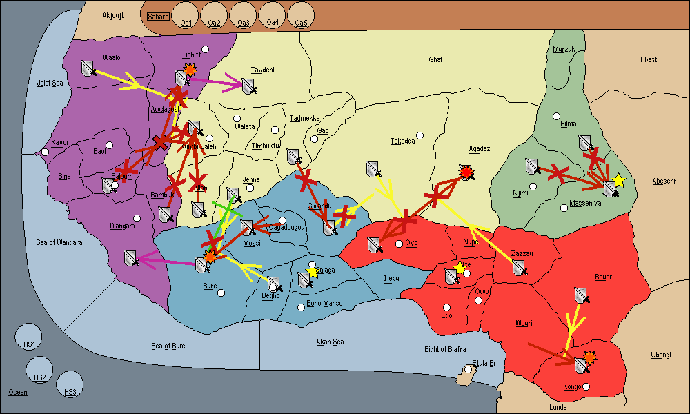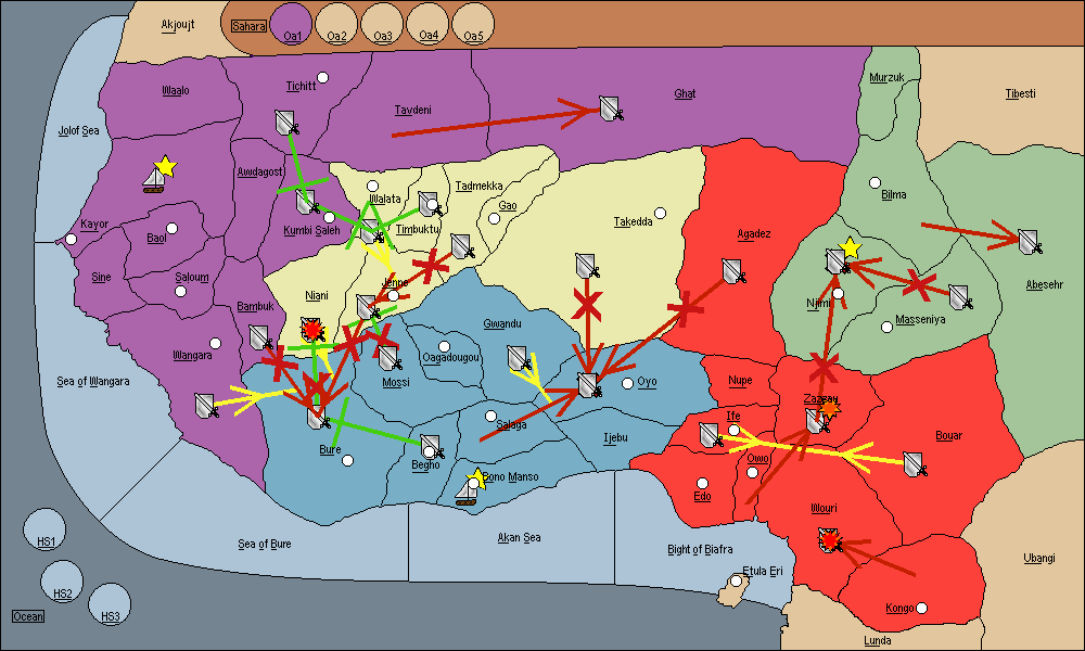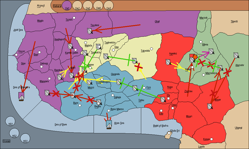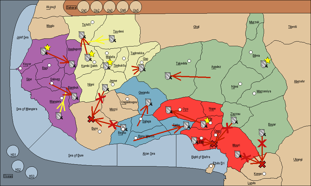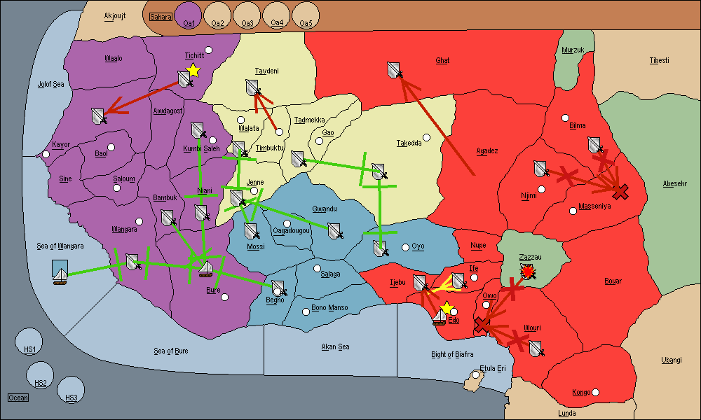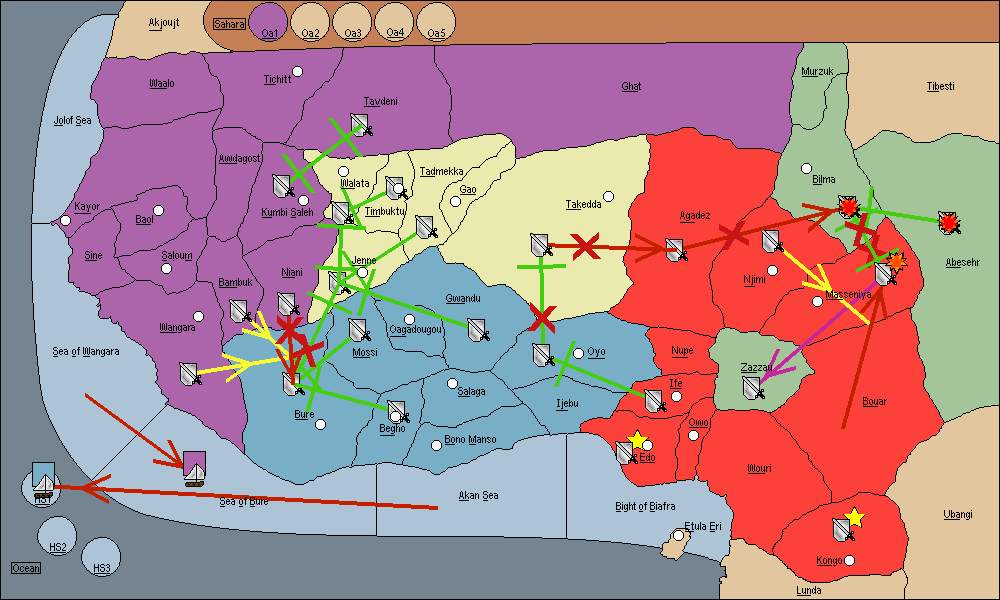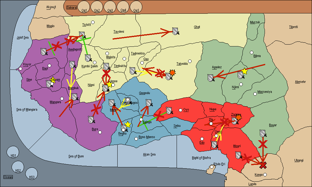 The army at Bouar move to Zazzau.
