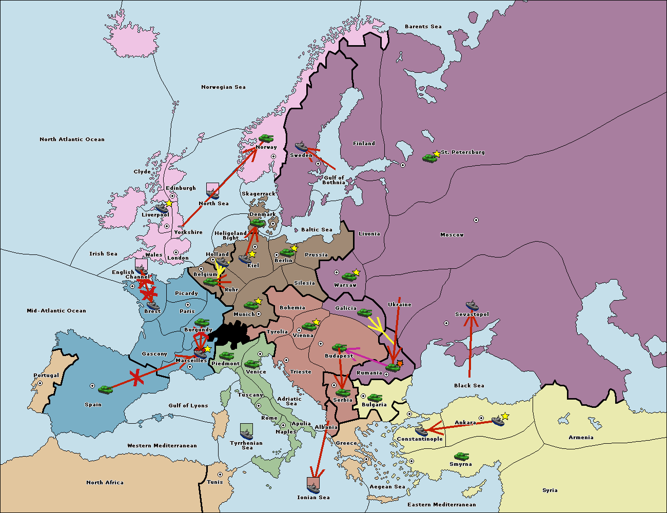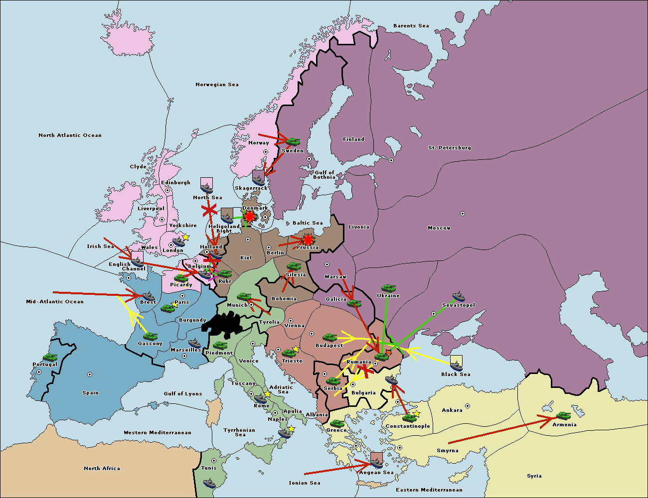 The fleet at Sevastopol support move to Rumania from Galicia.
