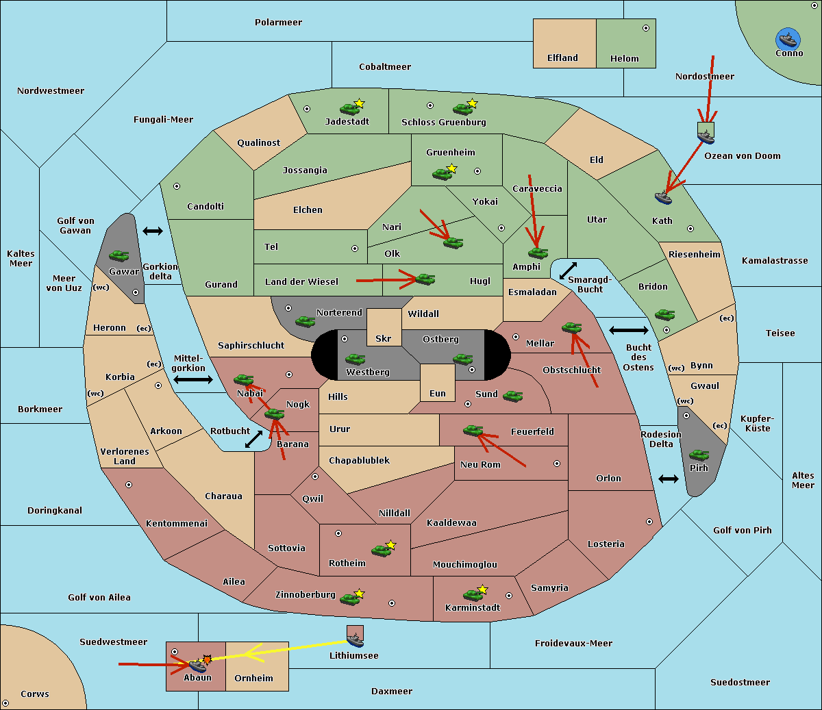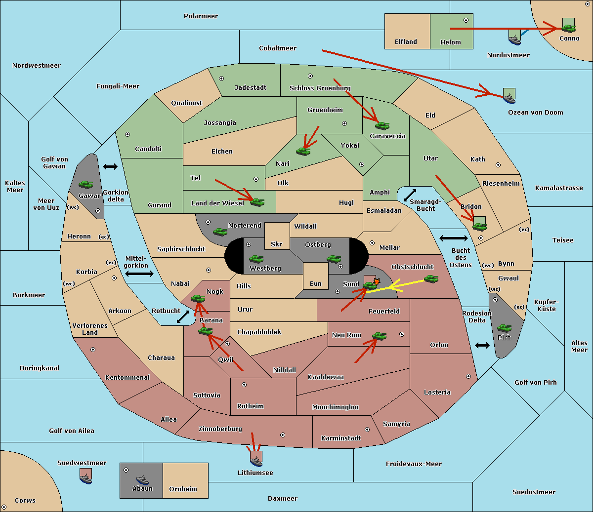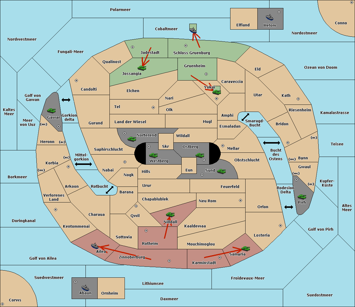 The fleet at Nordostmeer support move to Helom from Schloss Gruenburg.