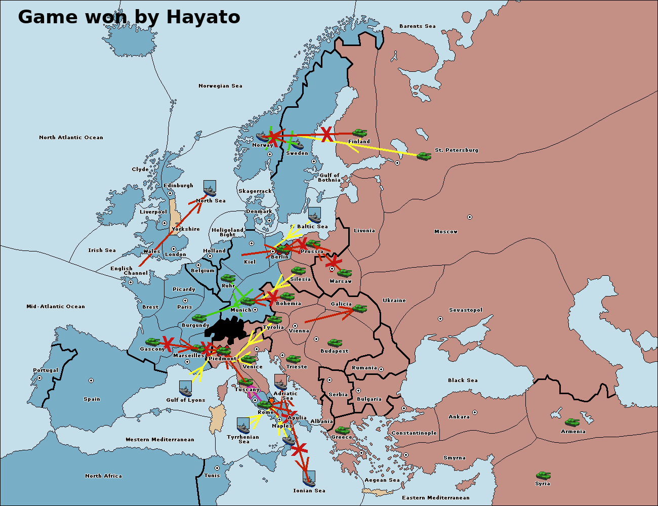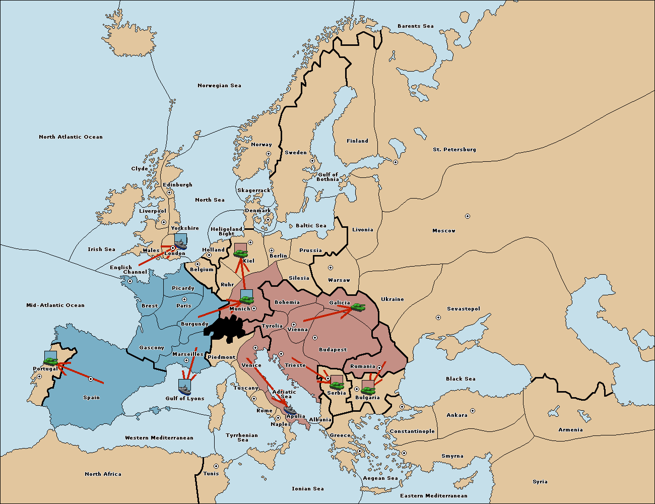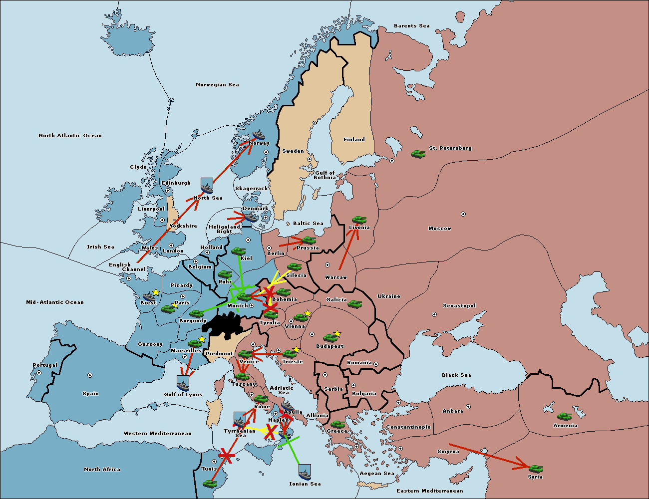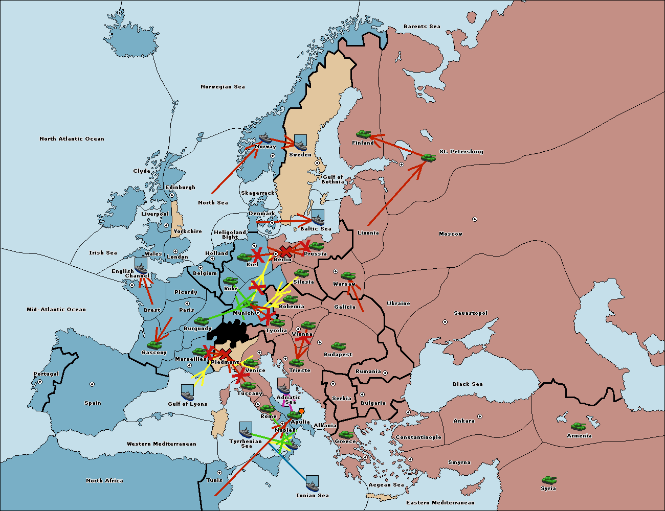 The fleet at Tyrrhenian Sea support move to Naples from Ionian Sea.