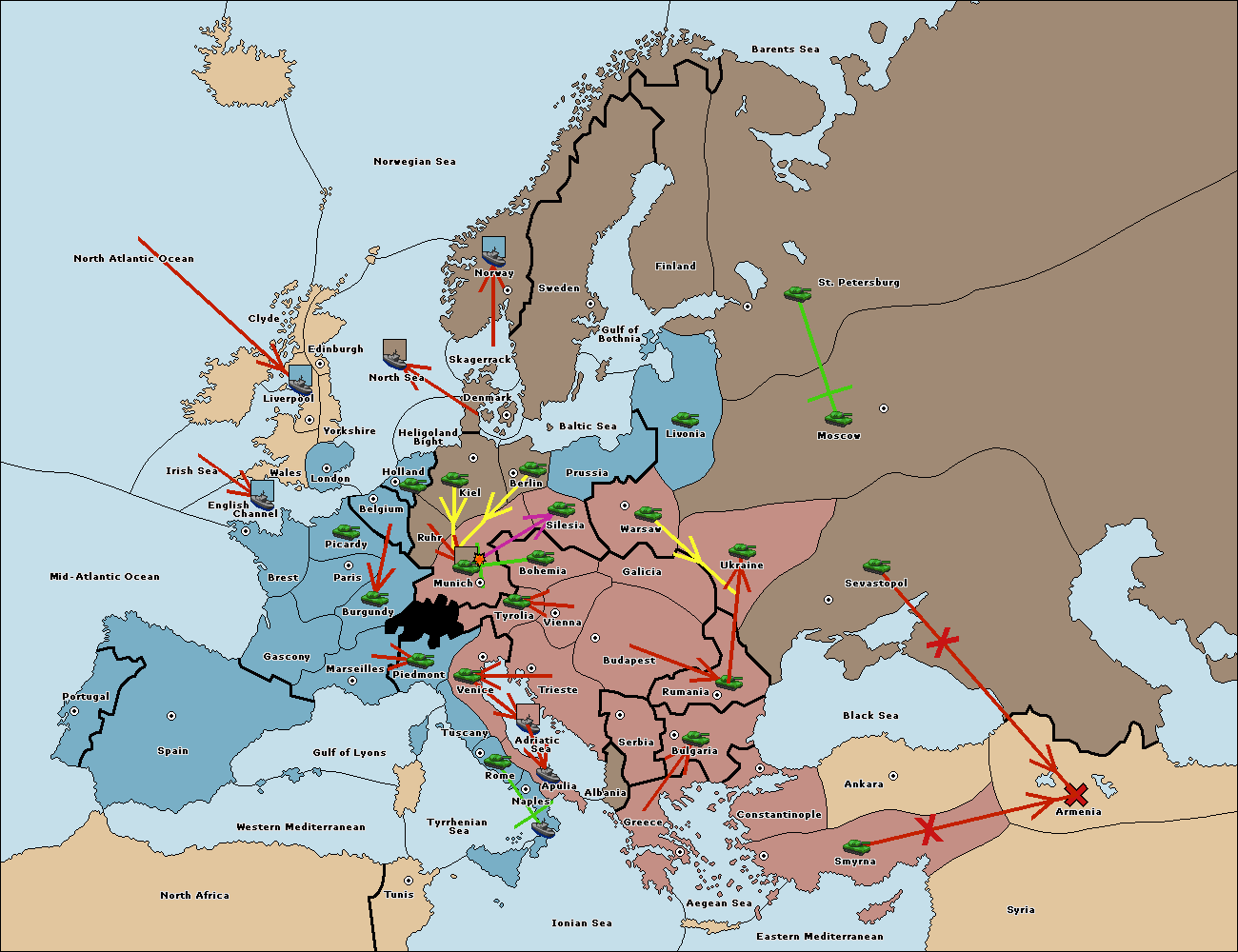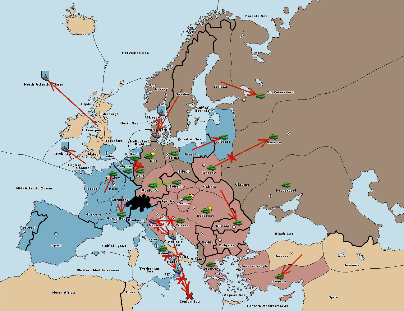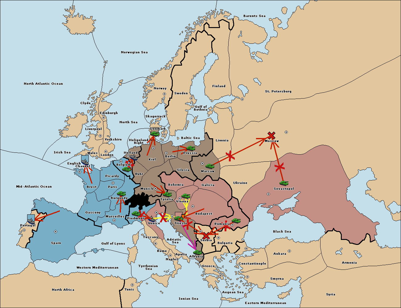 The army at Tyrolia move to Trieste.