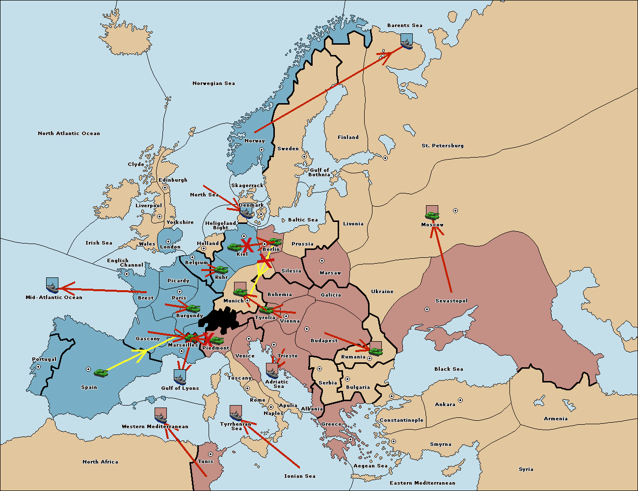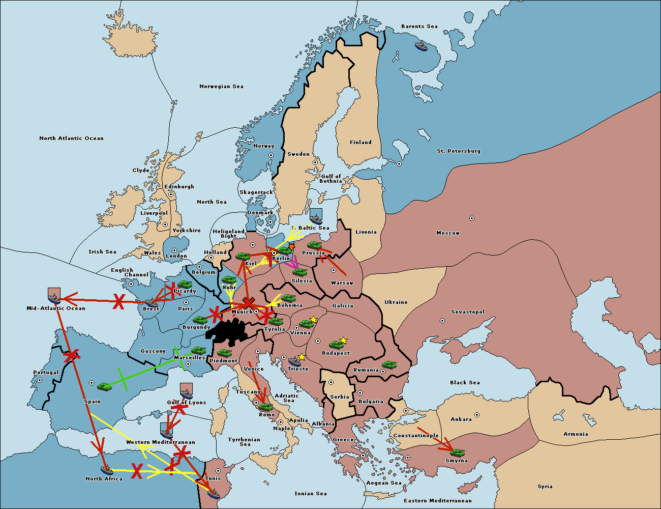 The fleet at North Africa support move to Western Mediterranean from Gulf of Lyons.