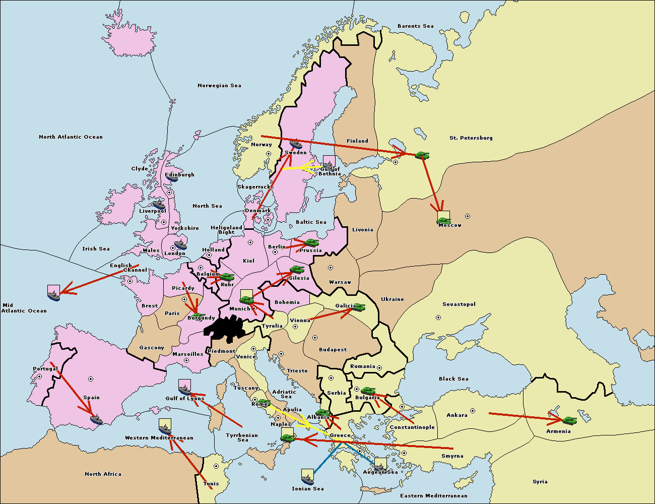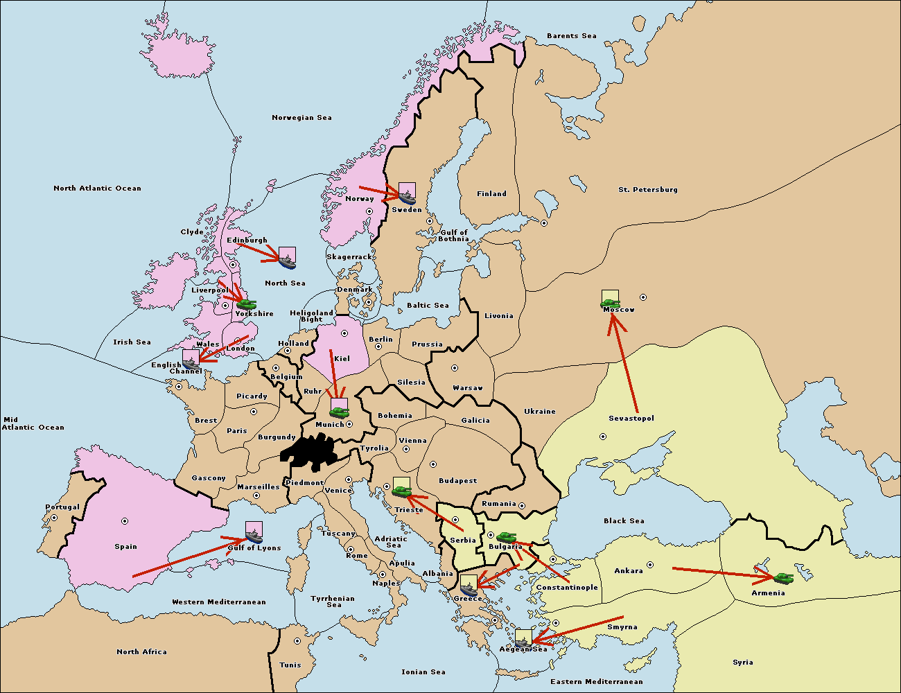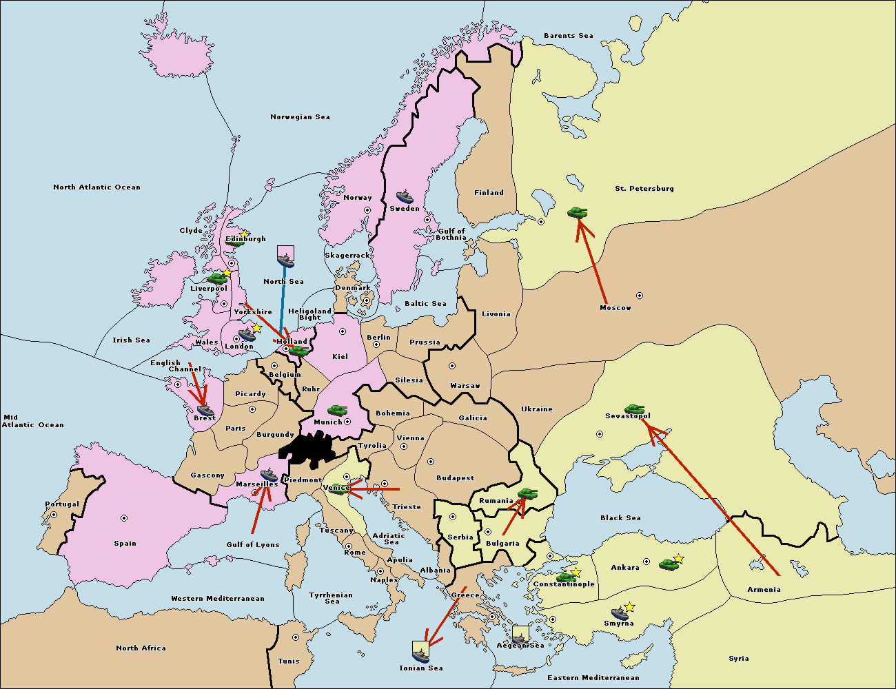 The fleet at Bulgaria (South Coast) move to Greece.