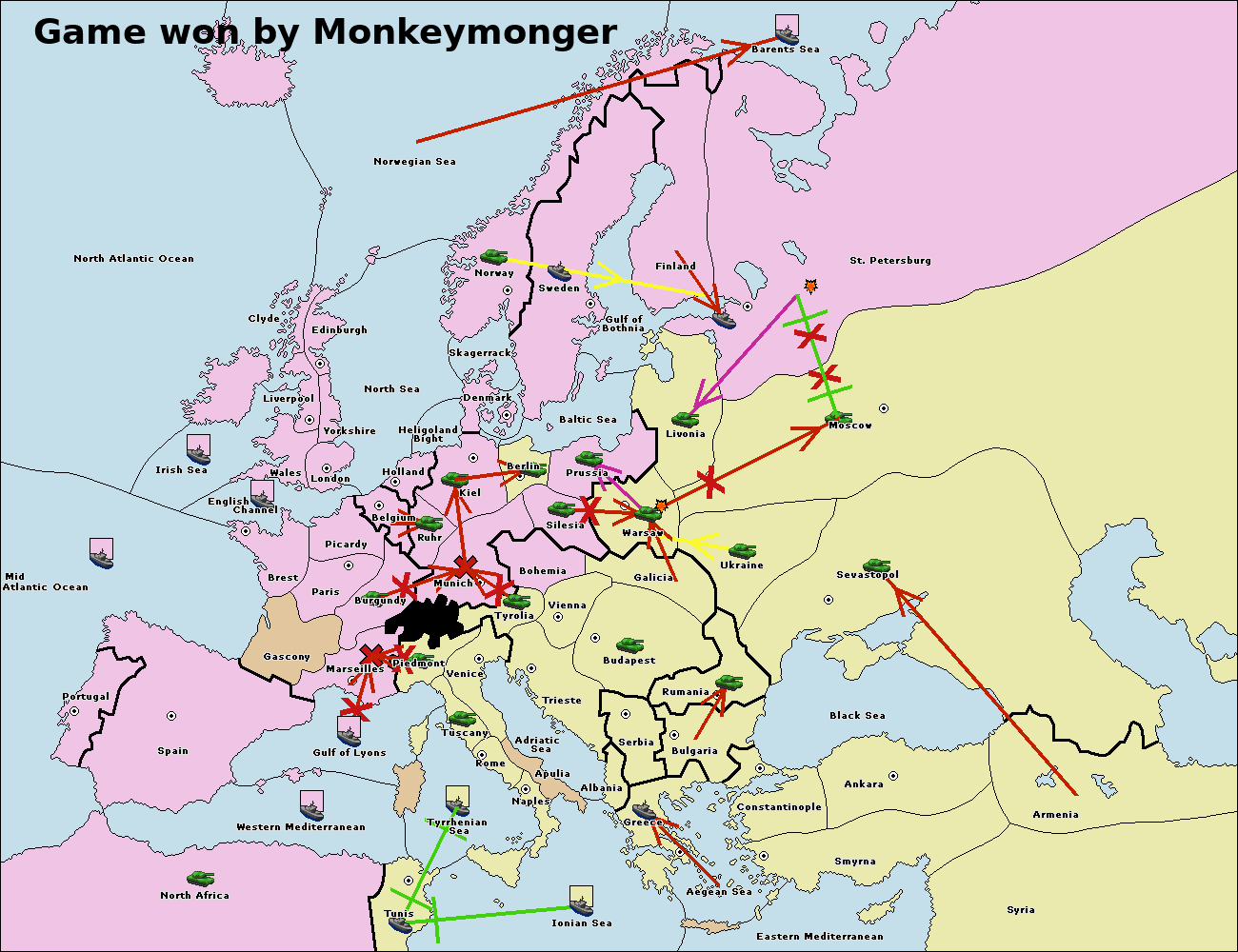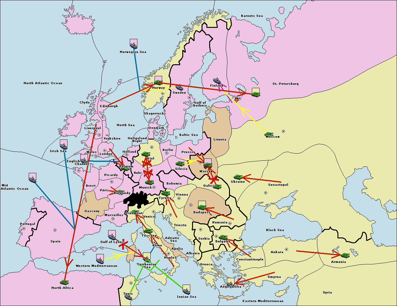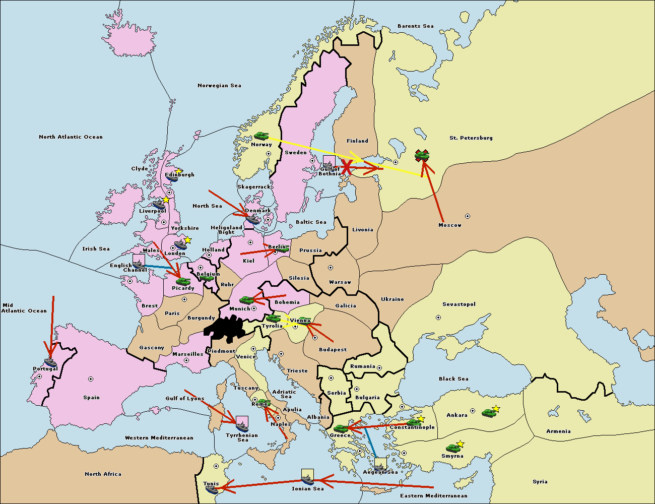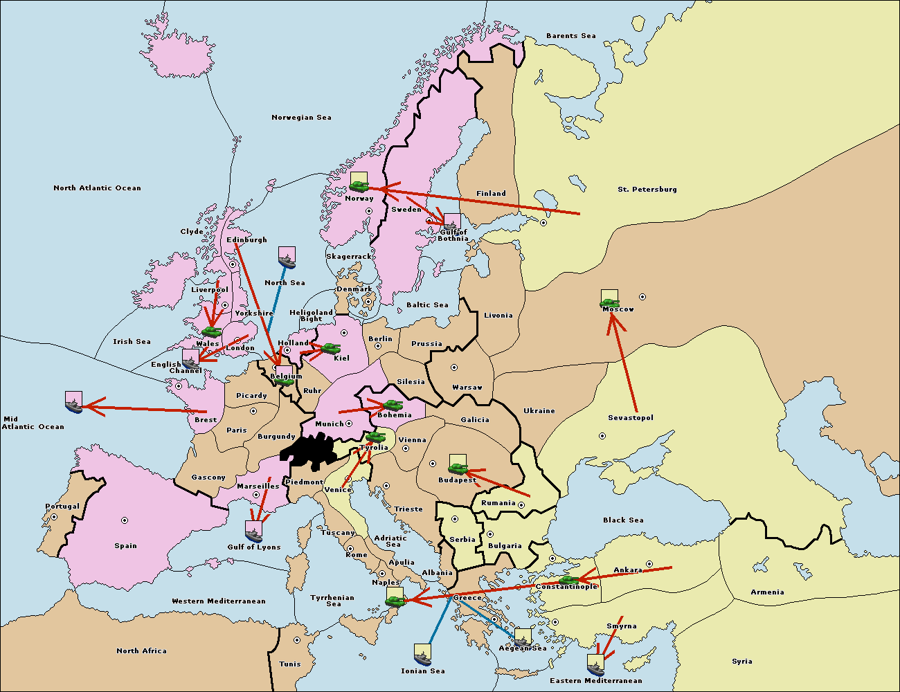 The fleet at Bulgaria (South Coast) move to Greece.