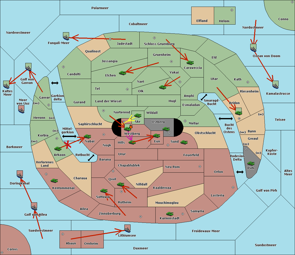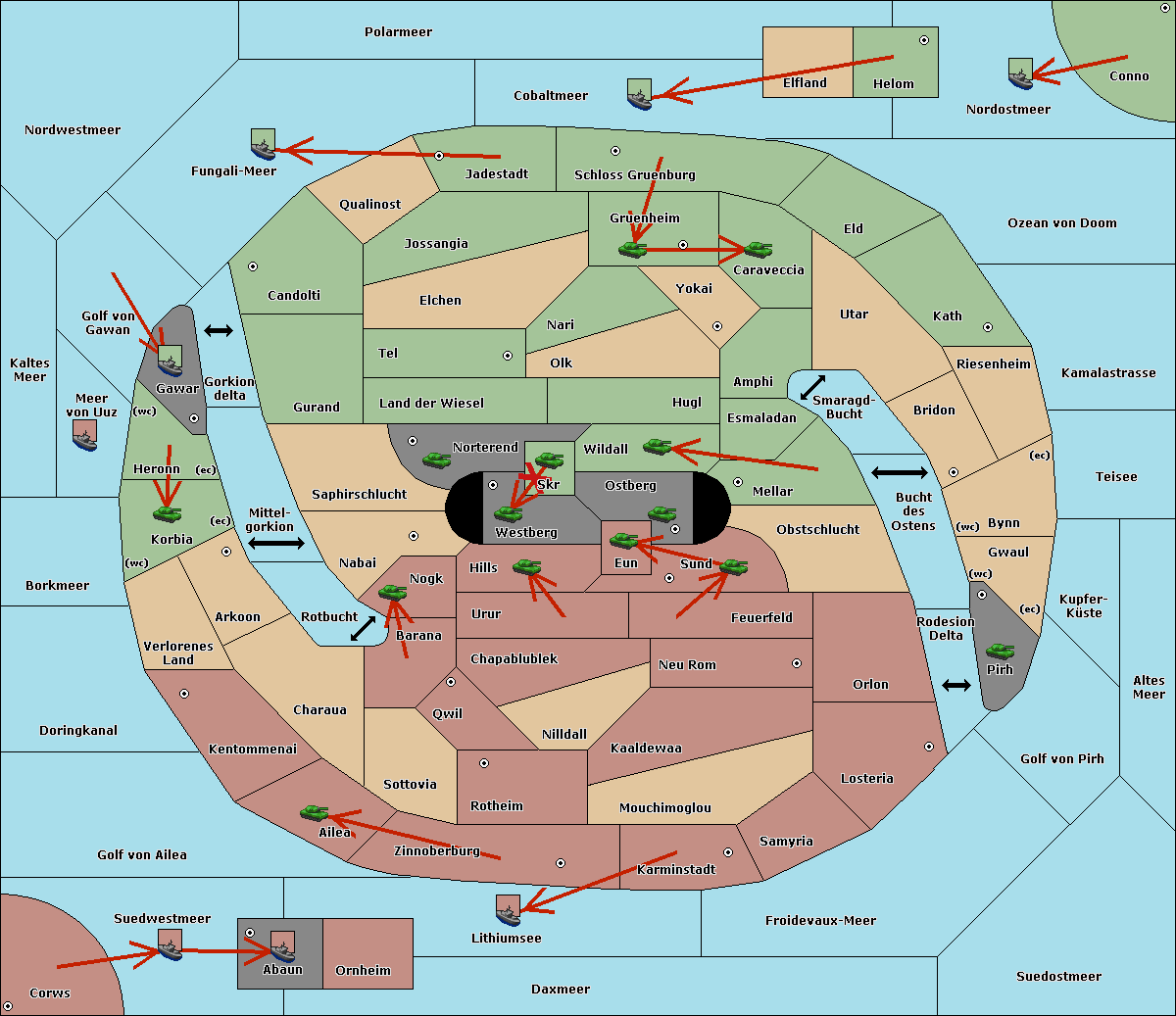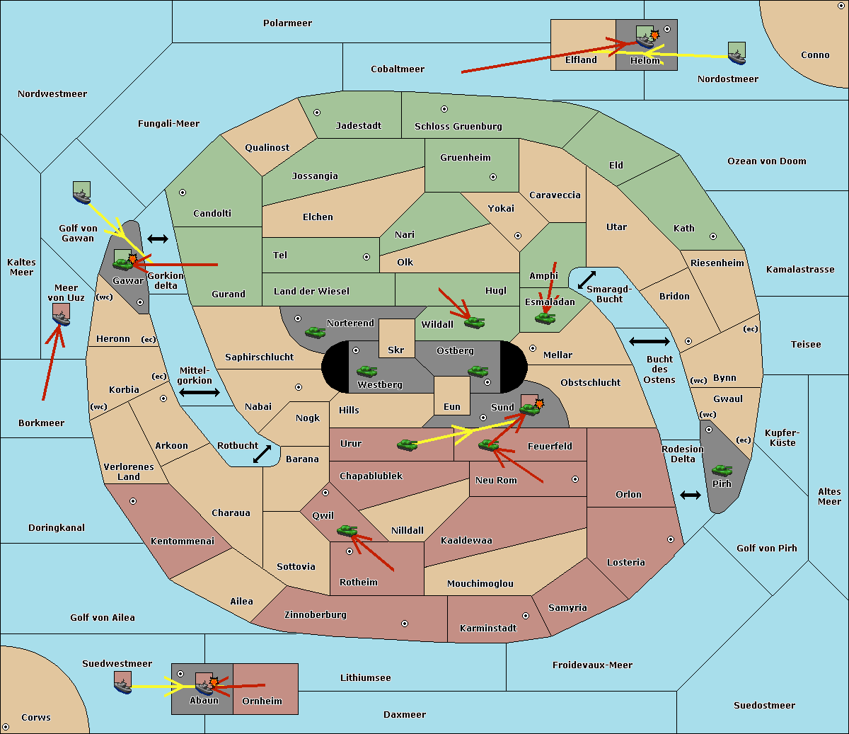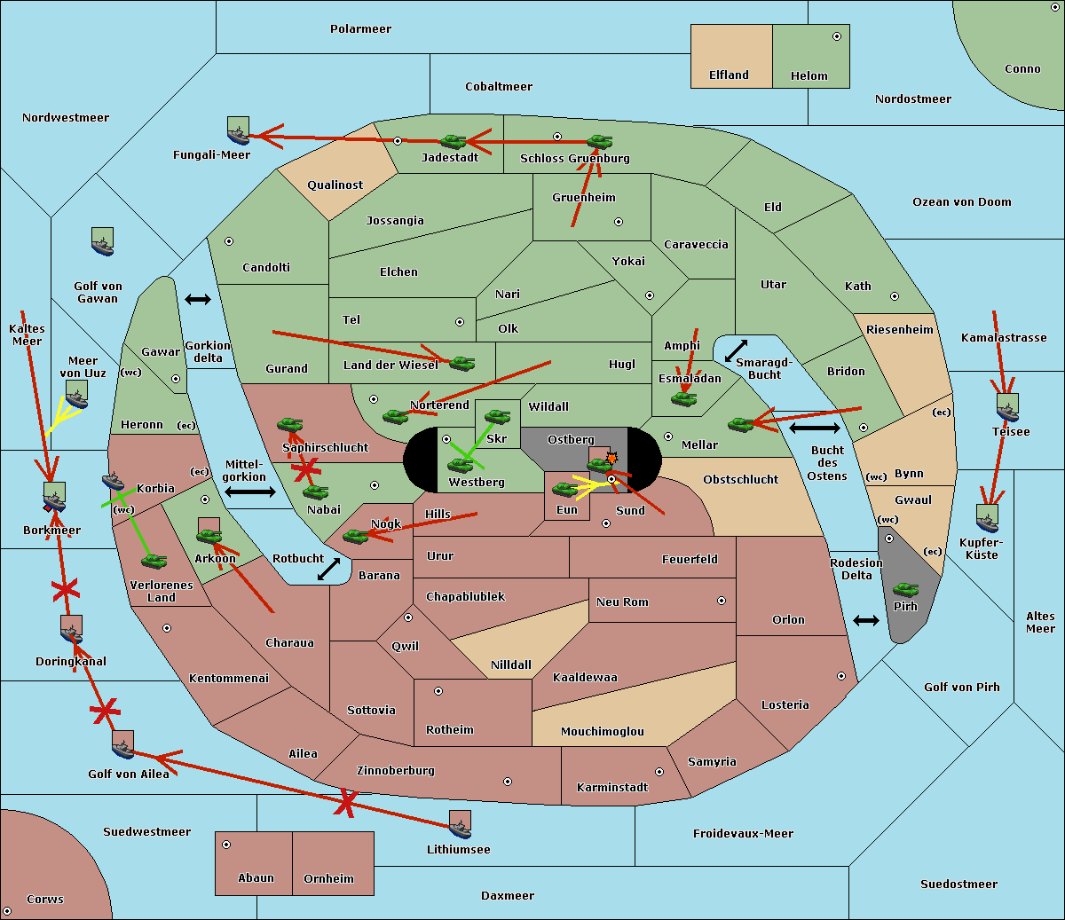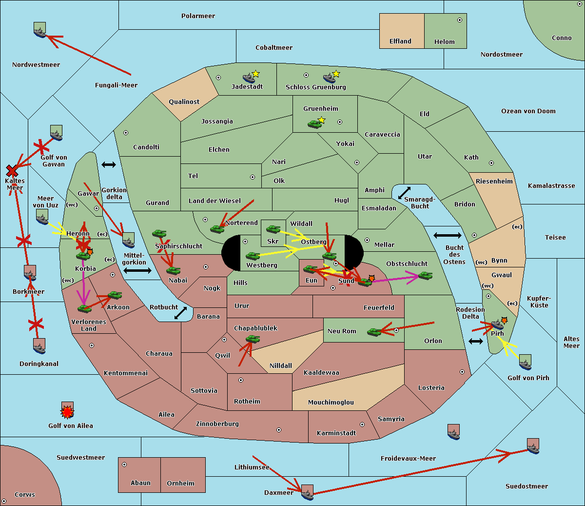 The fleet at Kaltes Meer support move to Meer von Uuz from Golf von Gawan.