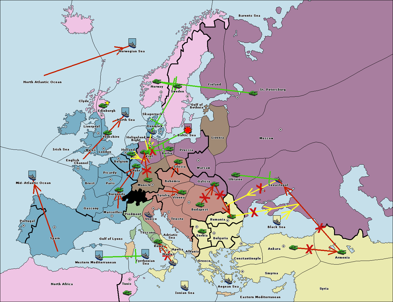 The fleet at Kiel move to Baltic Sea.