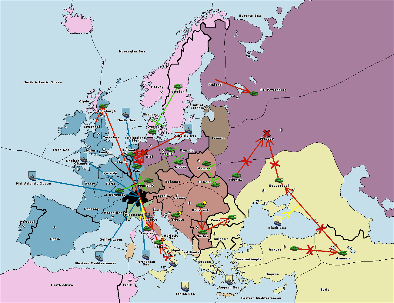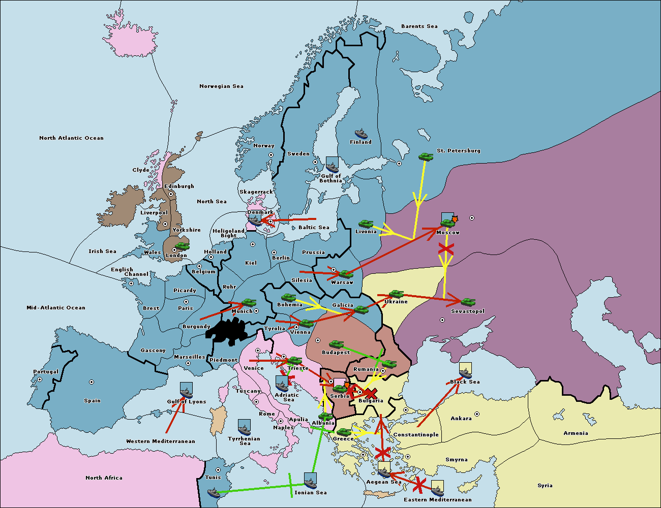 The fleet at Sevastopol support move to Rumania from Galicia.