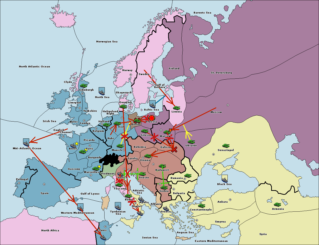 The army at Moscow move to Warsaw.
