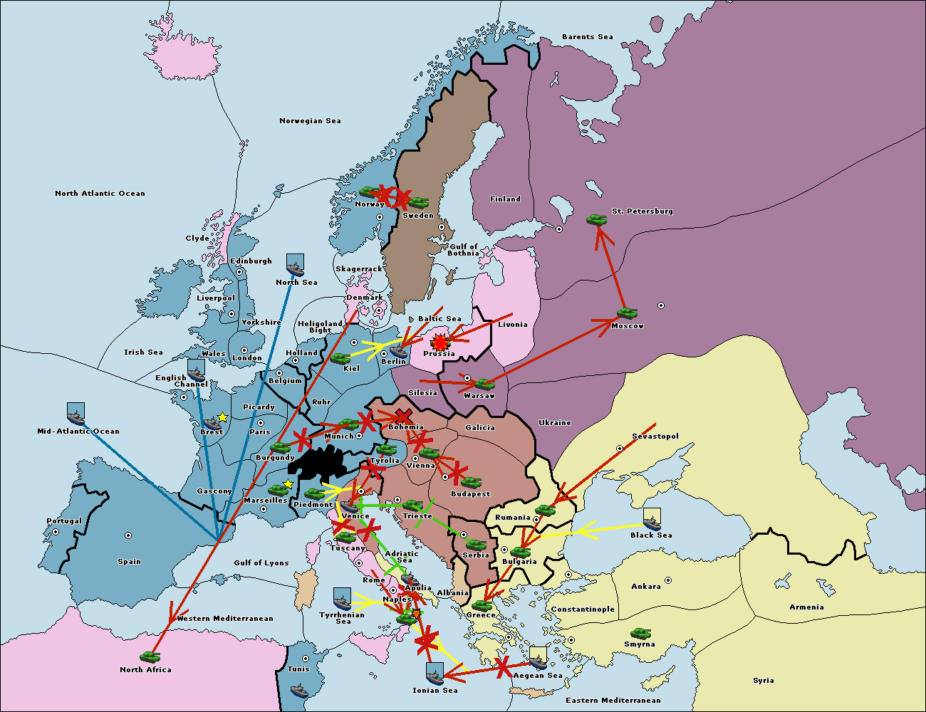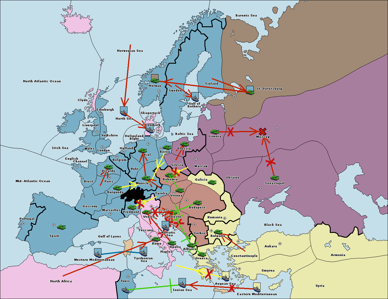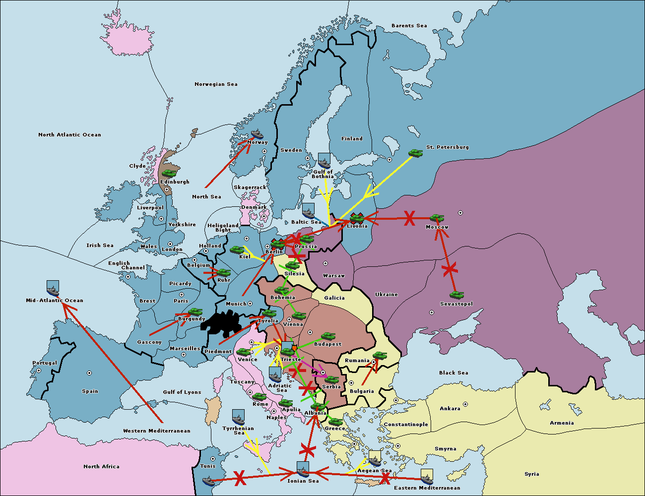 The army at Tyrolia support move to Bohemia from Vienna.