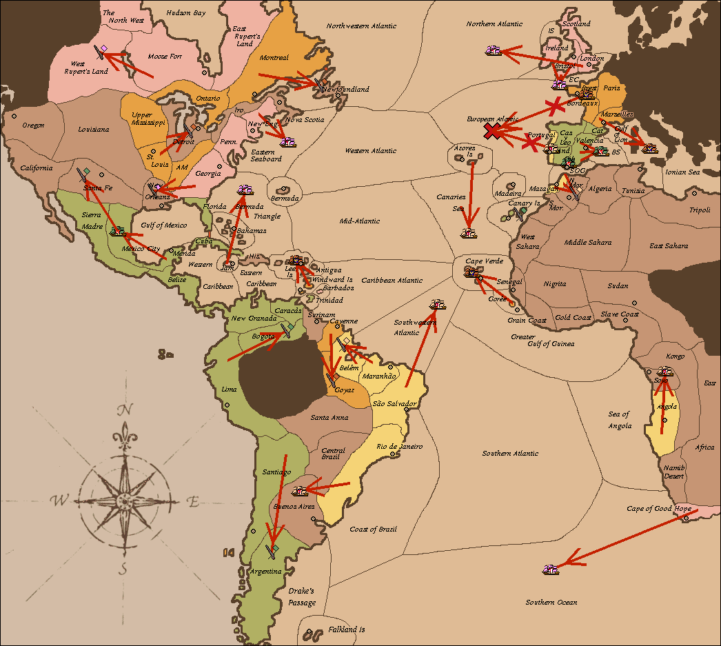 The fleet at Portugal move to European Atlantic.