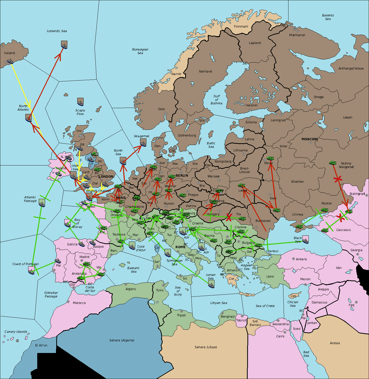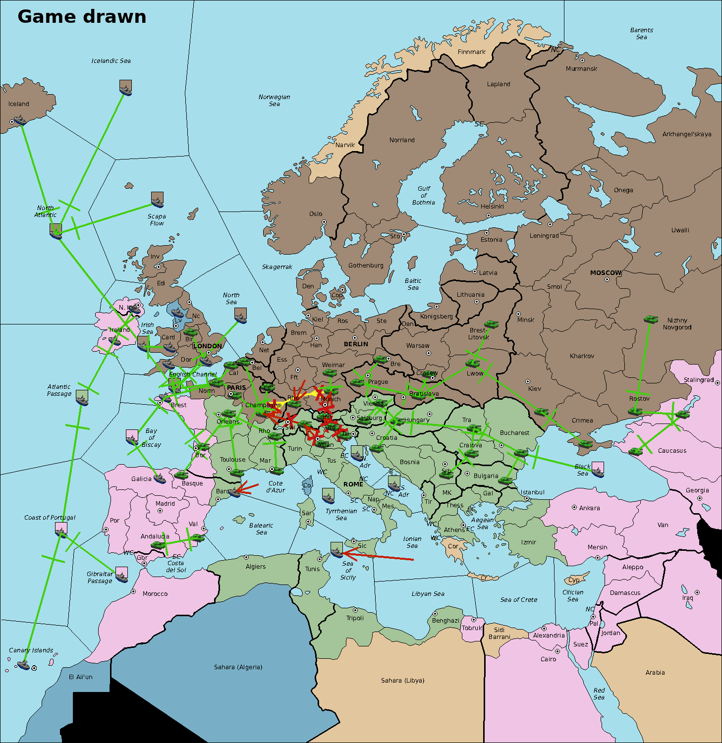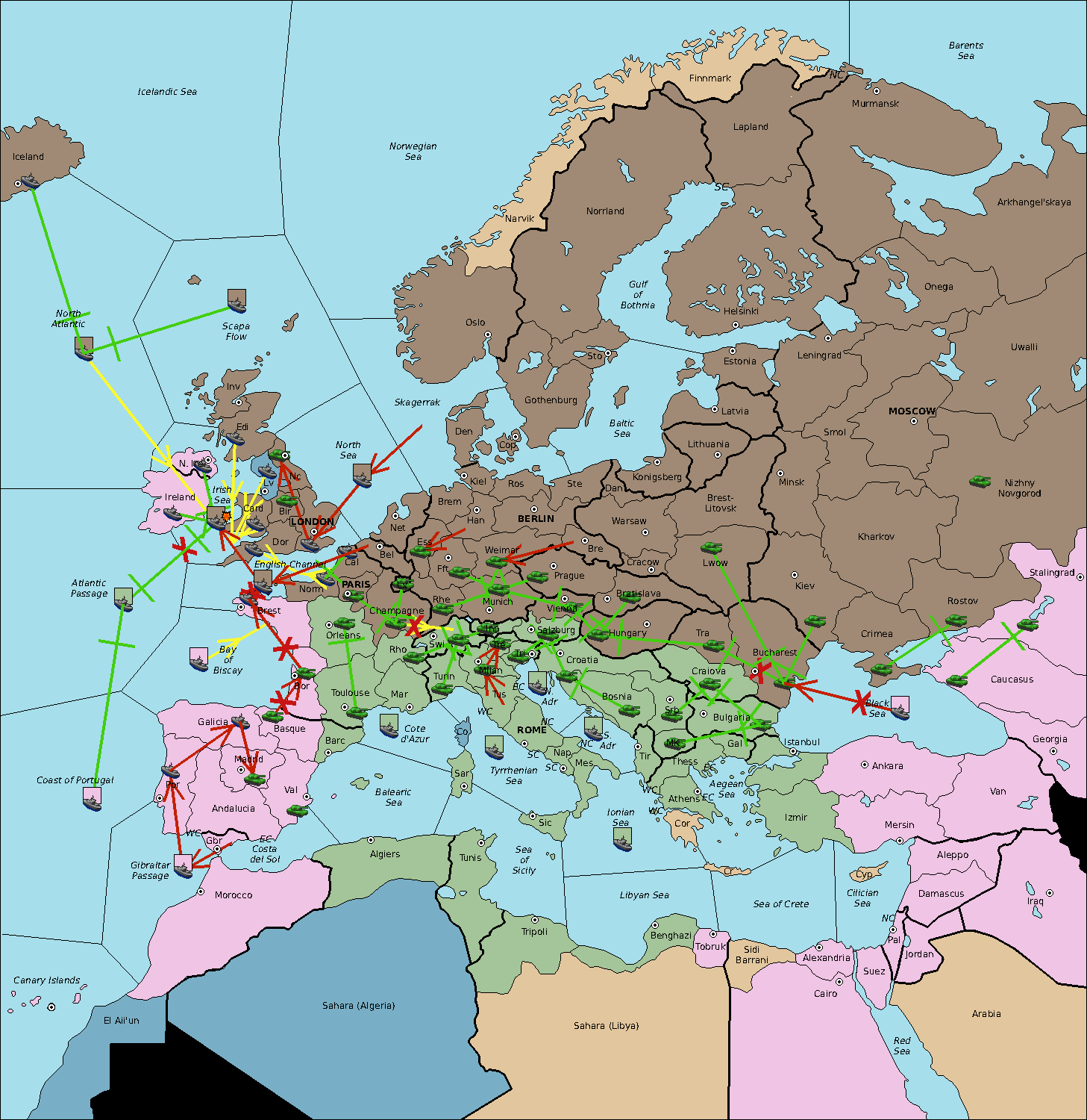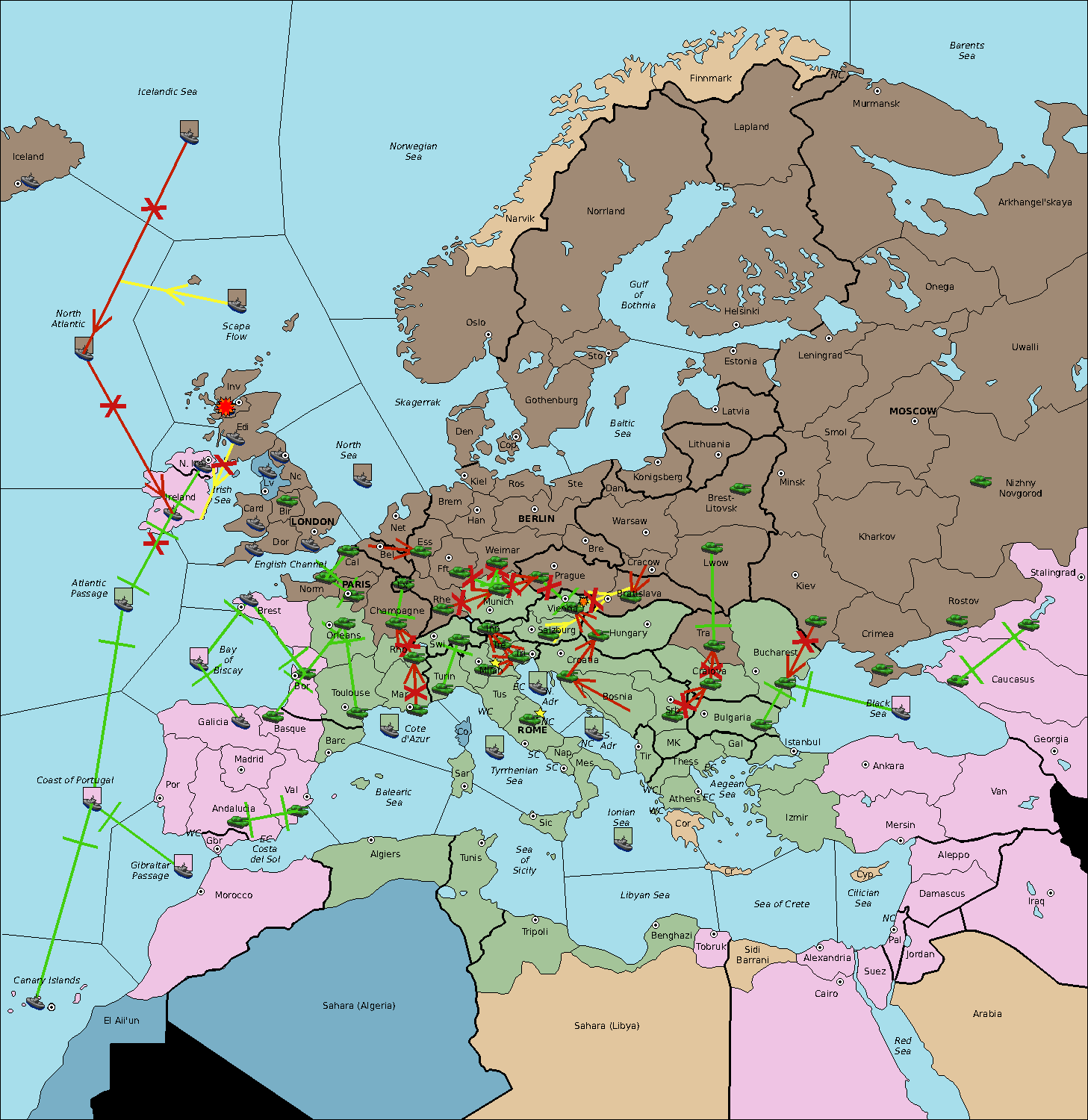 The fleet at North Atlantic retreat to Irish Sea.