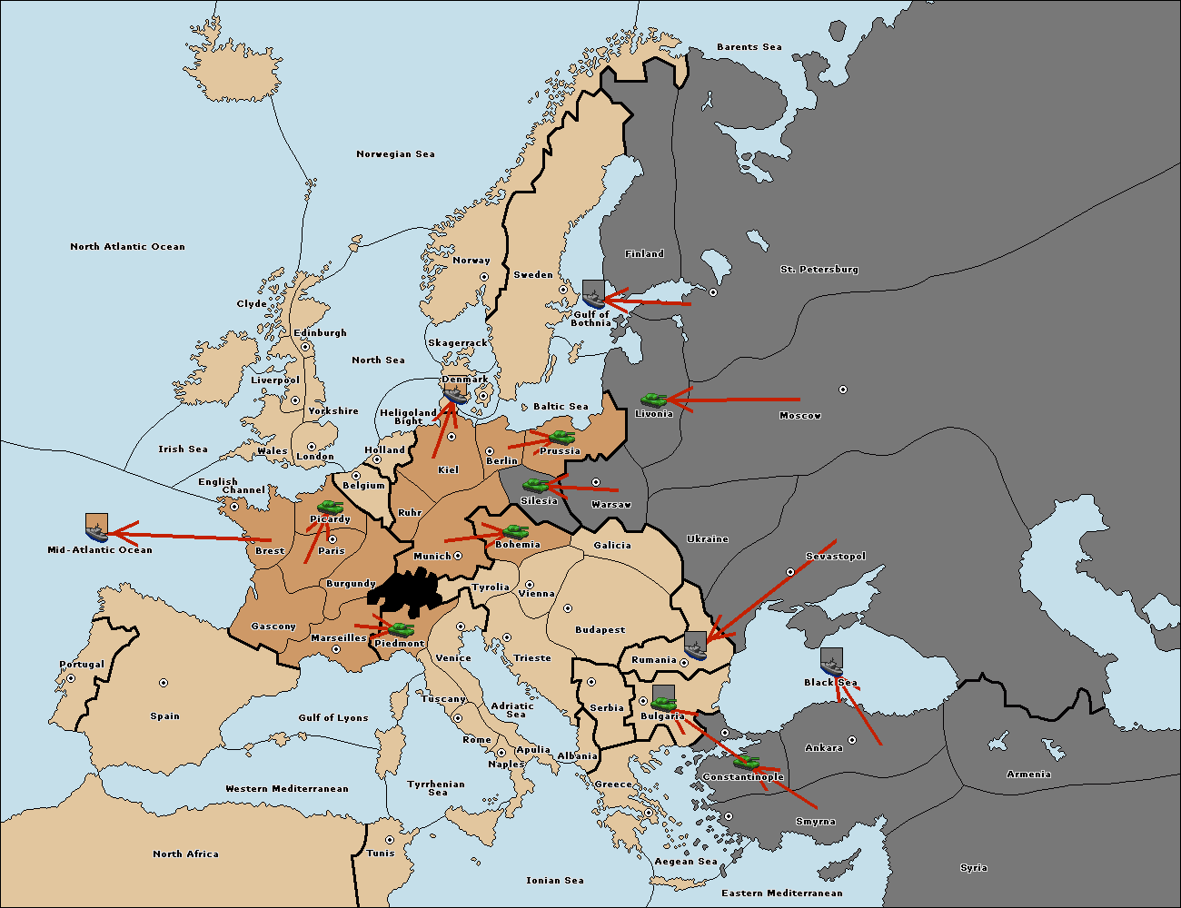 The fleet at Mid-Atlantic Ocean move to Western Mediterranean.