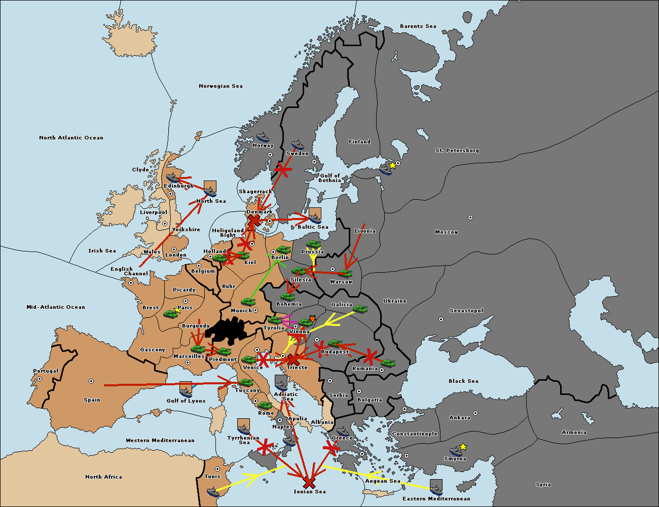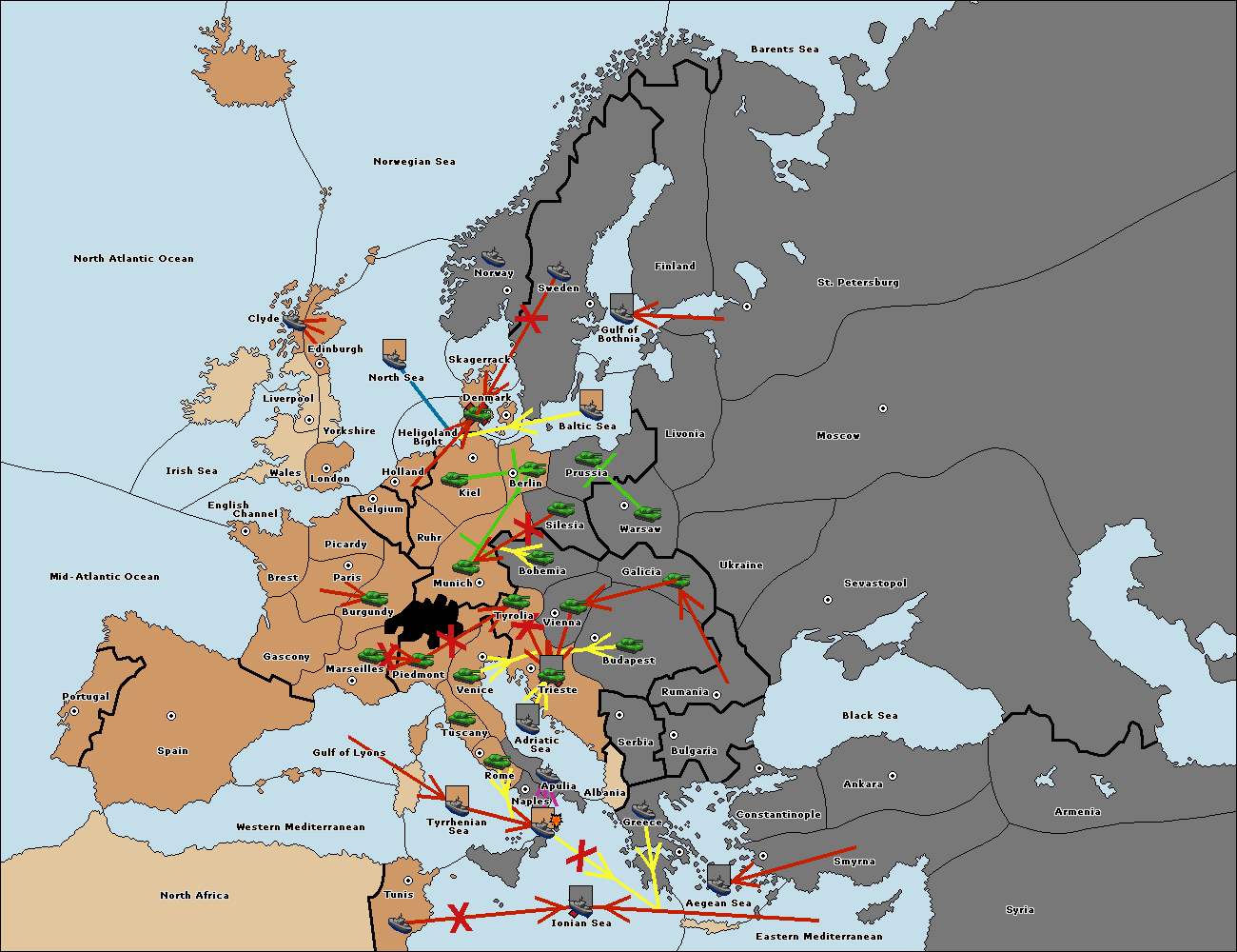 The fleet at Naples support move to Ionian Sea from Tunis.
