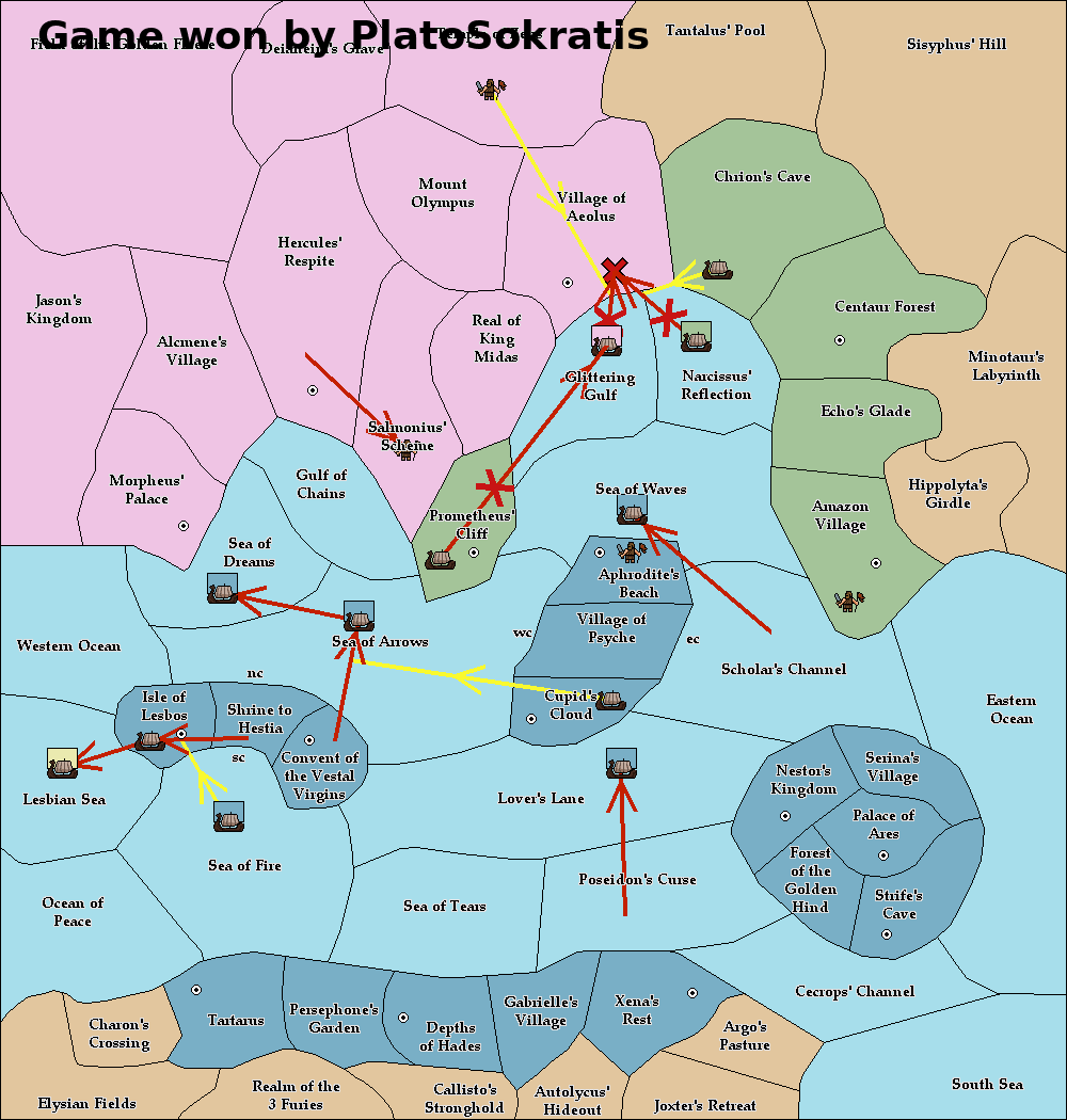 The army at Temple of Zeus support move to Village of Aeolus from Glittering Gulf.