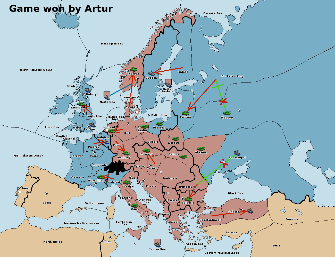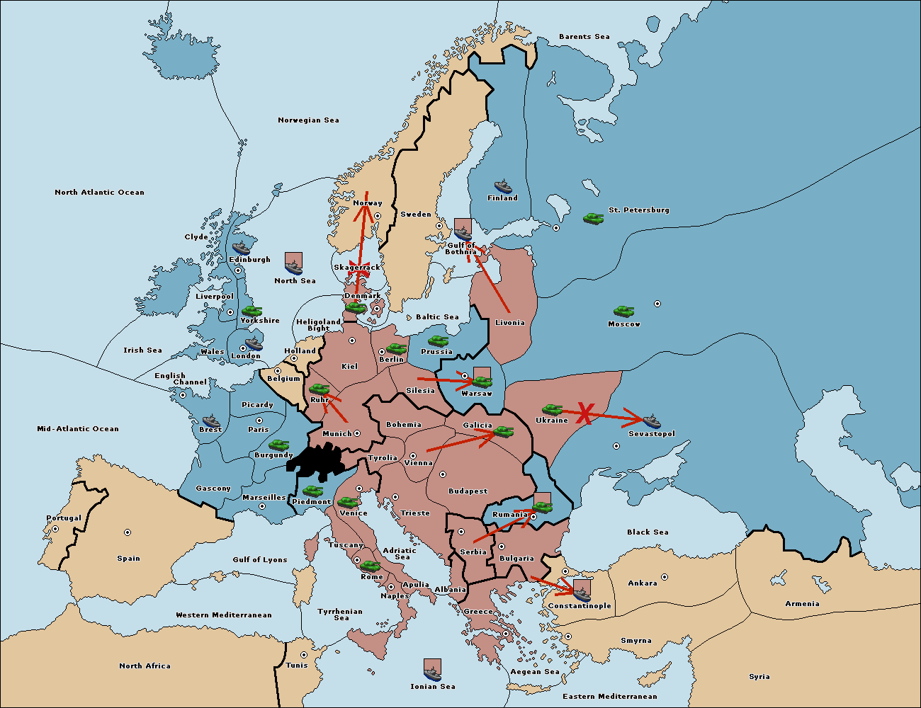 The fleet at Bulgaria (South Coast) move to Constantinople.