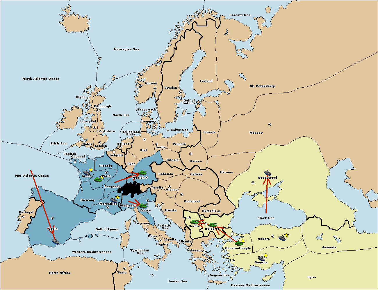 The fleet at Spain (South Coast) move to Western Mediterranean.