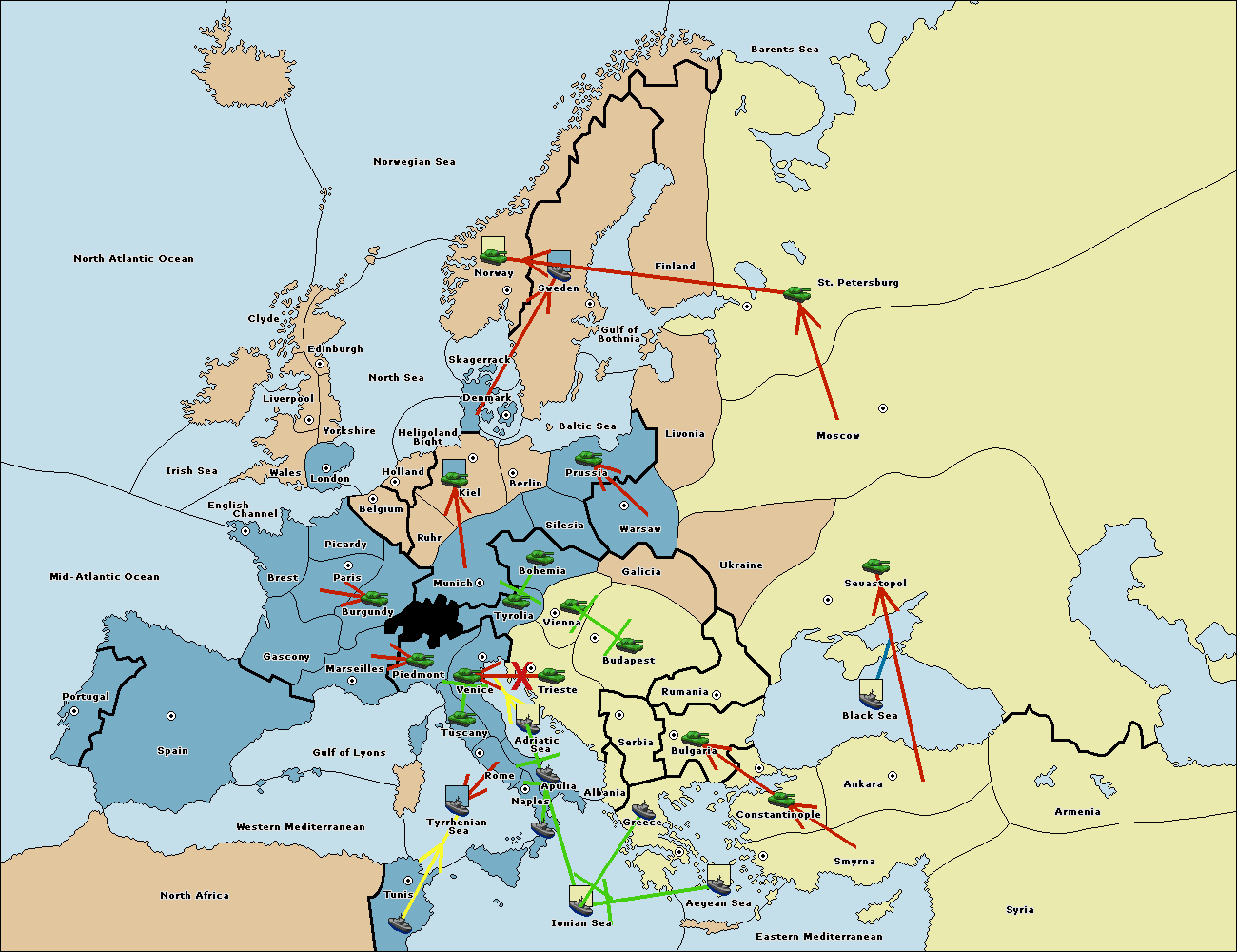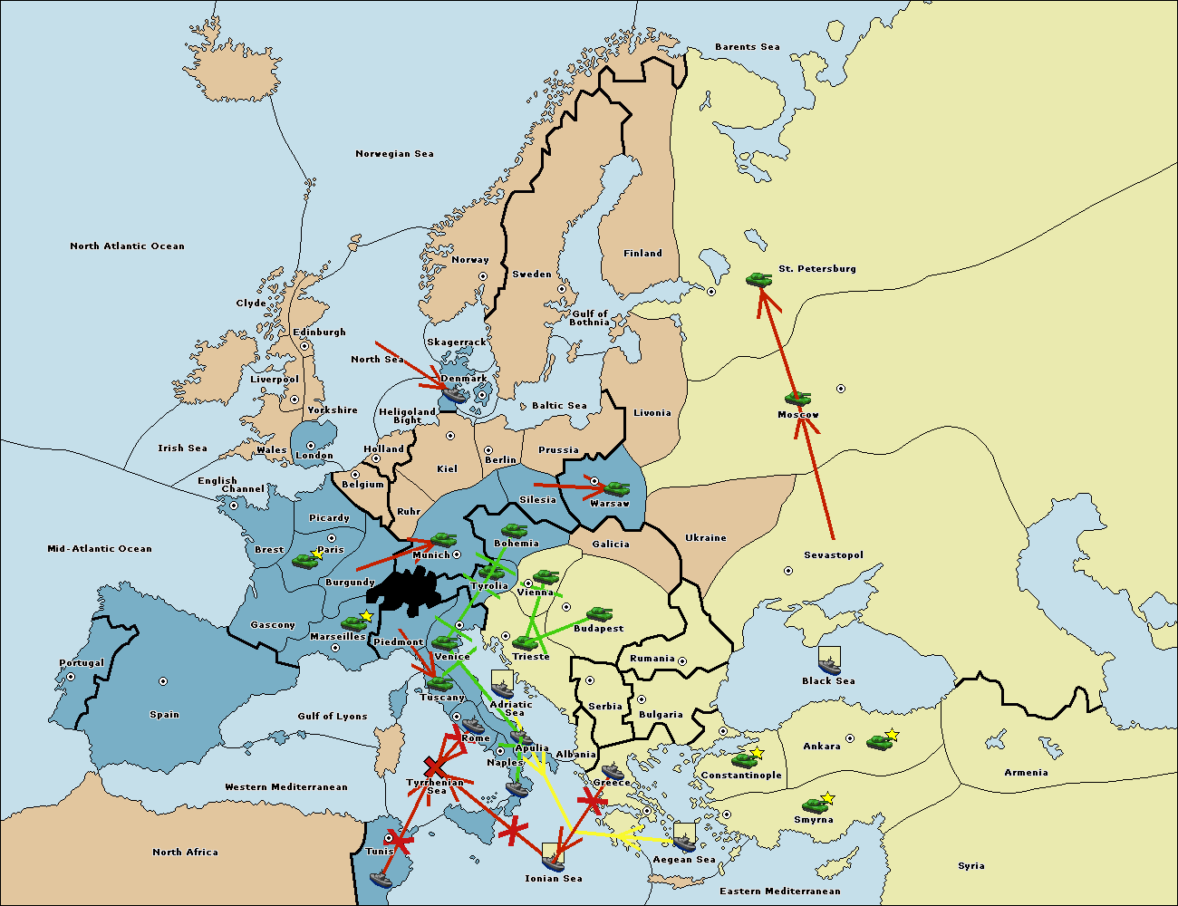 The fleet at Naples support move to Ionian Sea from Tunis.