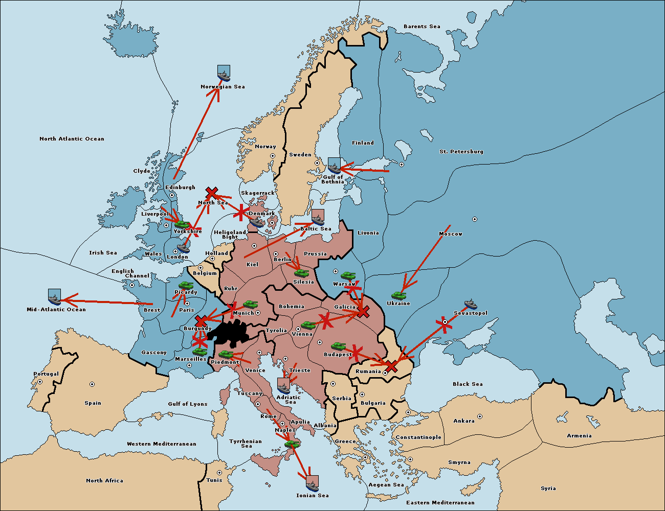 The fleet at Tyrrhenian Sea move to Gulf of Lyons.