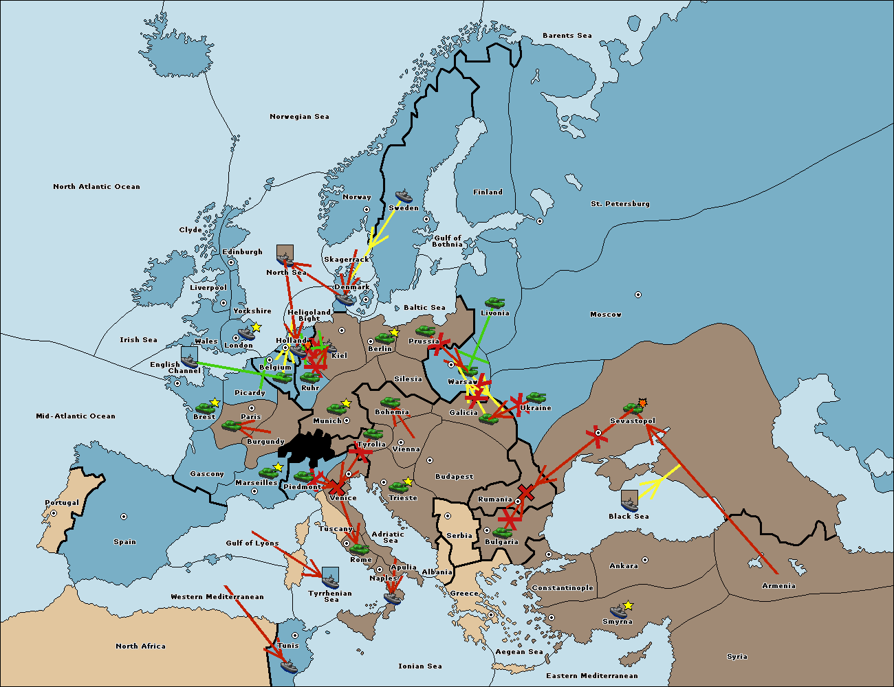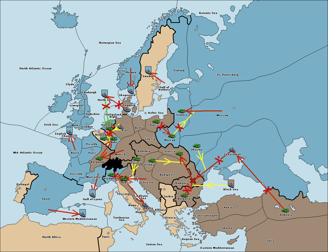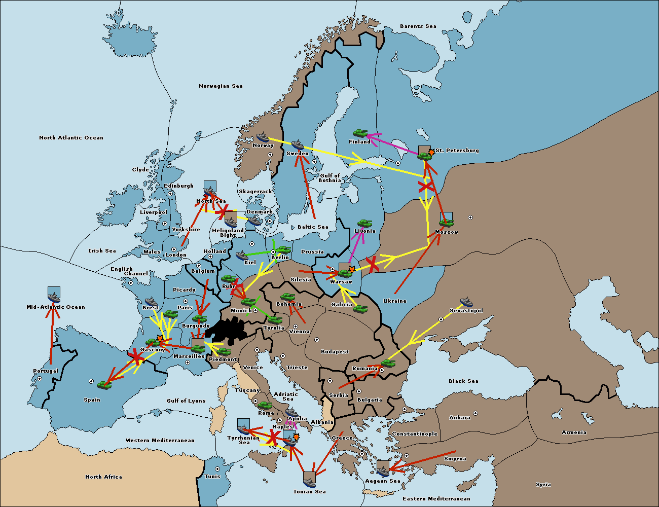 The fleet at Mid-Atlantic Ocean move to Western Mediterranean.