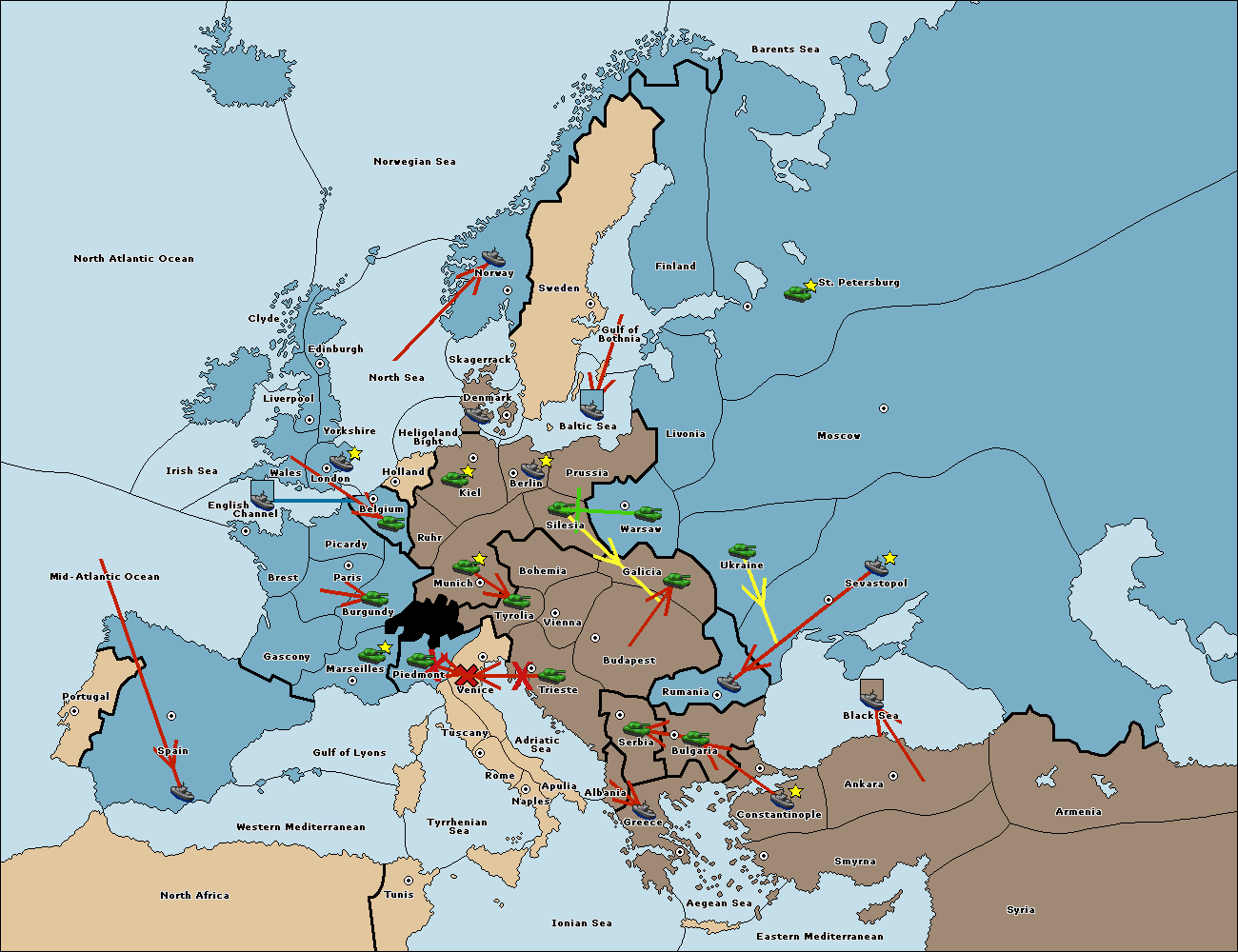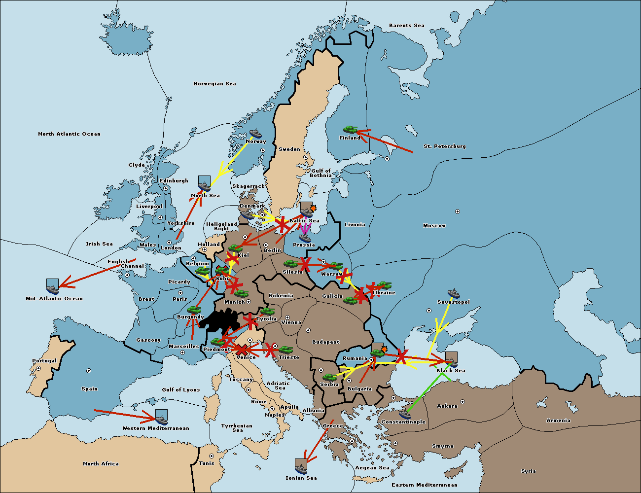 The fleet at Mid-Atlantic Ocean move to Western Mediterranean.