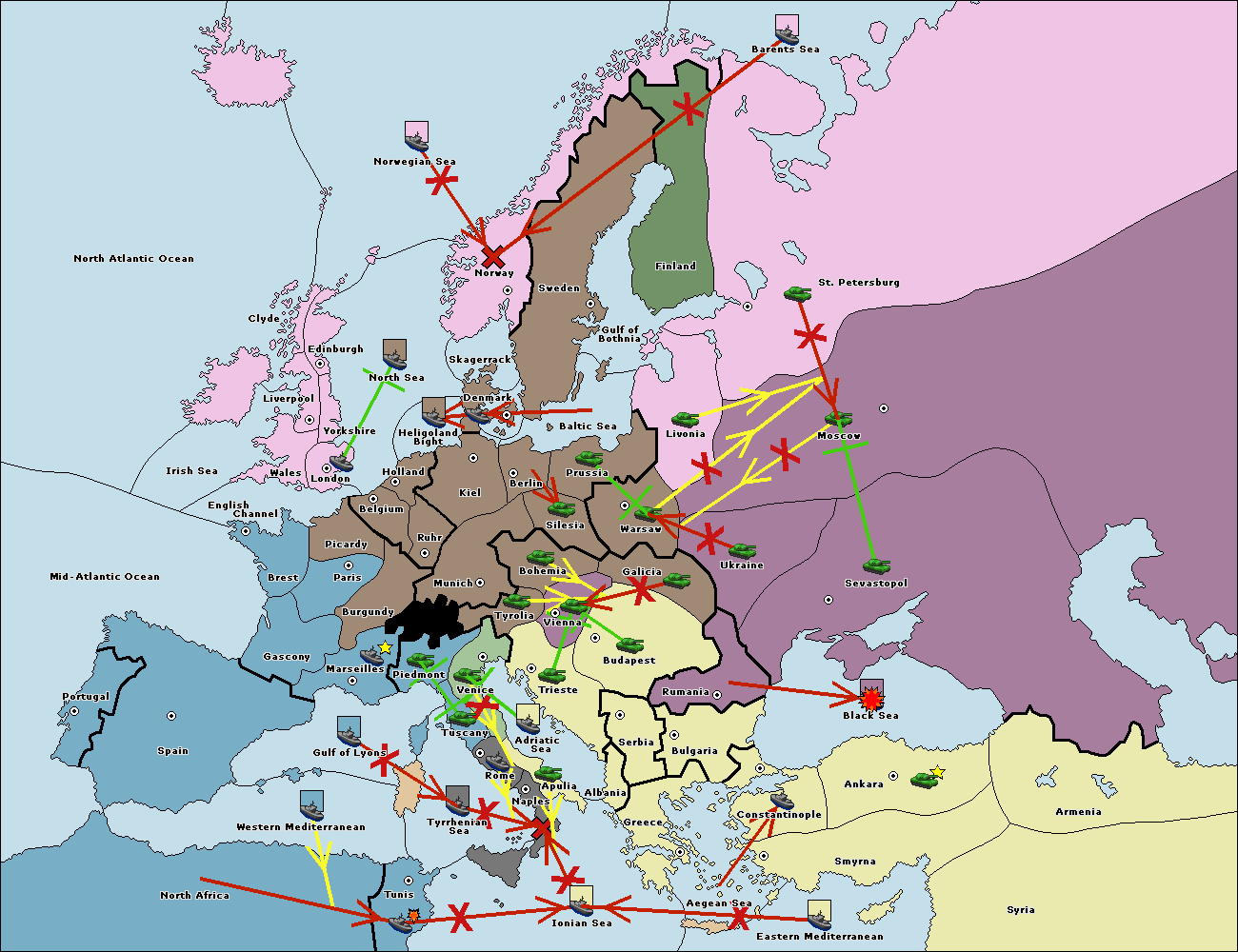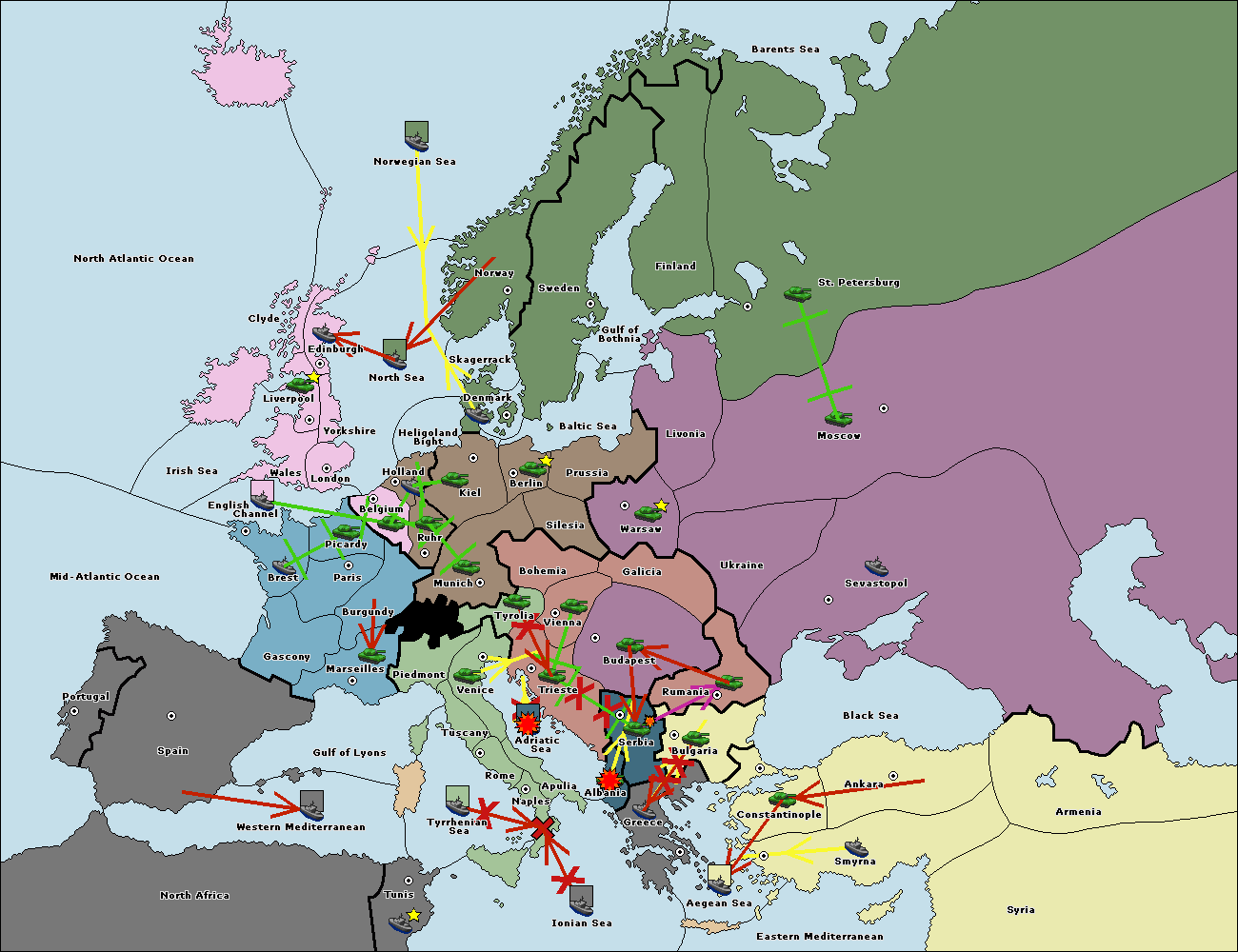 The fleet at Bulgaria (North Coast) move to Rumania.
