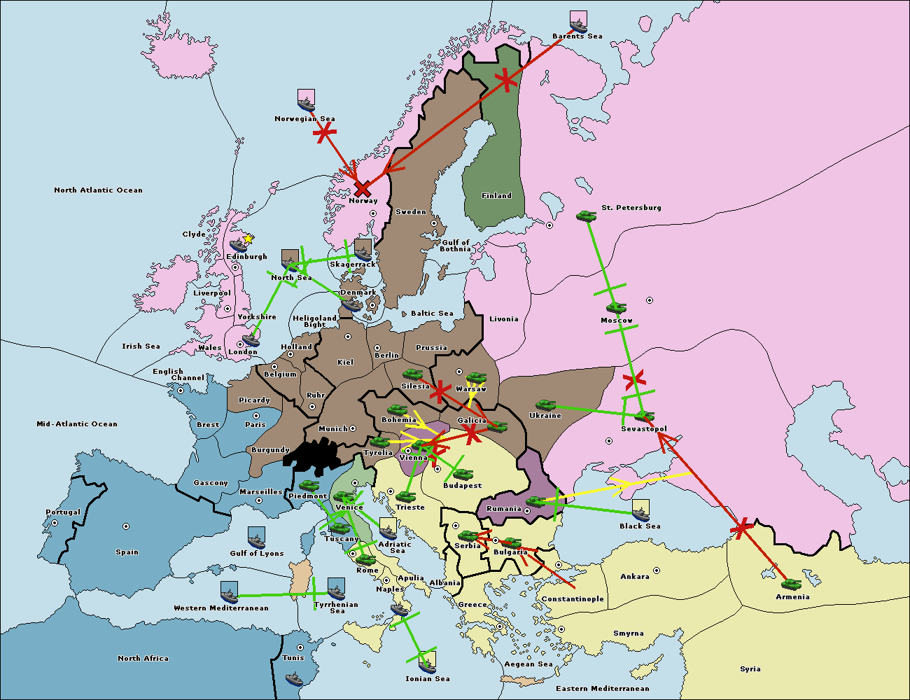 The army at Tyrolia support move to Vienna from Galicia.
