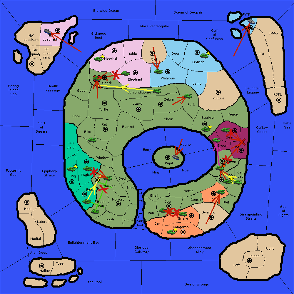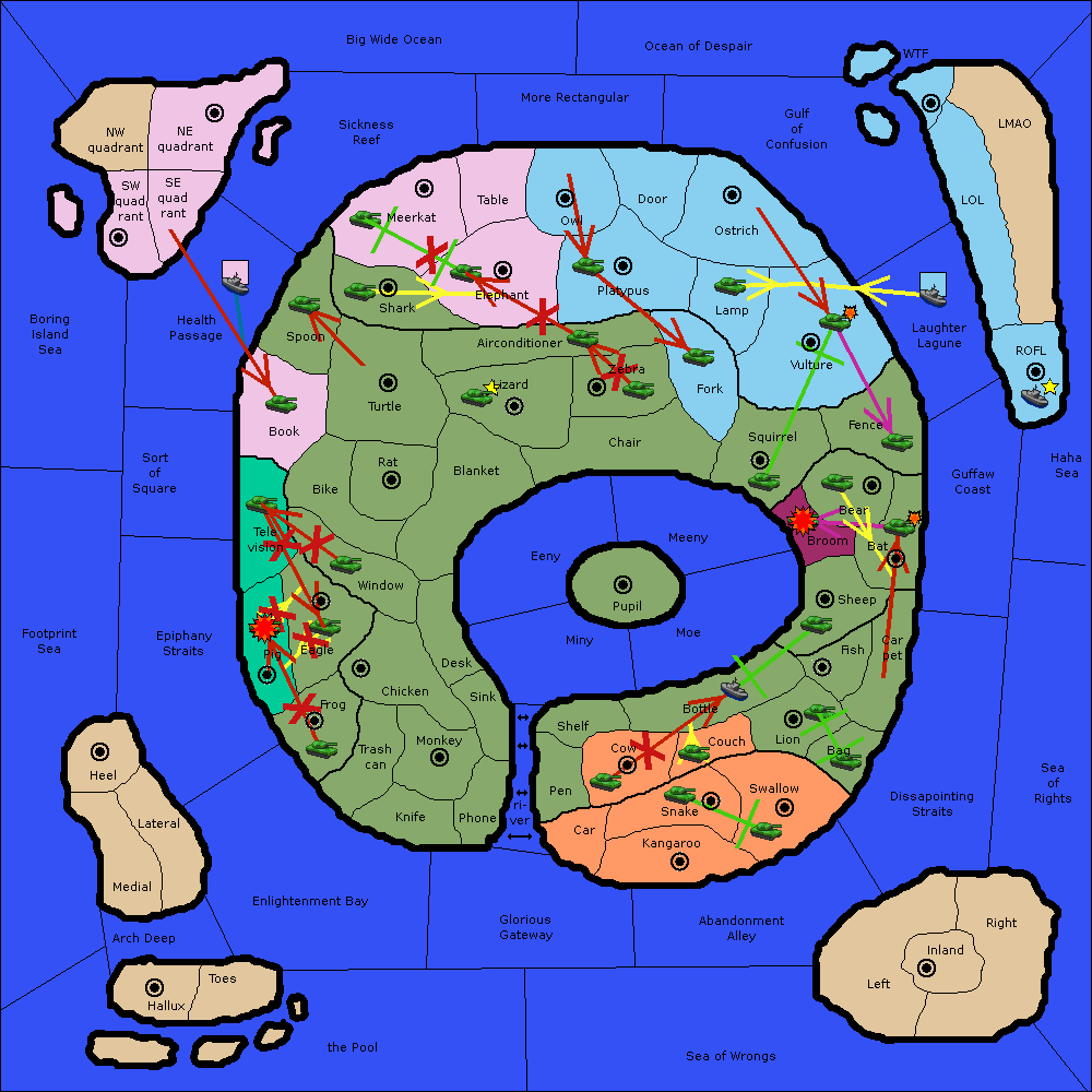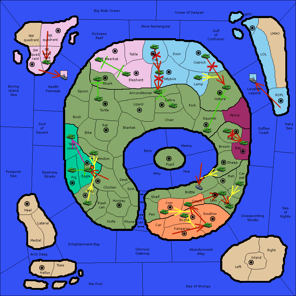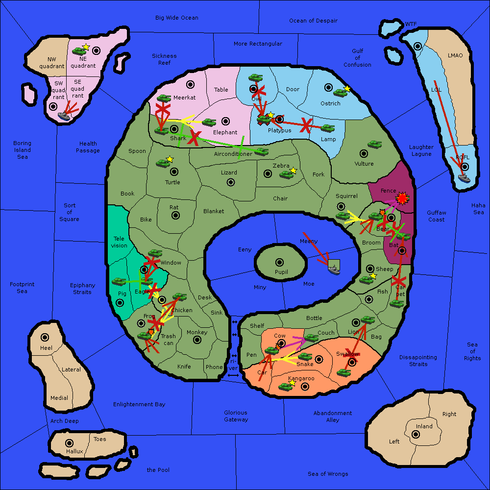 The fleet at Guffaw Coast support move to Fence from Laughter Lagune.
