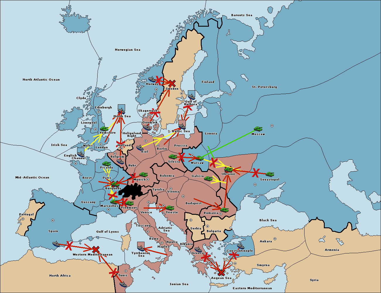 The fleet at Bulgaria (South Coast) move to Constantinople.