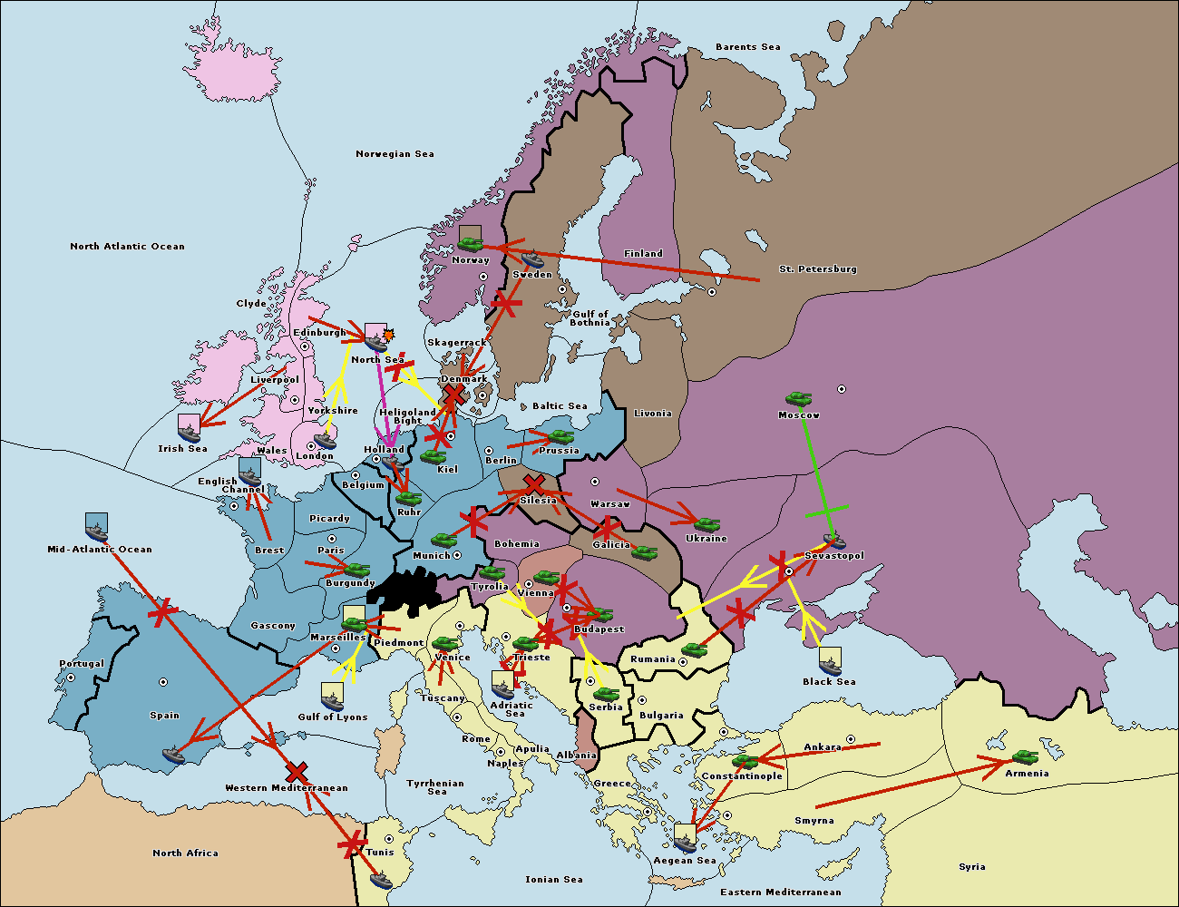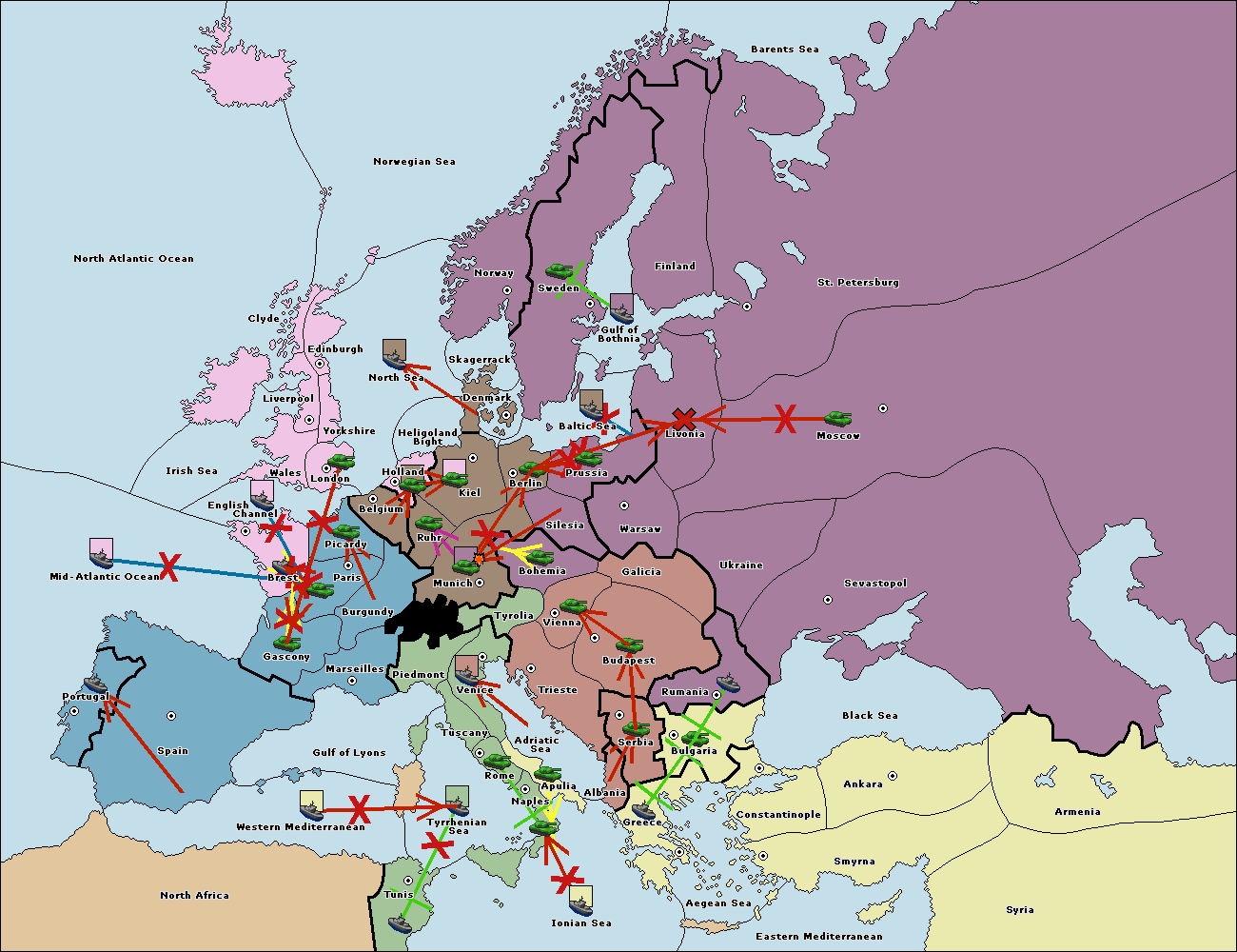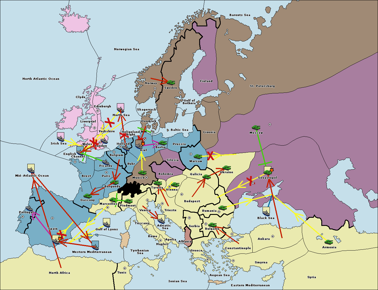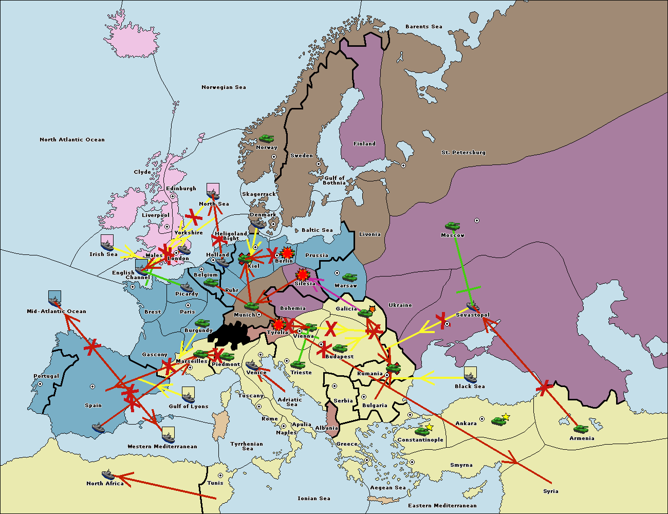 The fleet at Holland support move to Kiel from Berlin.