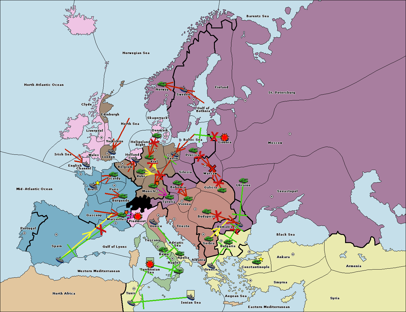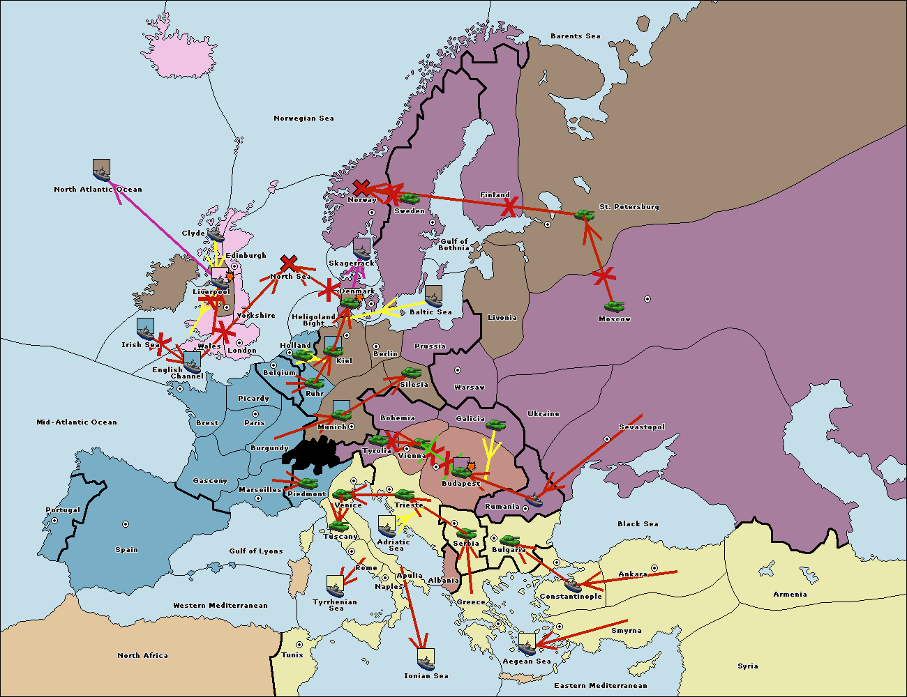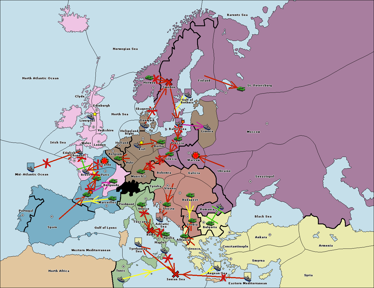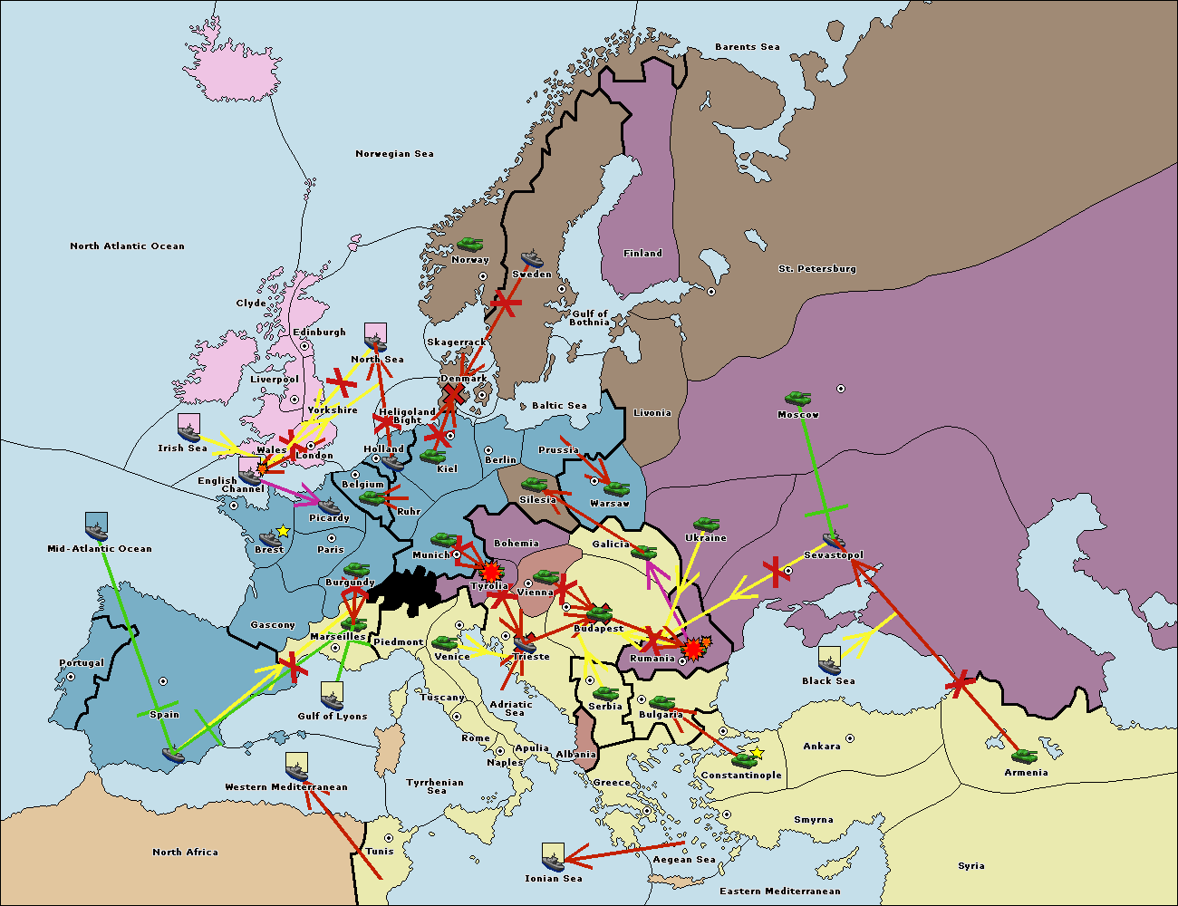 The fleet at Holland support move to Kiel from Berlin.